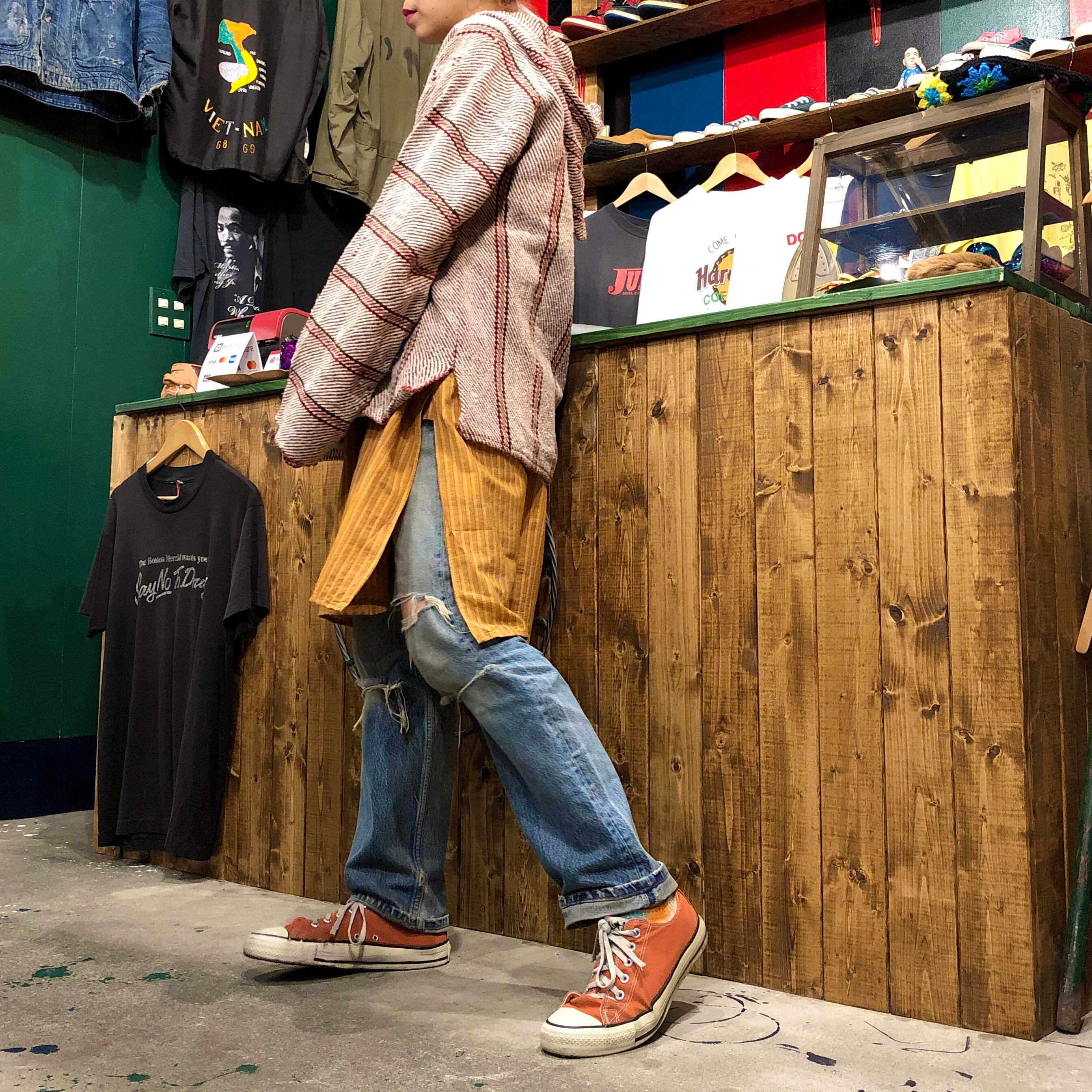 糸がぽこぽこ出てきてしまっている部分が数カ所あります。かなり使用感のある商品ですので古着にご理解のある方のご購入をお願い致します。