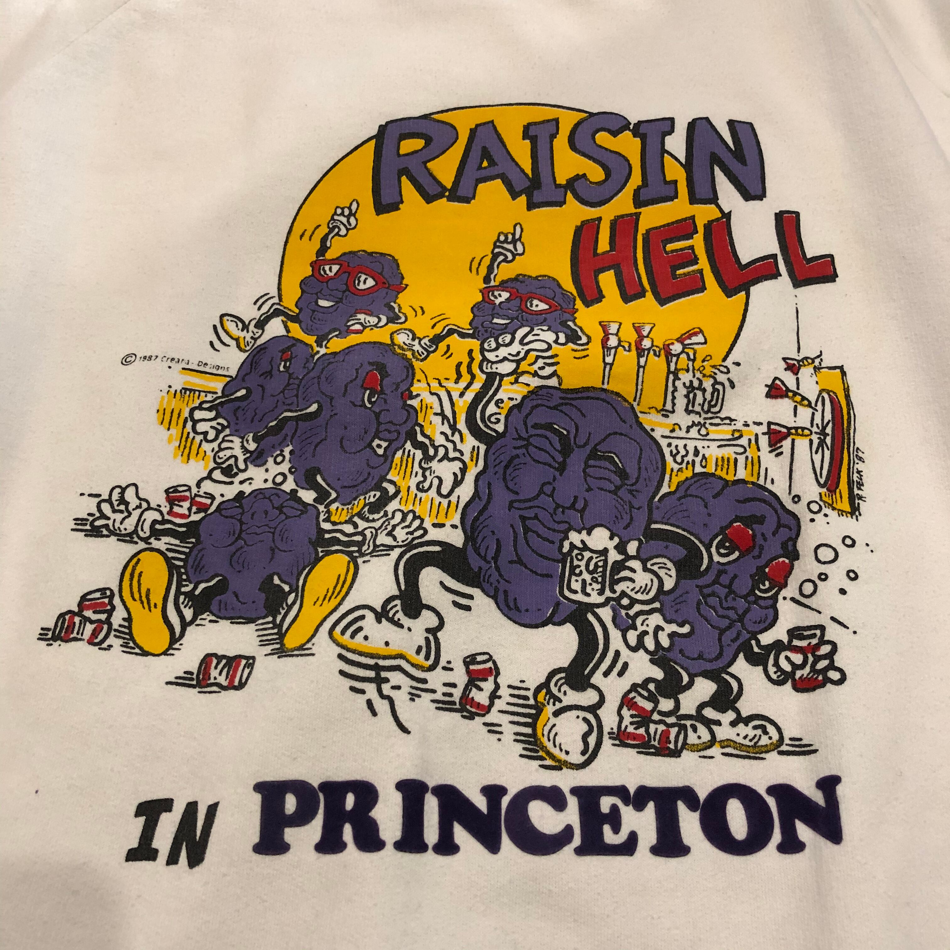 80年代USA製、カリフォルニアレーズン達が酔っ払って騒いでるポップなプリントが良い感じのスウェットです。