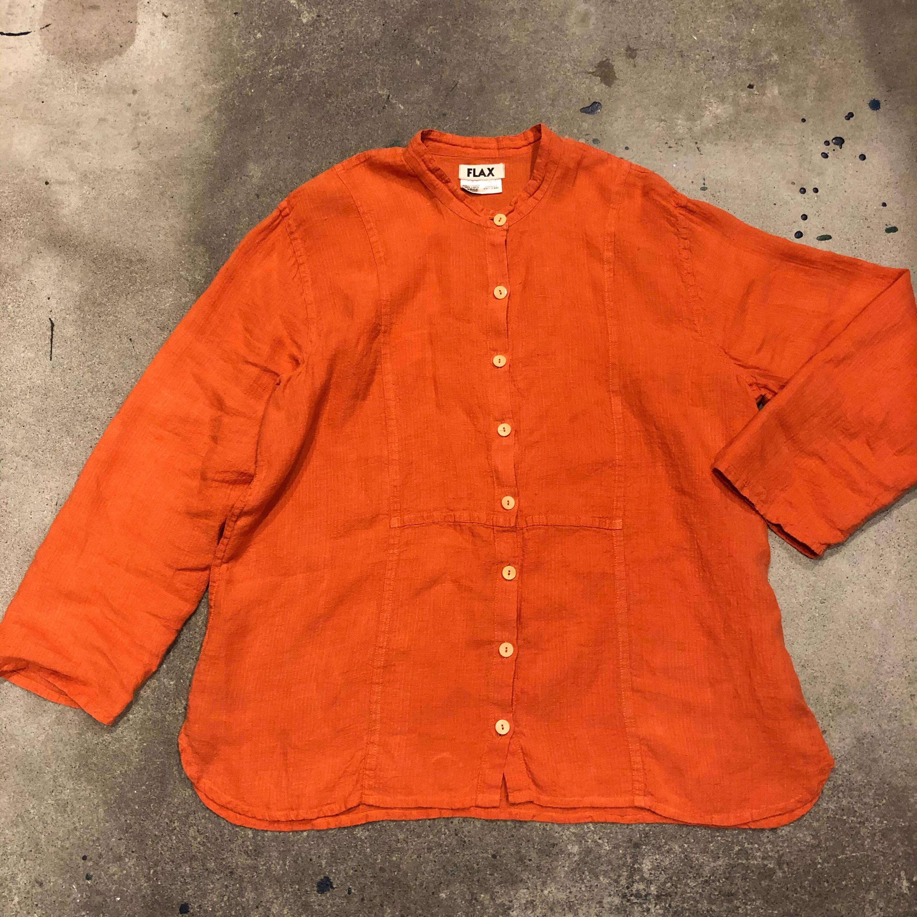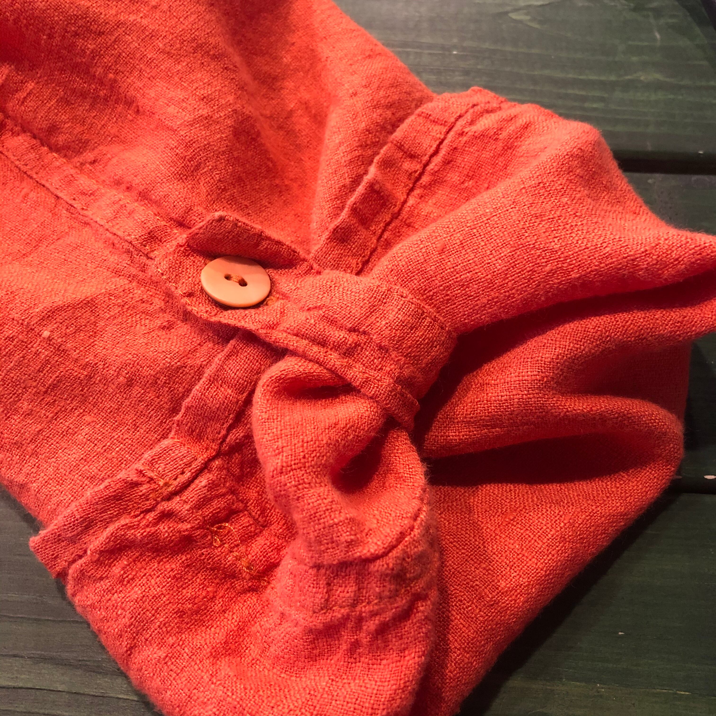 やわらかいリネンが気持ち良いブラウスです。ゆったり大きめなので軽いアウターのような感じでお使いいただけます。オレンジは意外といろんな色と相性が良いので、色で遊んだりお楽しみください!