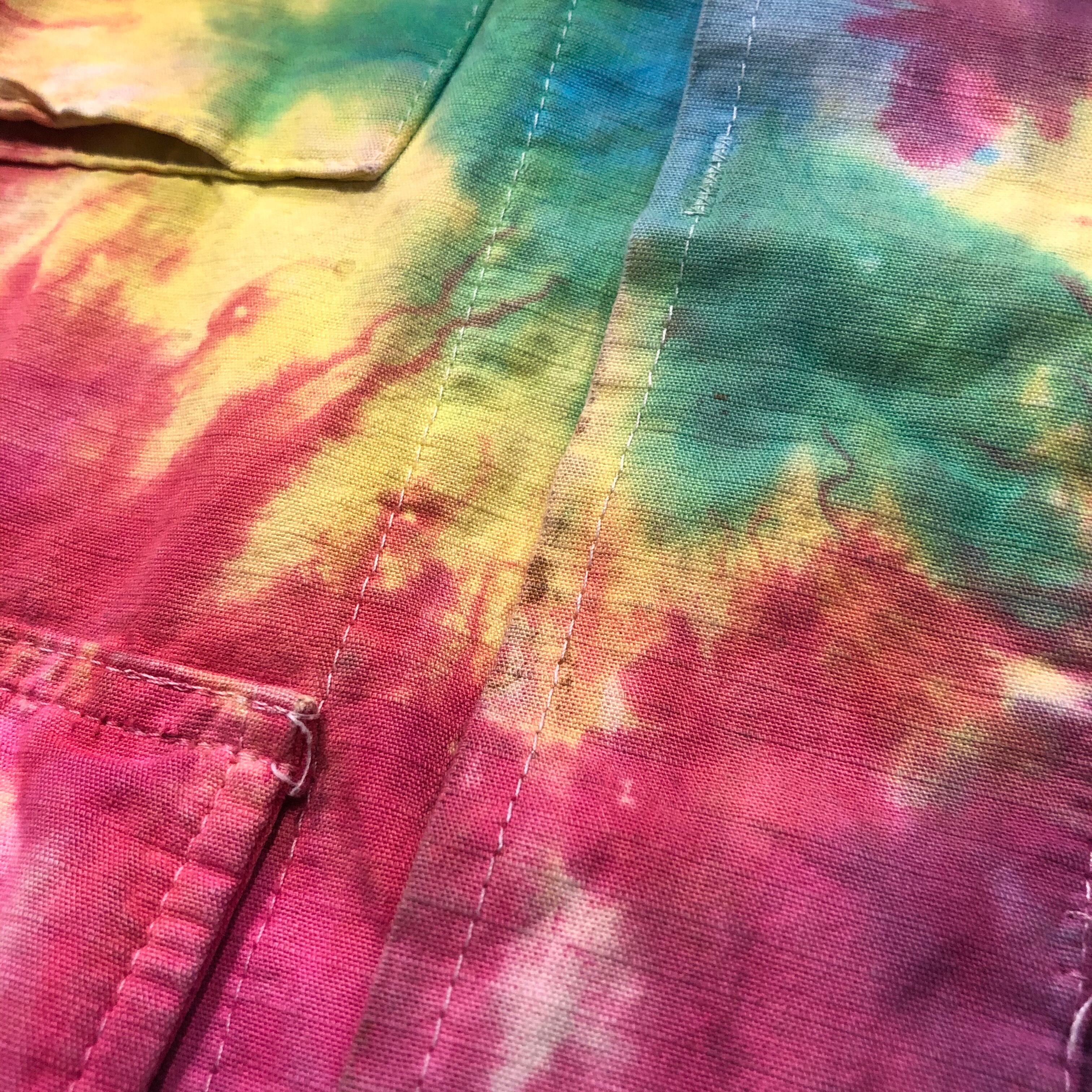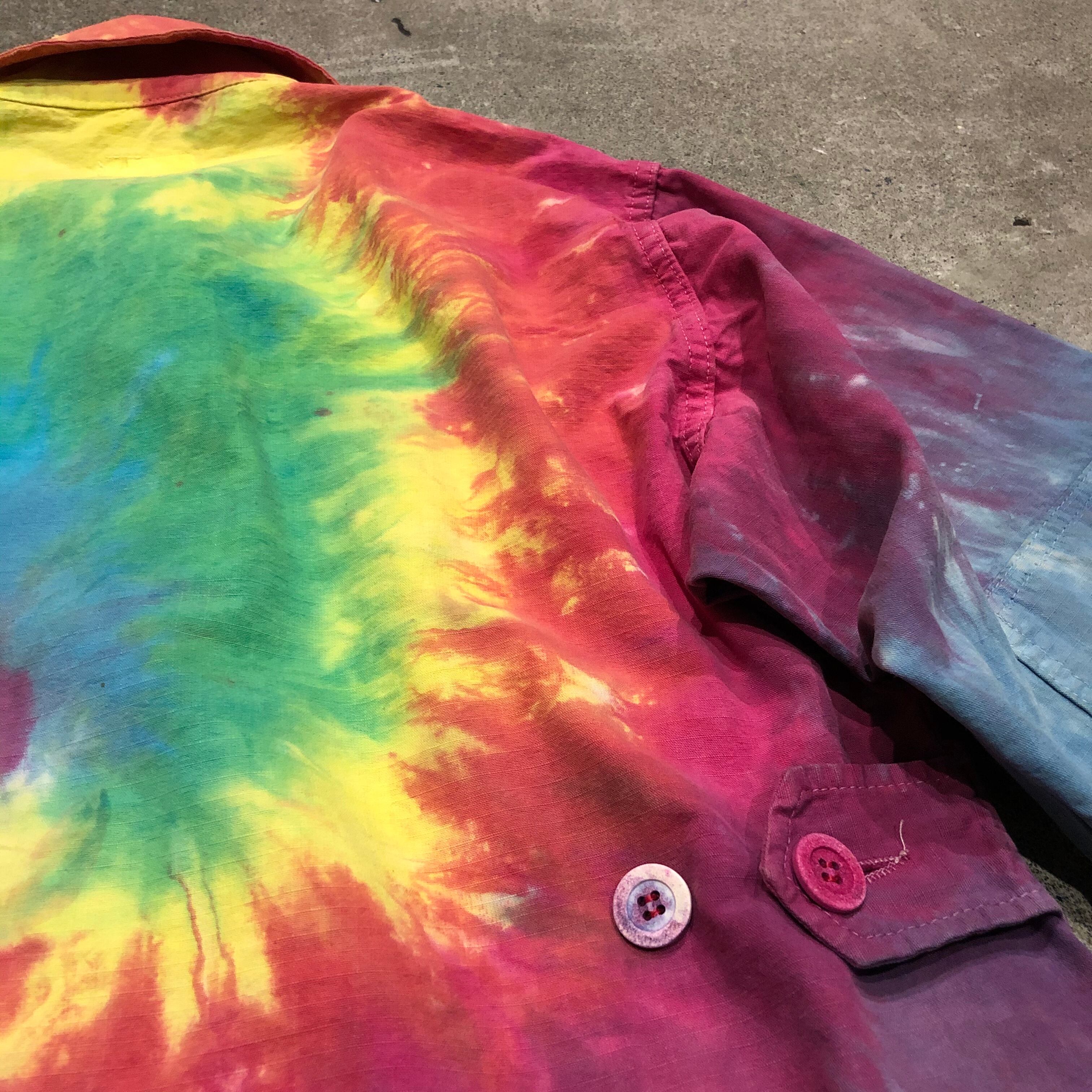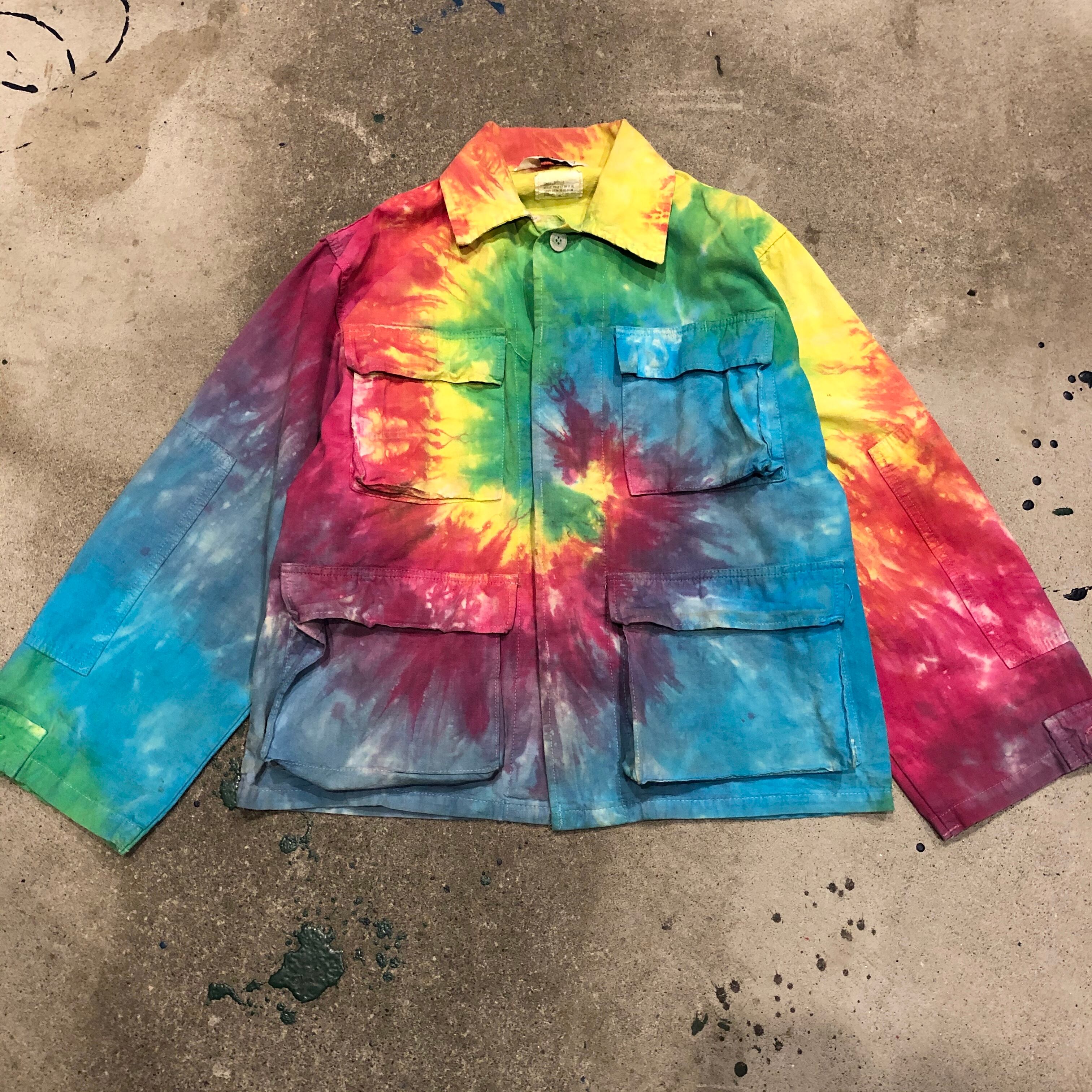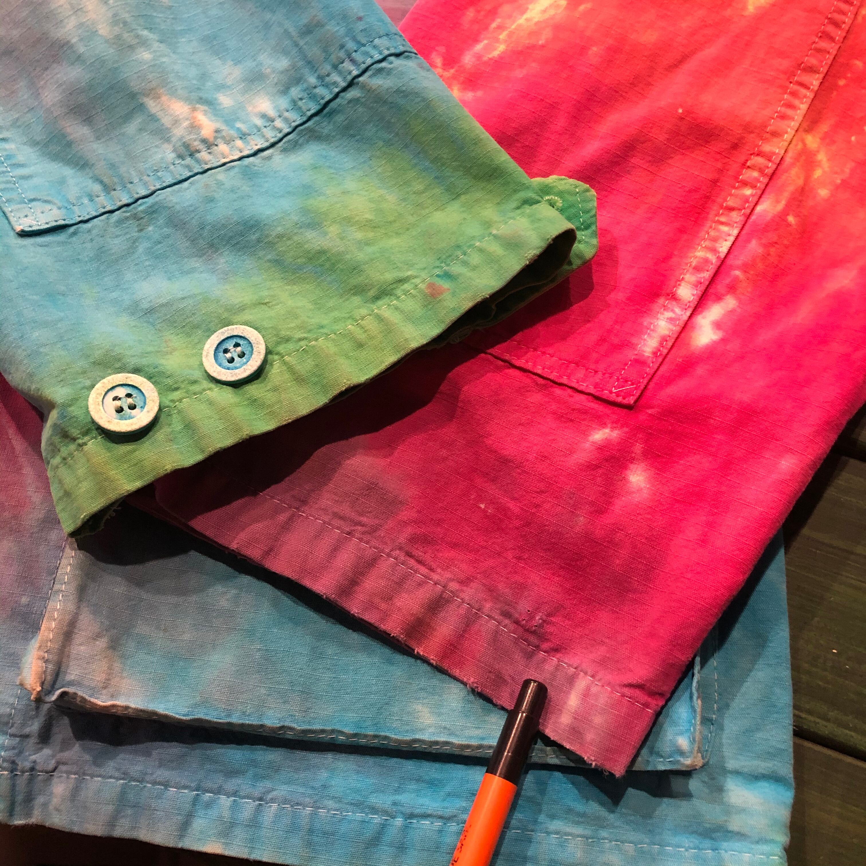 アメリカ軍のBDUジャケットを忠実に再現したBRENTSのタイダイジャケットです。タイダイのアウターってなかなかないですよね!とってもハッピーな雰囲気になります。ボタンまで染まっていたりアーティスティックな一着です。