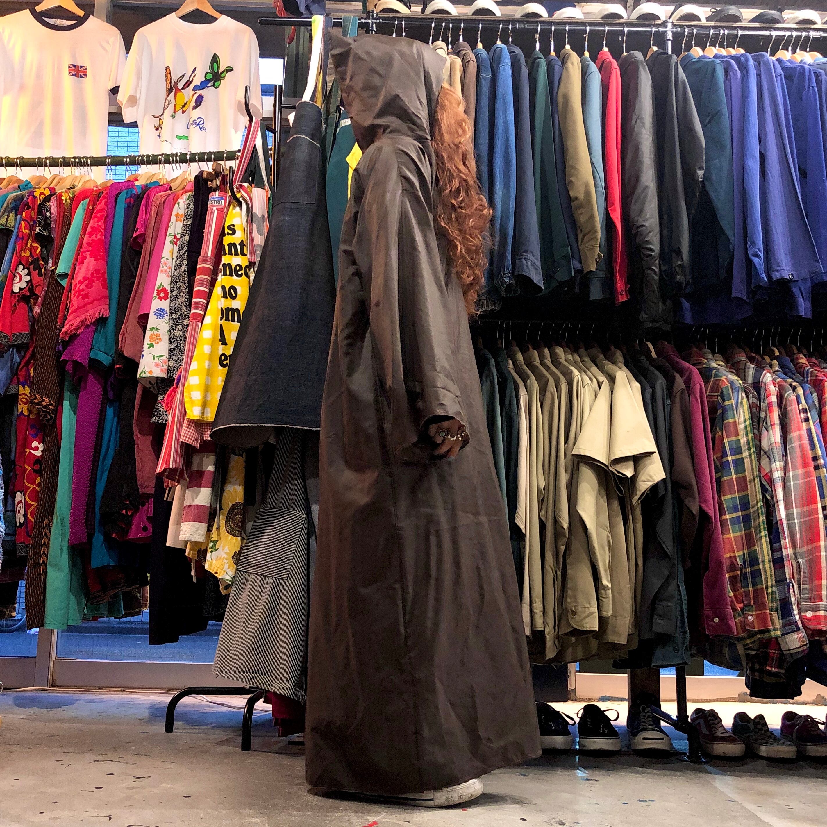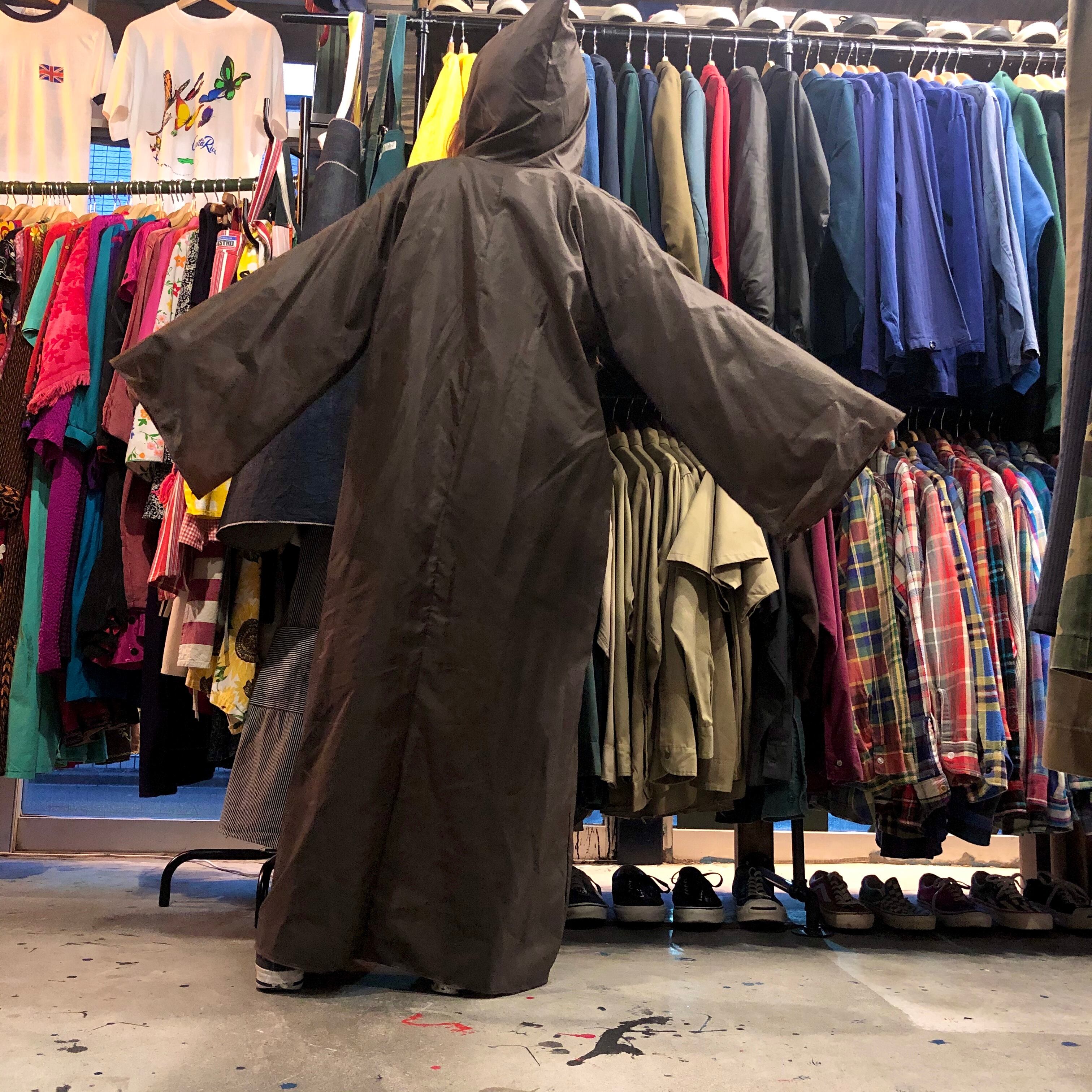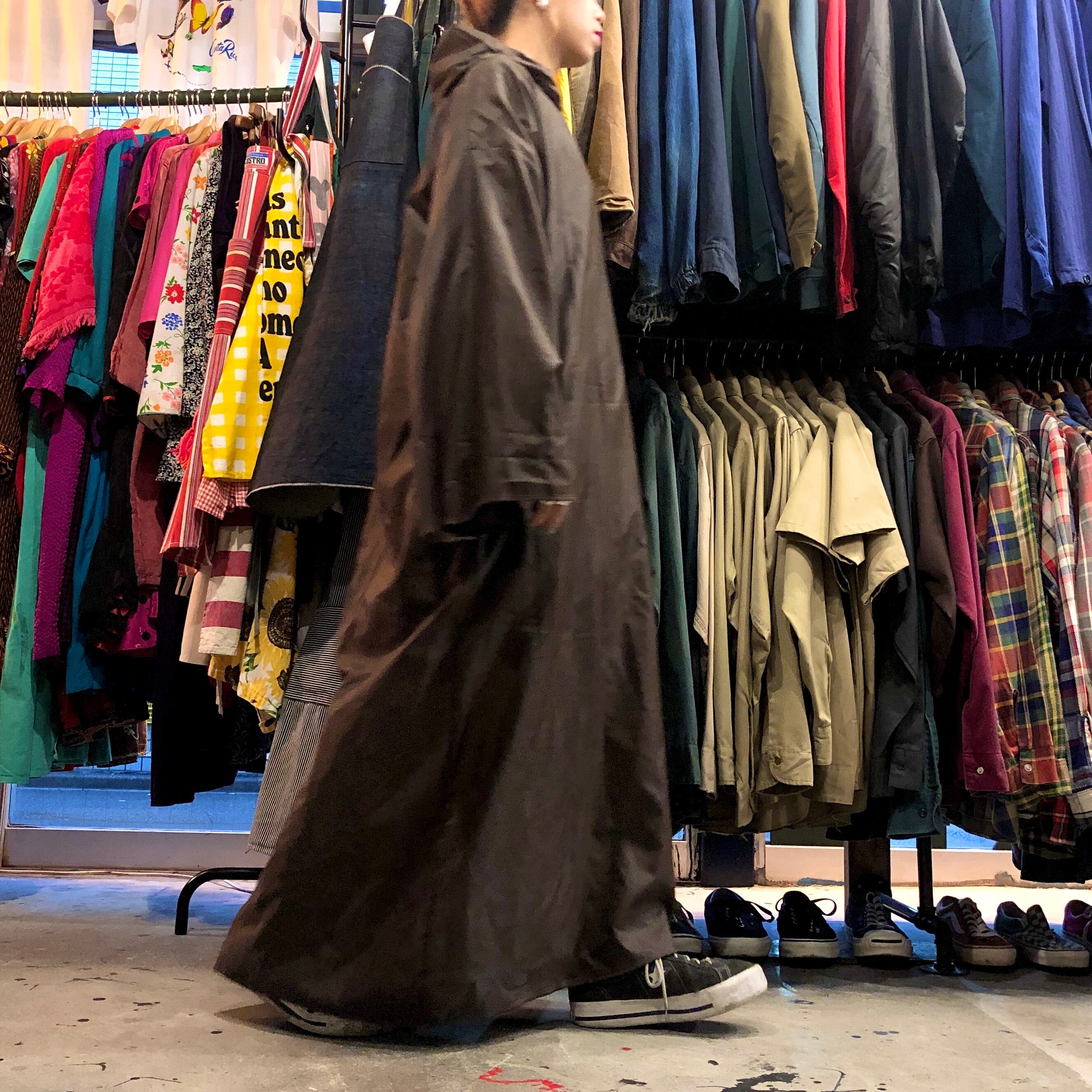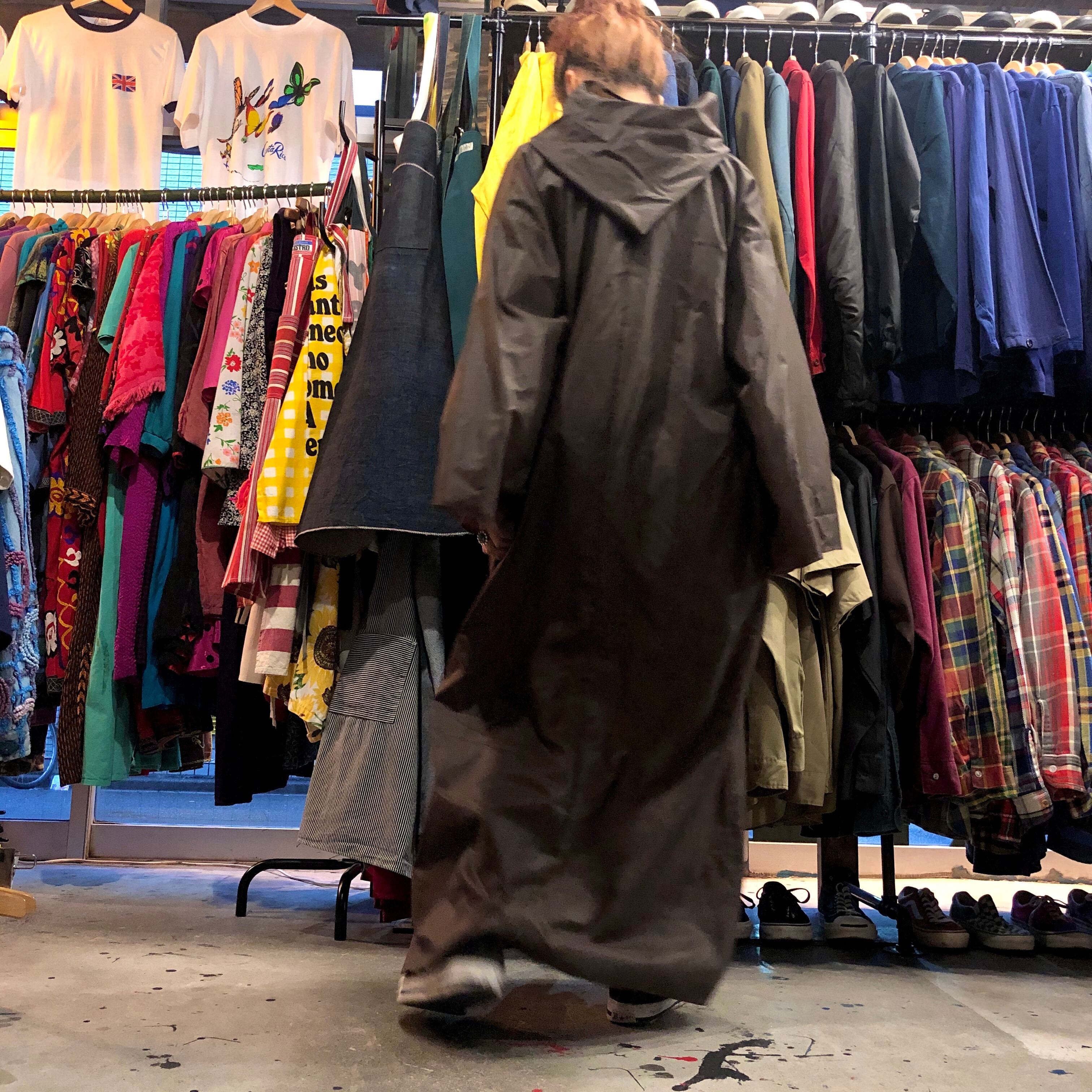 マキシ丈のナイロンコートです。カッパの役割は果たさないとは思いますが、若干濡れないような気持ちになれます。袖口がフレアになっているので、バングルやヘアゴムなどでとめて着てもかわいいと思います!胸元にバッチをつけたりしても良いですね!