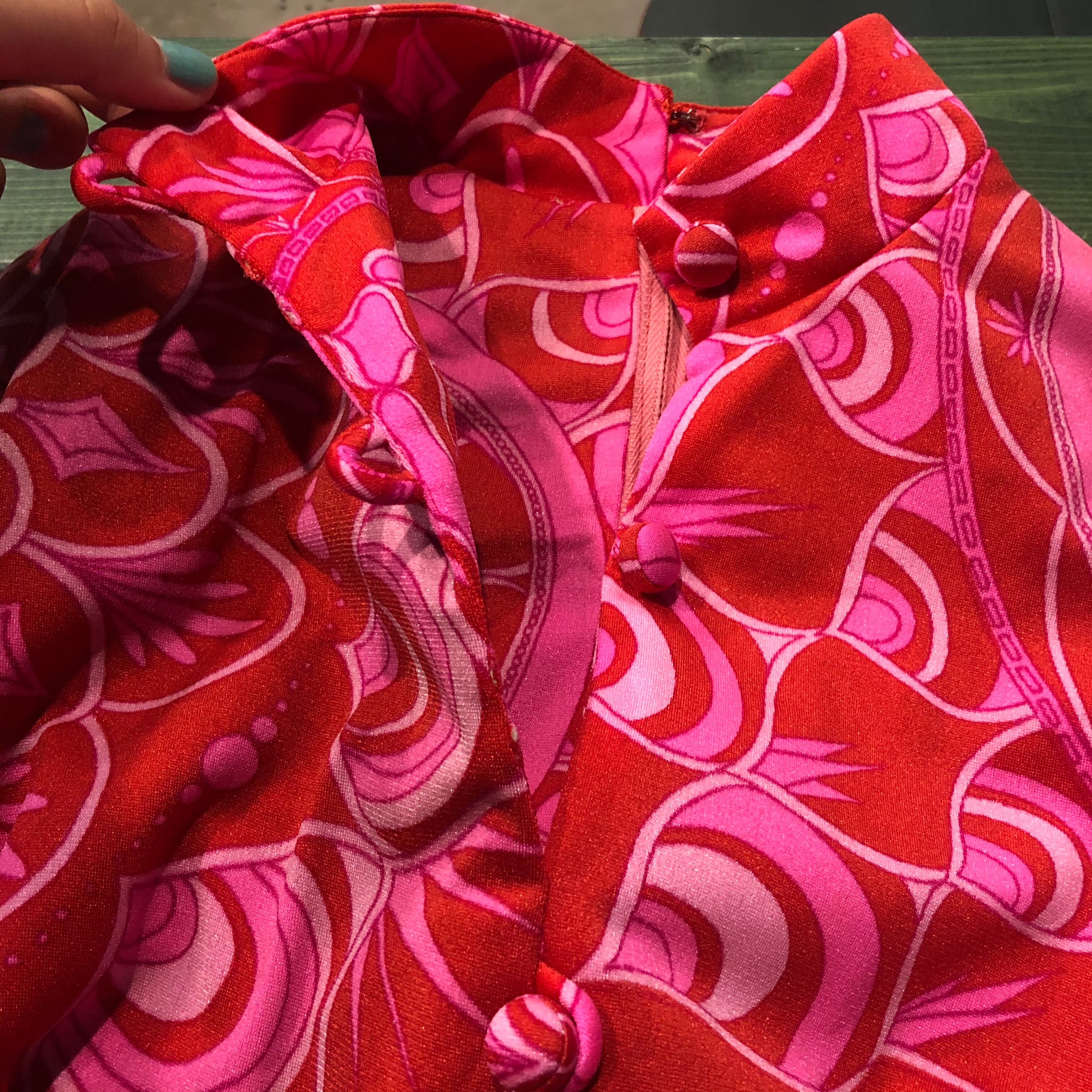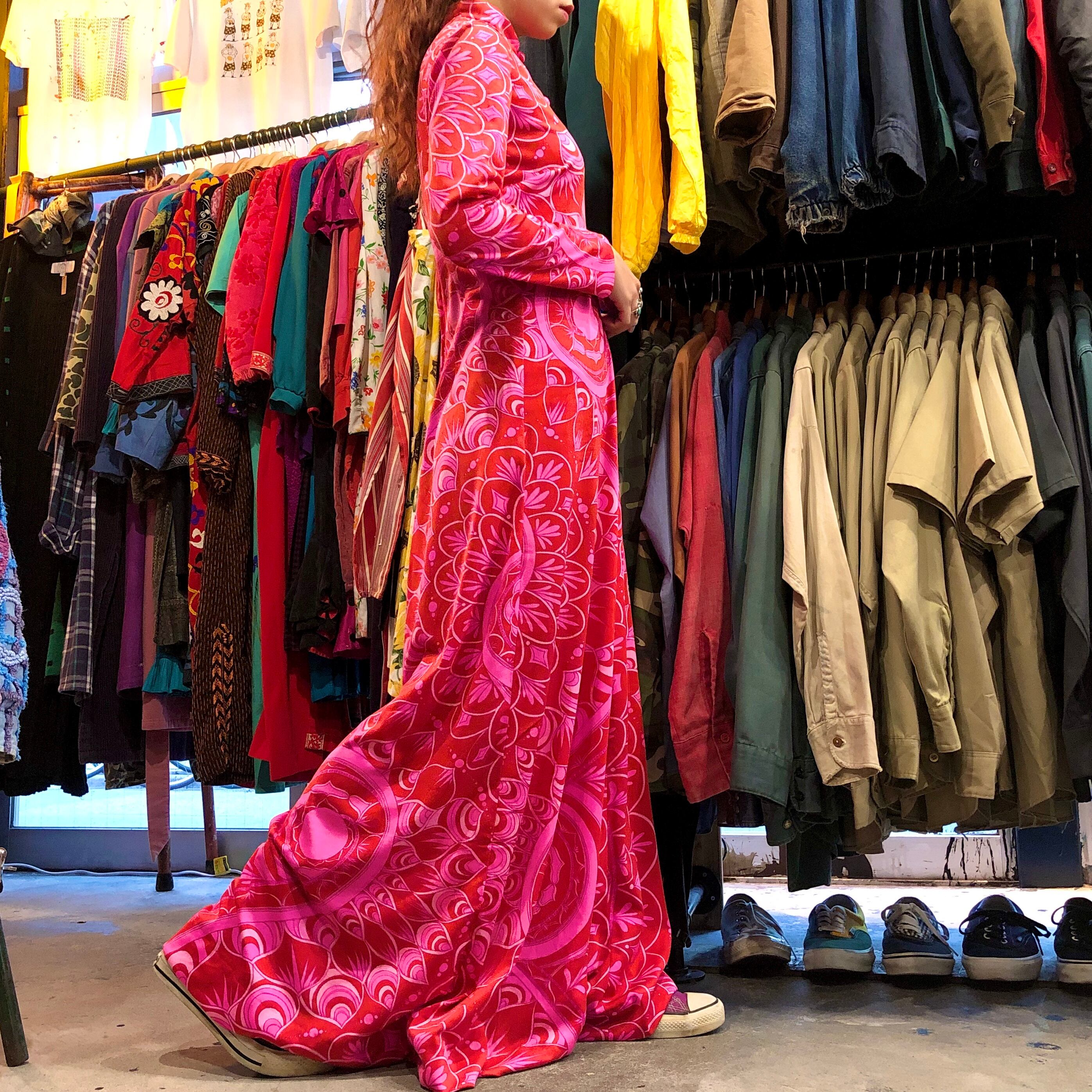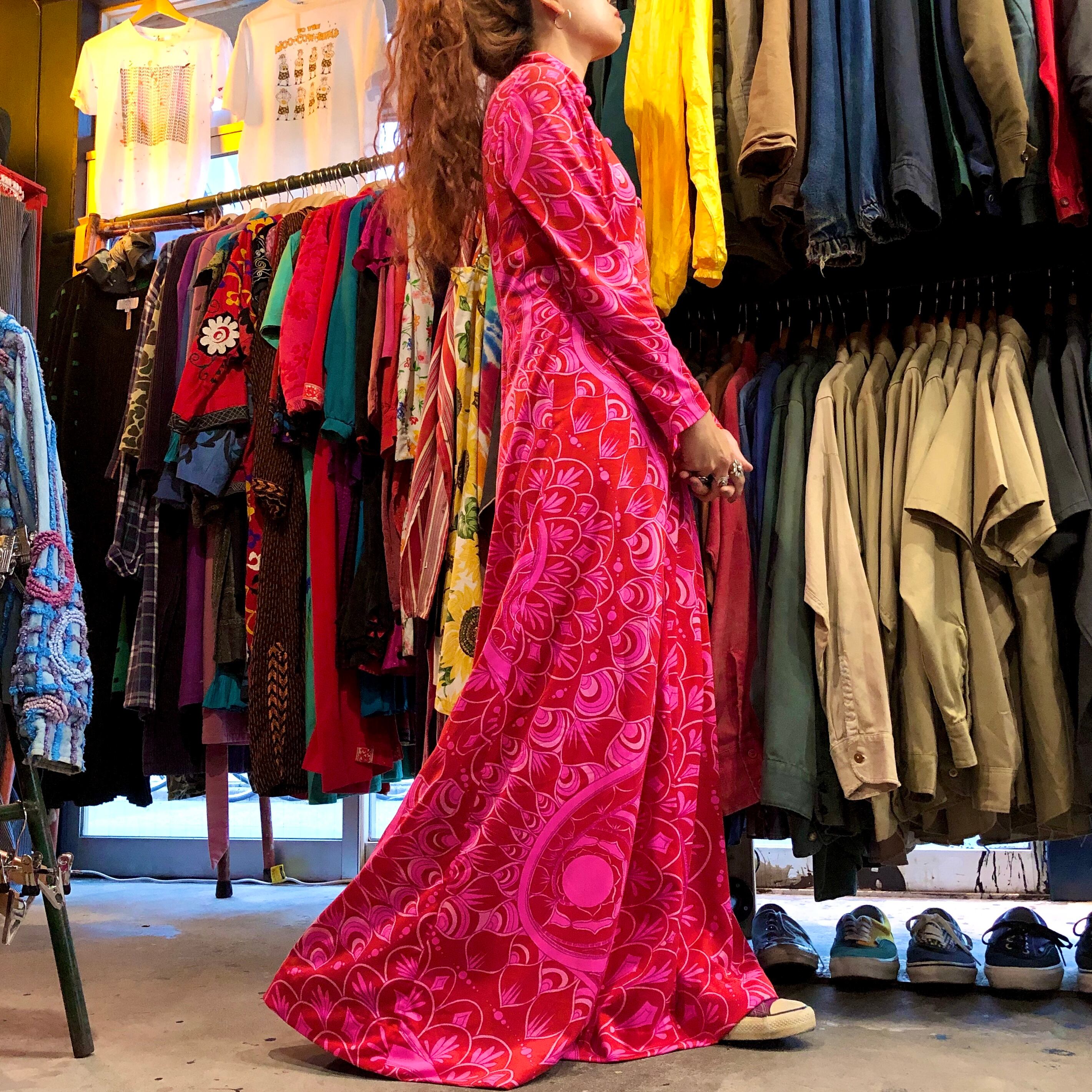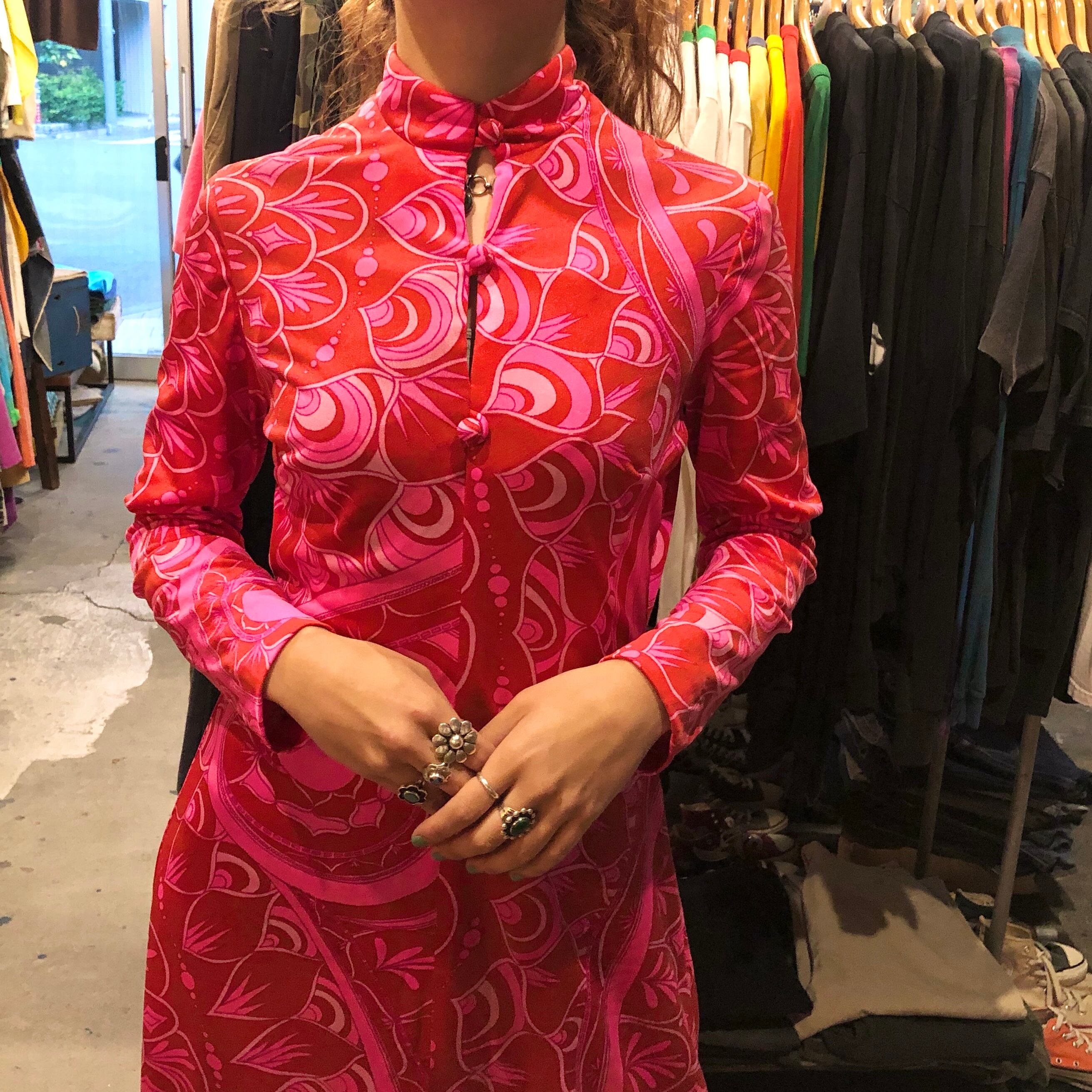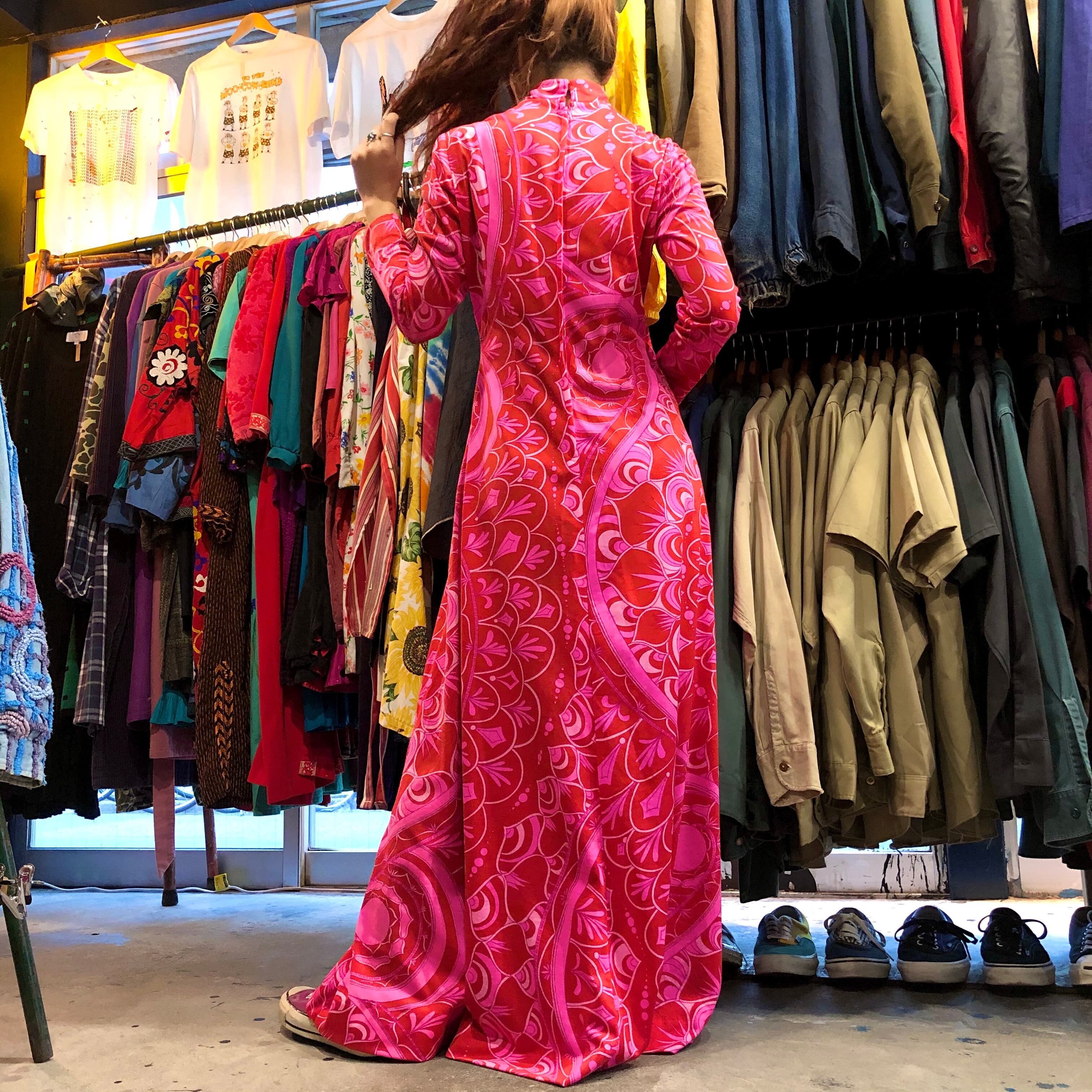 赤とピンクのド派手なワンピースです。ごりごりサイケデリックな雰囲気で着てもらいたい一着です。