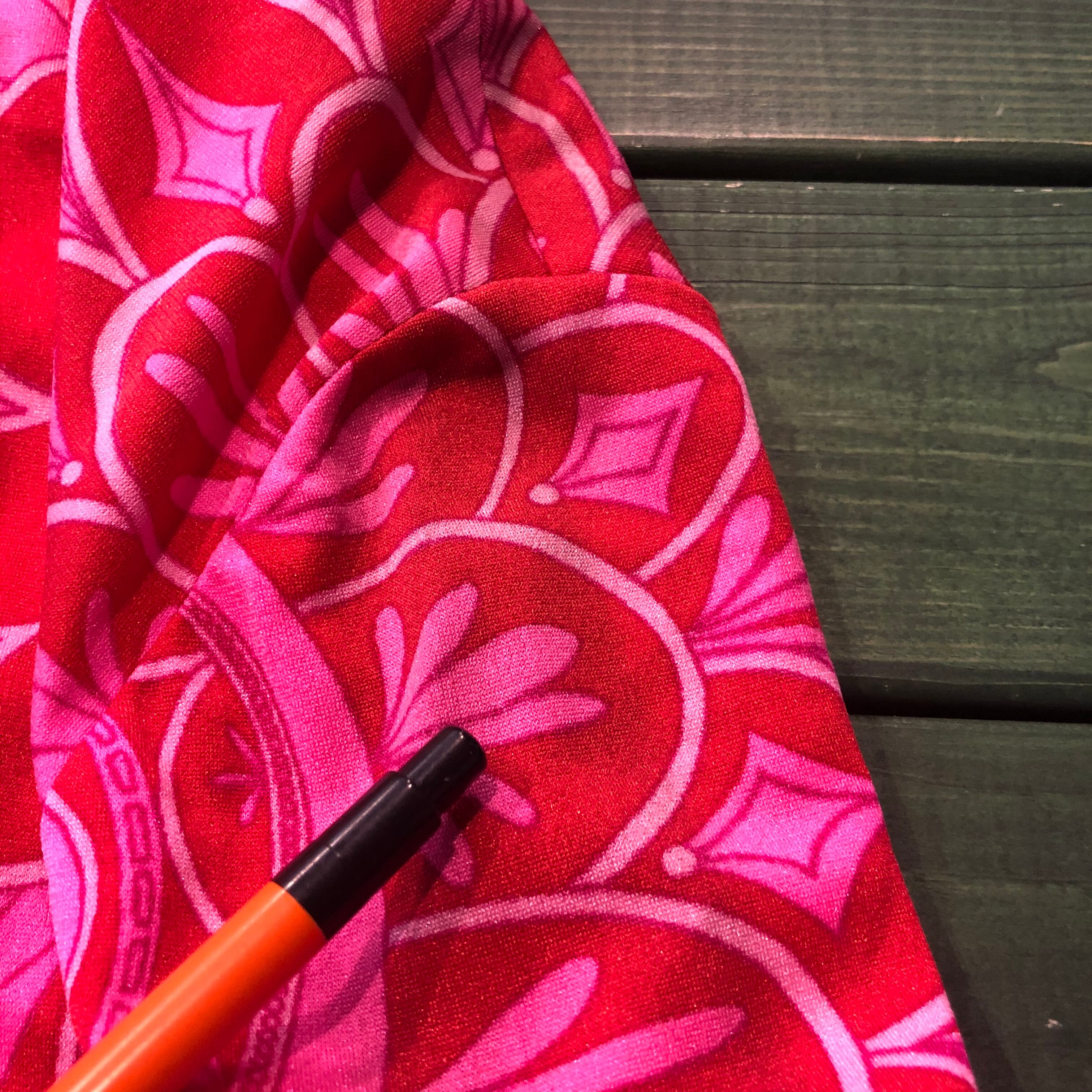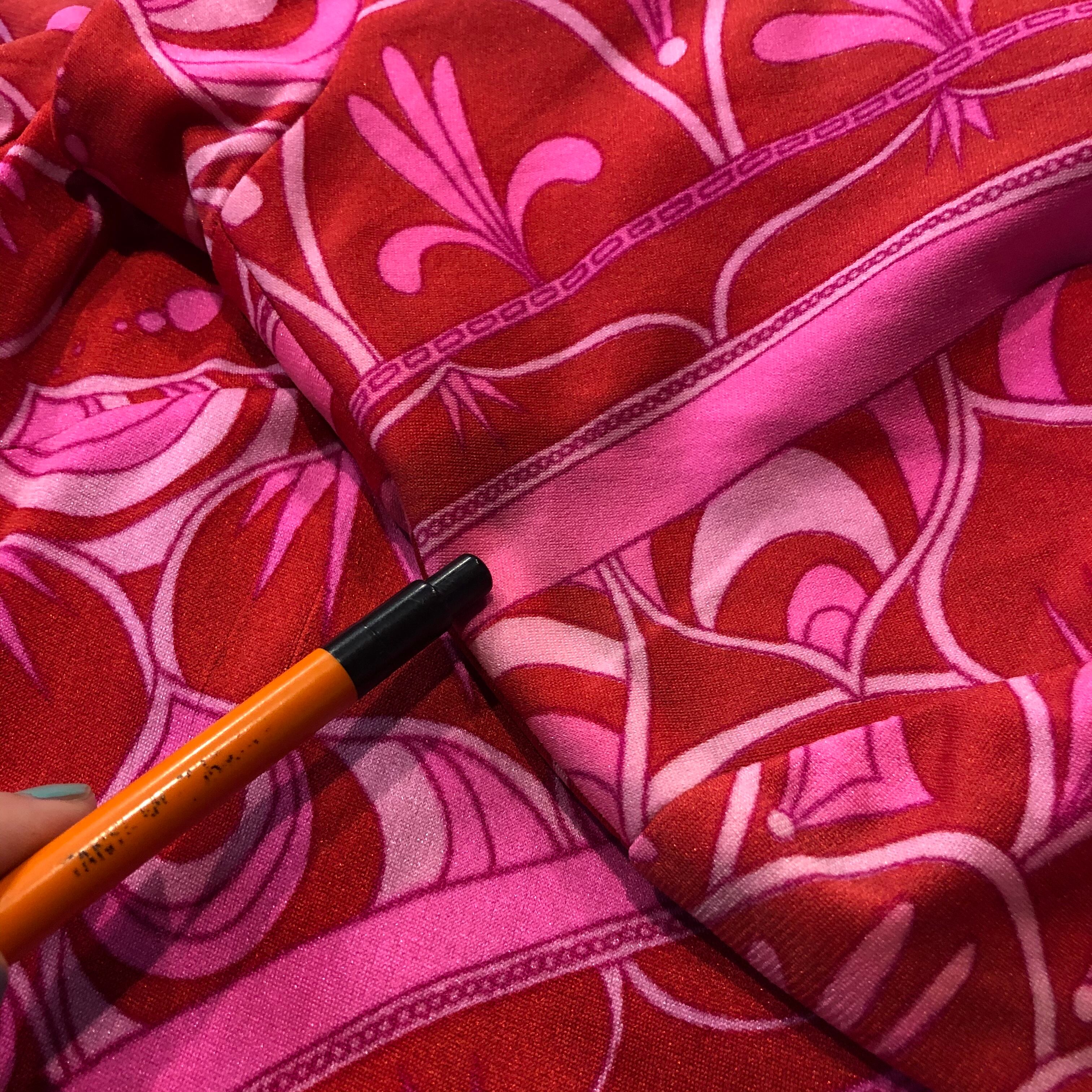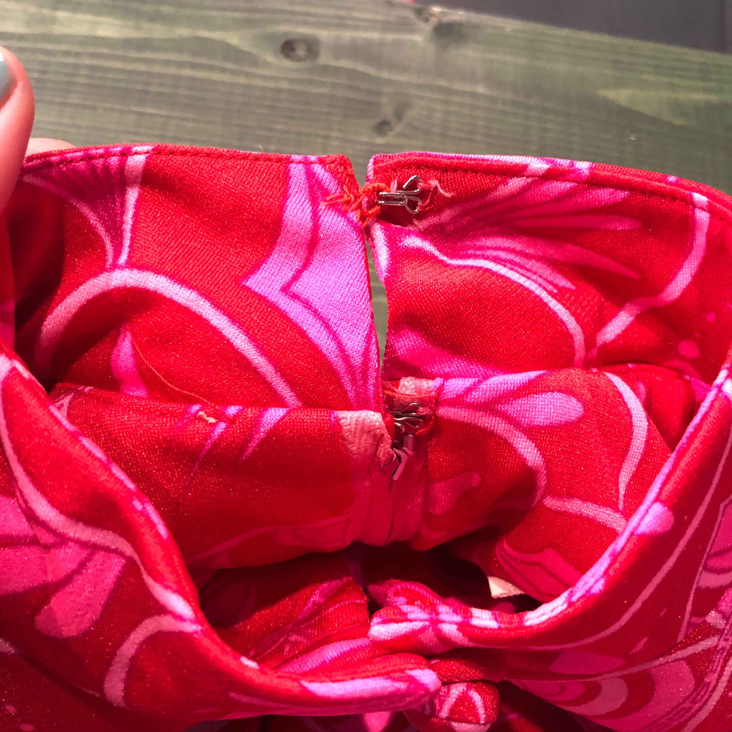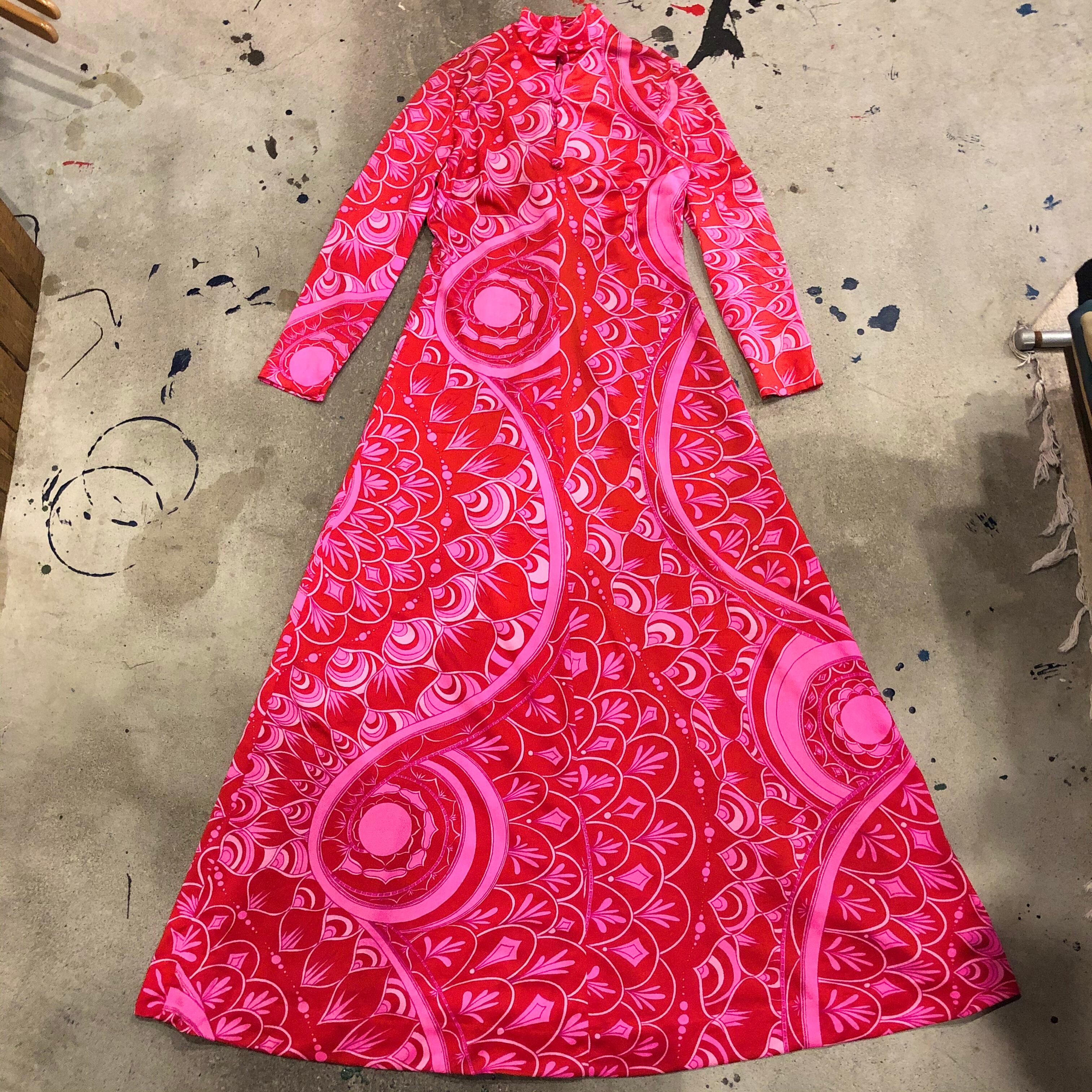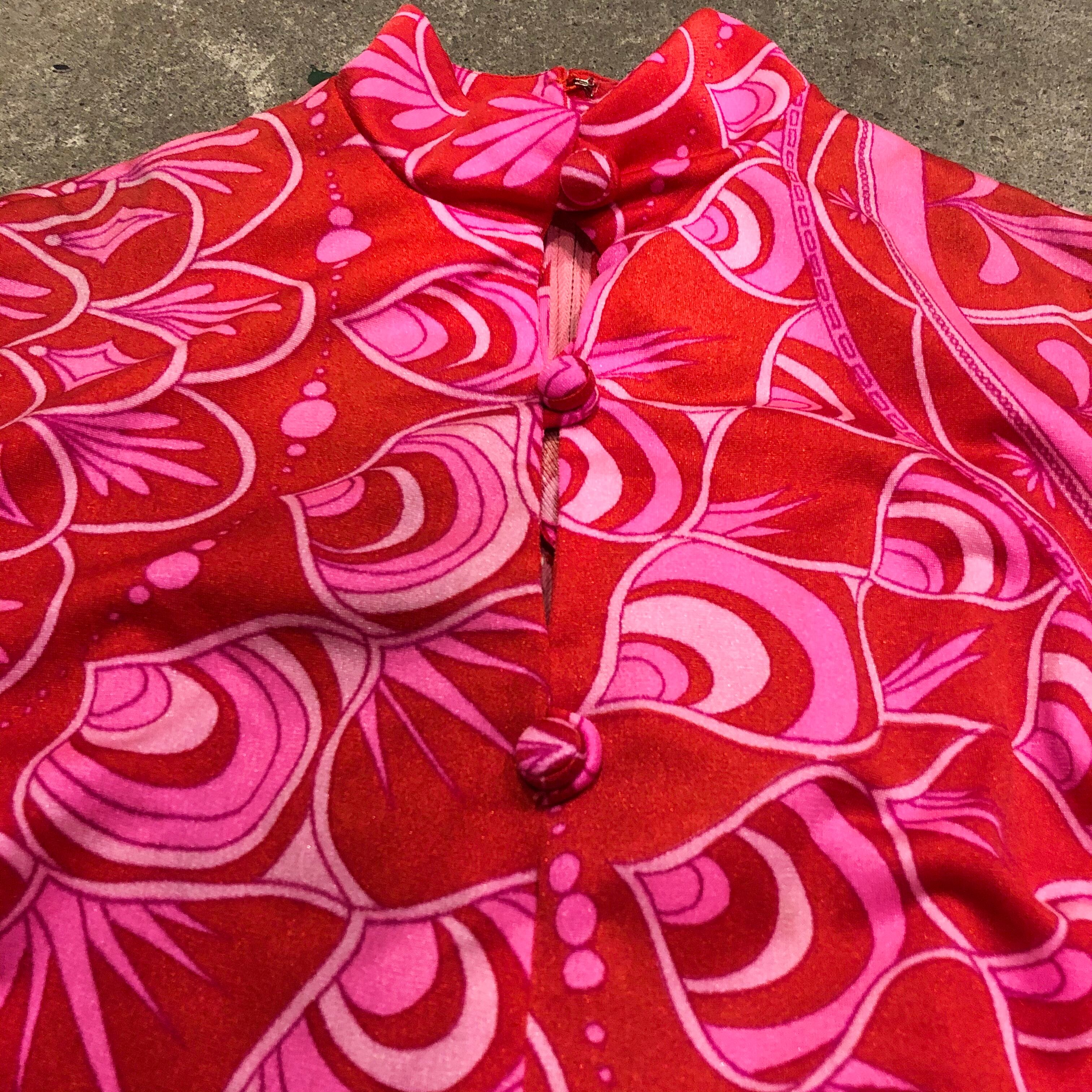 赤とピンクのド派手なワンピースです。ごりごりサイケデリックな雰囲気で着てもらいたい一着です。