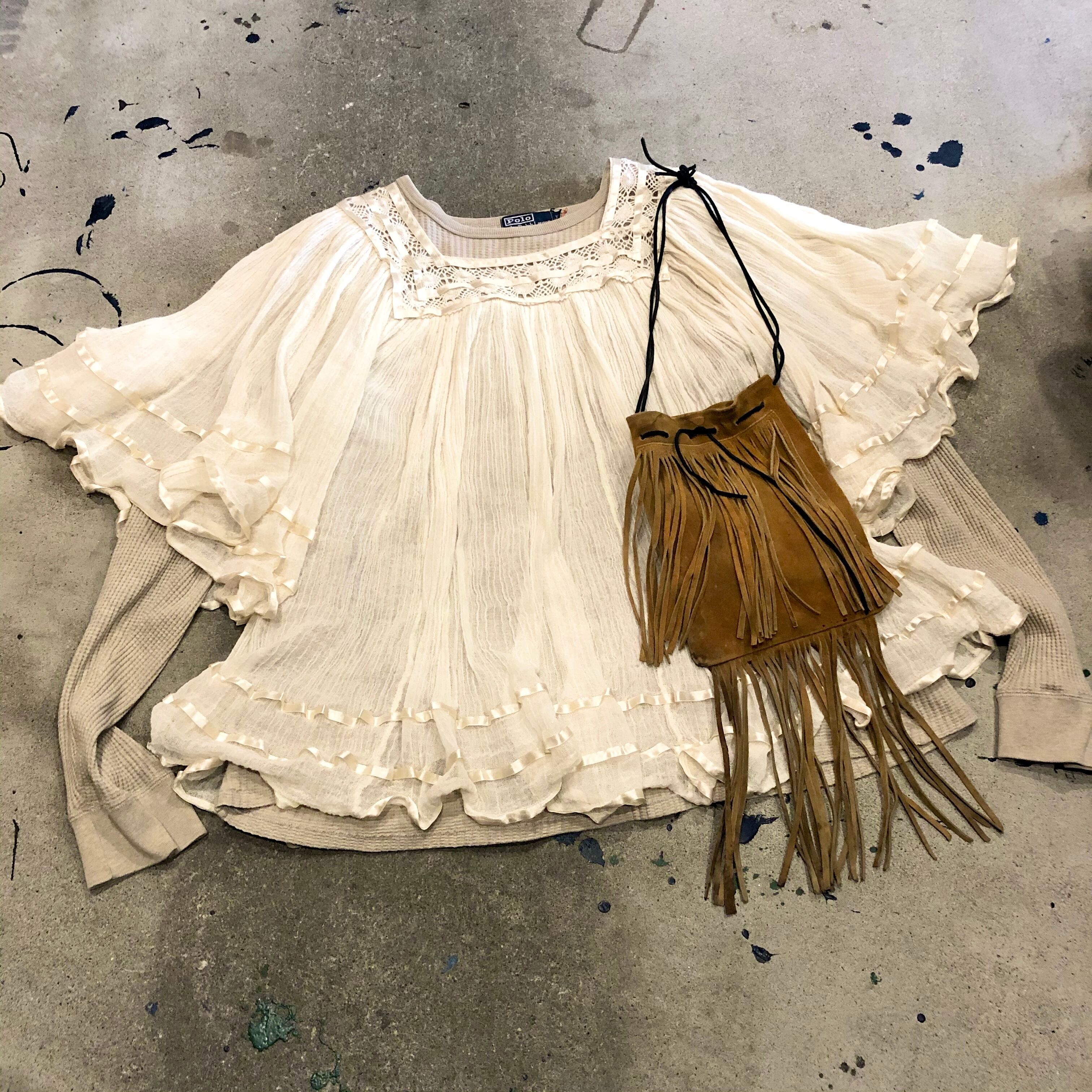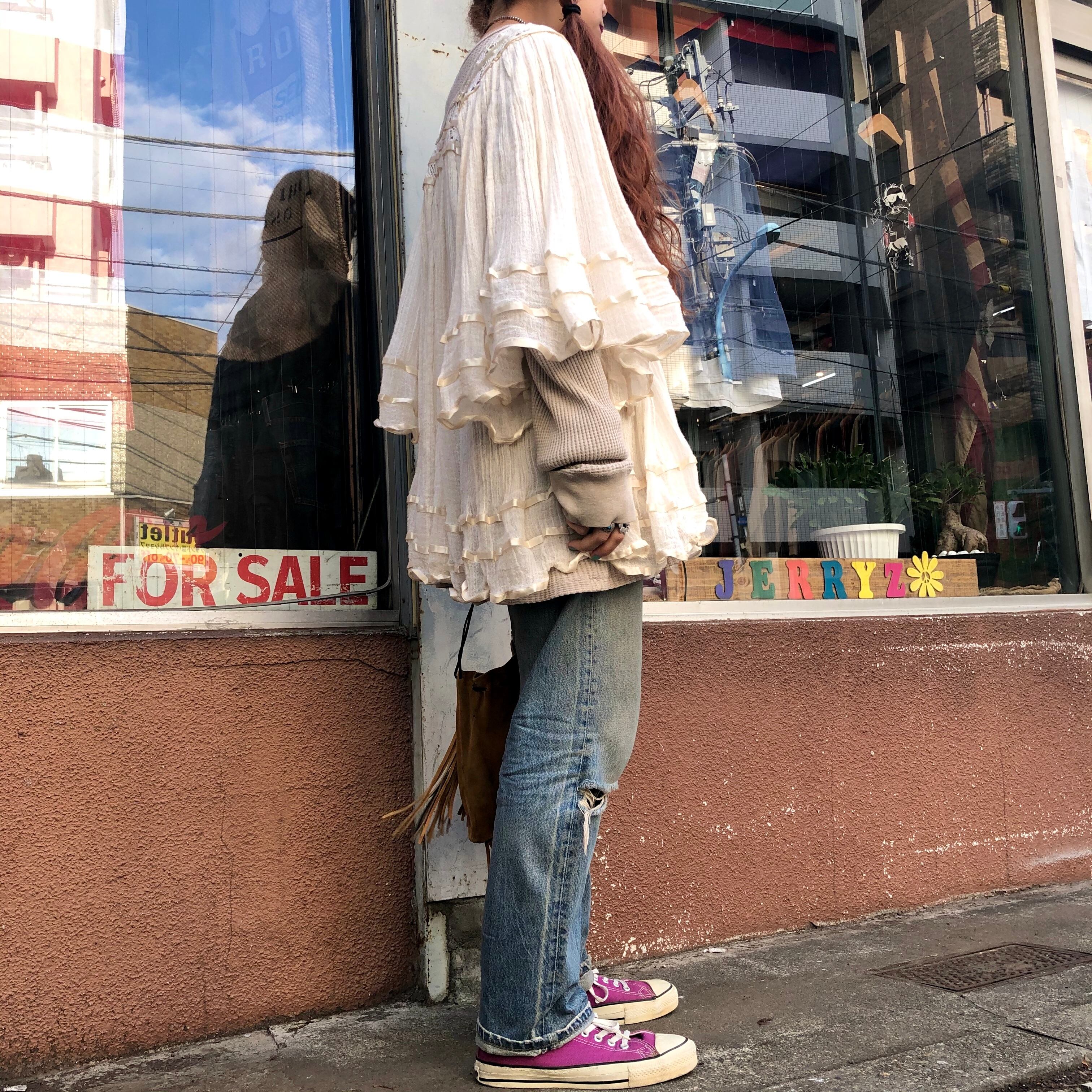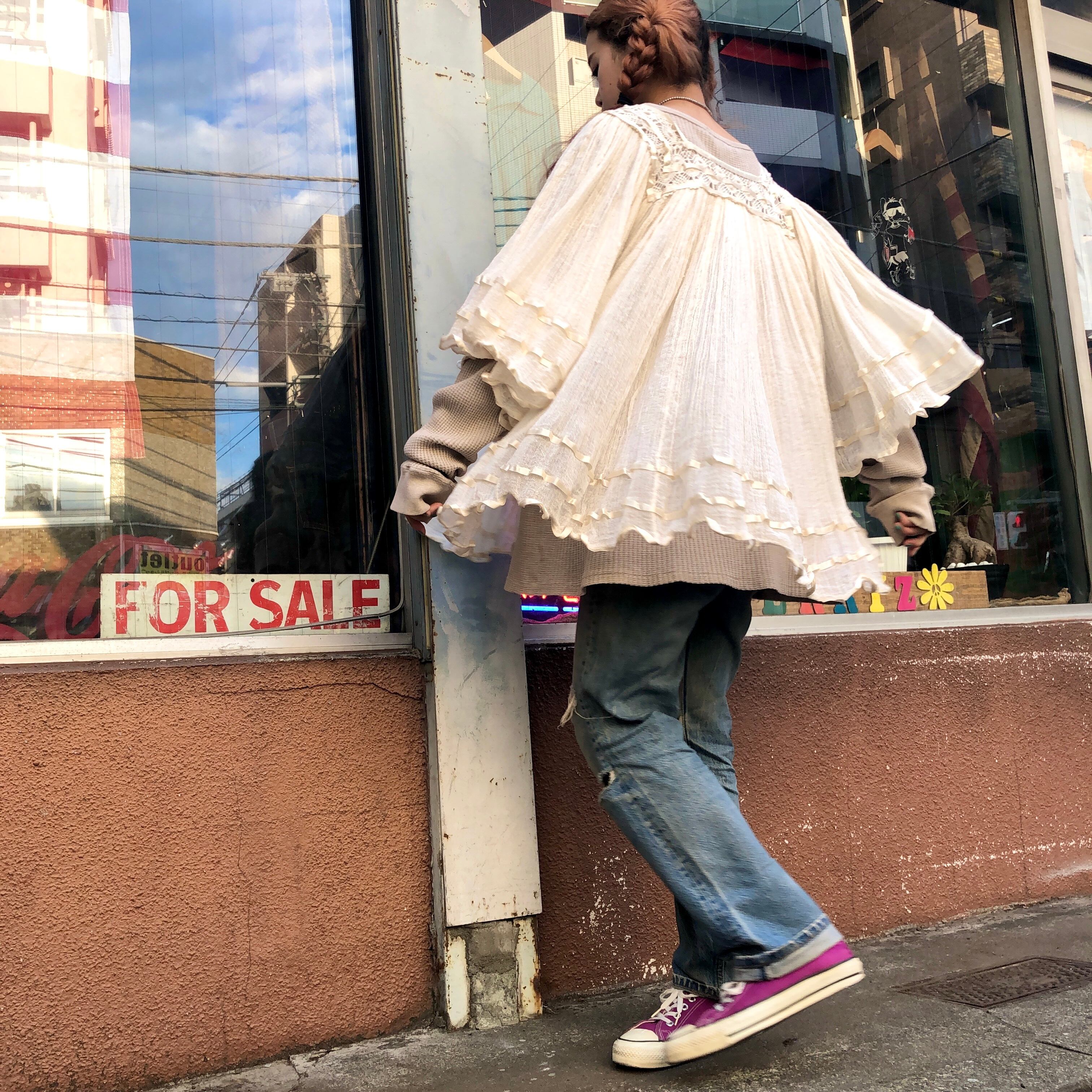 薄手のガーゼがふんわり女性らしいメキシカンチュニックです。夏はもちろん、今の時期は重ね着して着られます。下にワンピースを合わせてガーリーに着ても、ショーパンを合わせてカジュアルにも可愛いと思います!