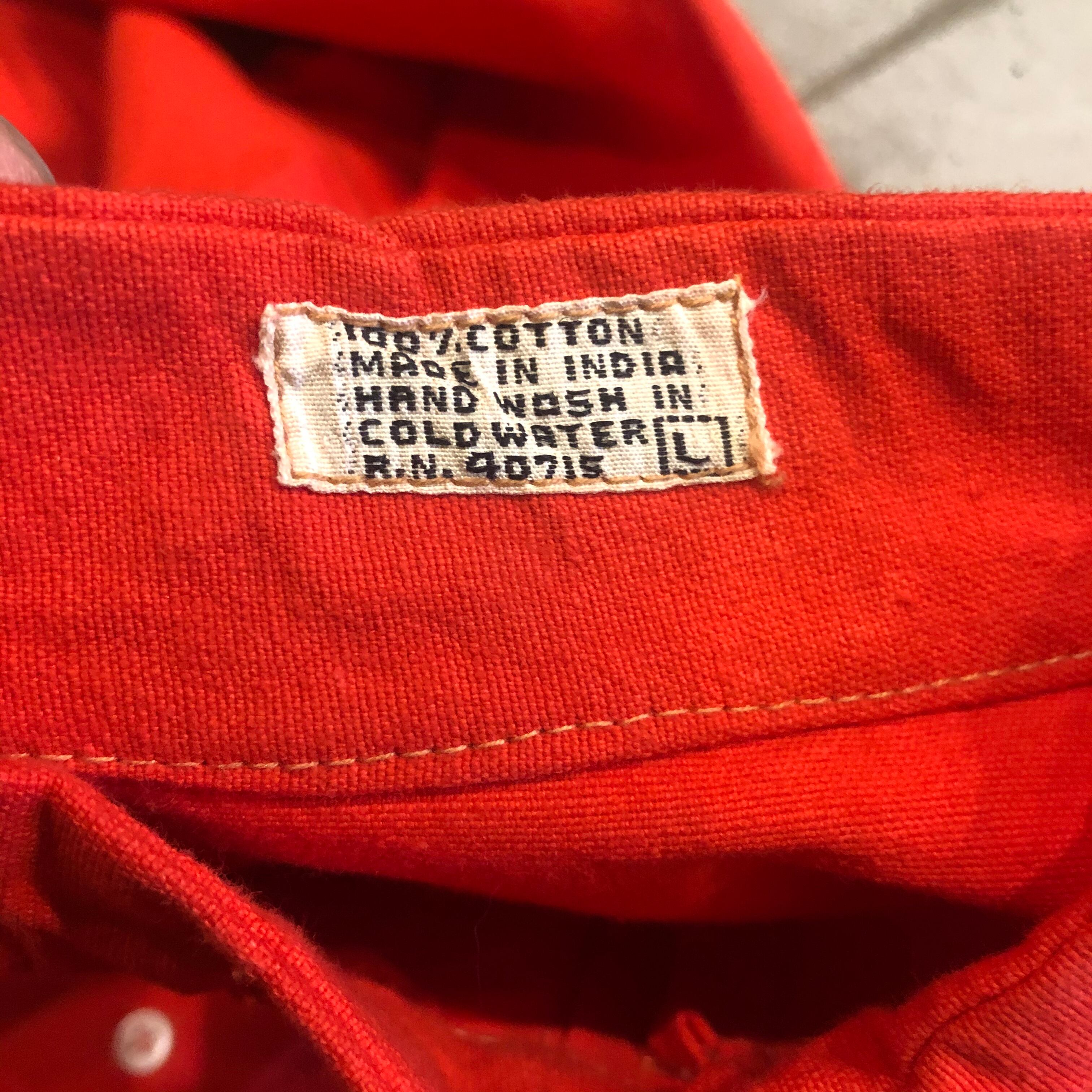全体的に糸のツレや織りの荒い部分が多数あり、縫製も若干適当な感じです。古着にご理解のある方のご購入をお願い致します。