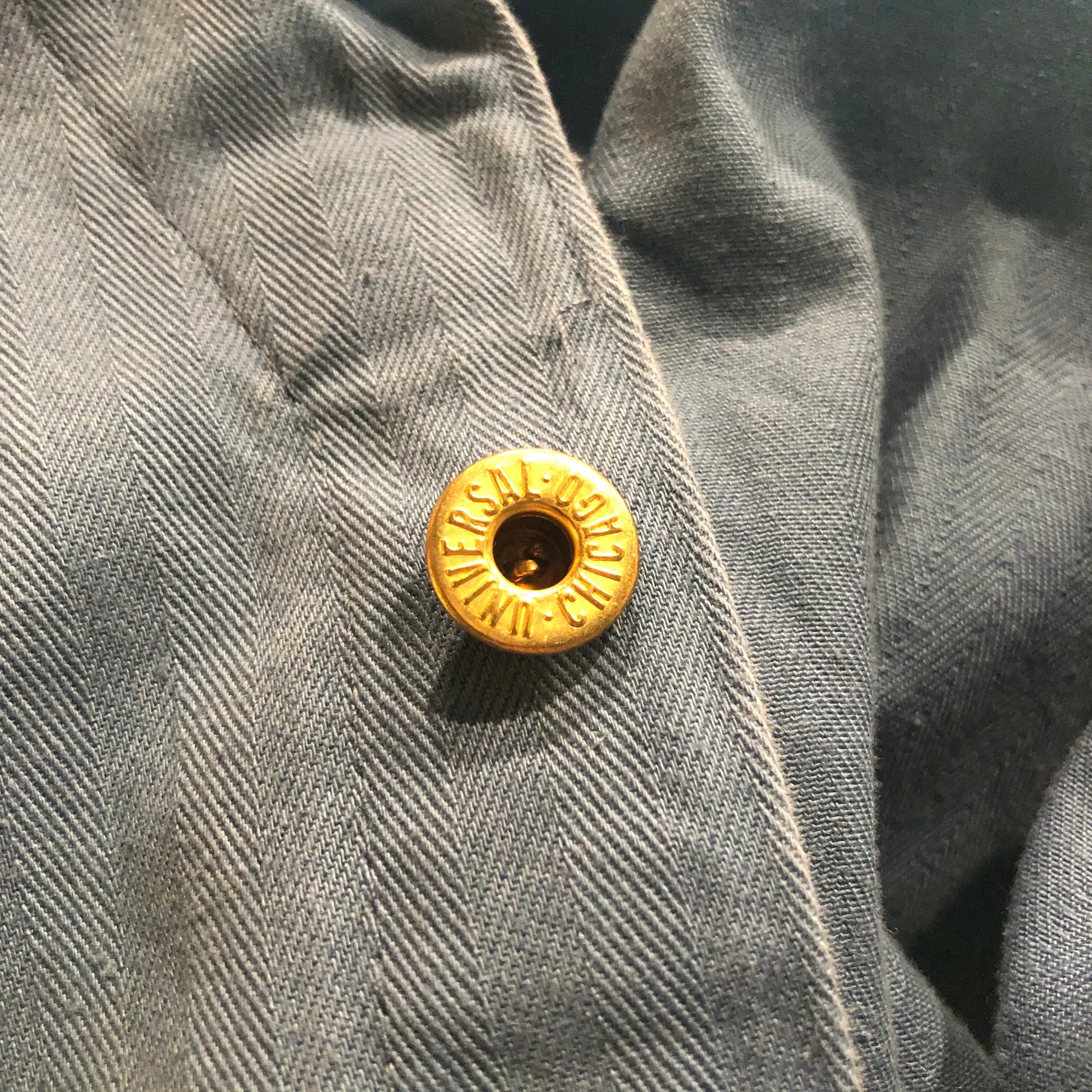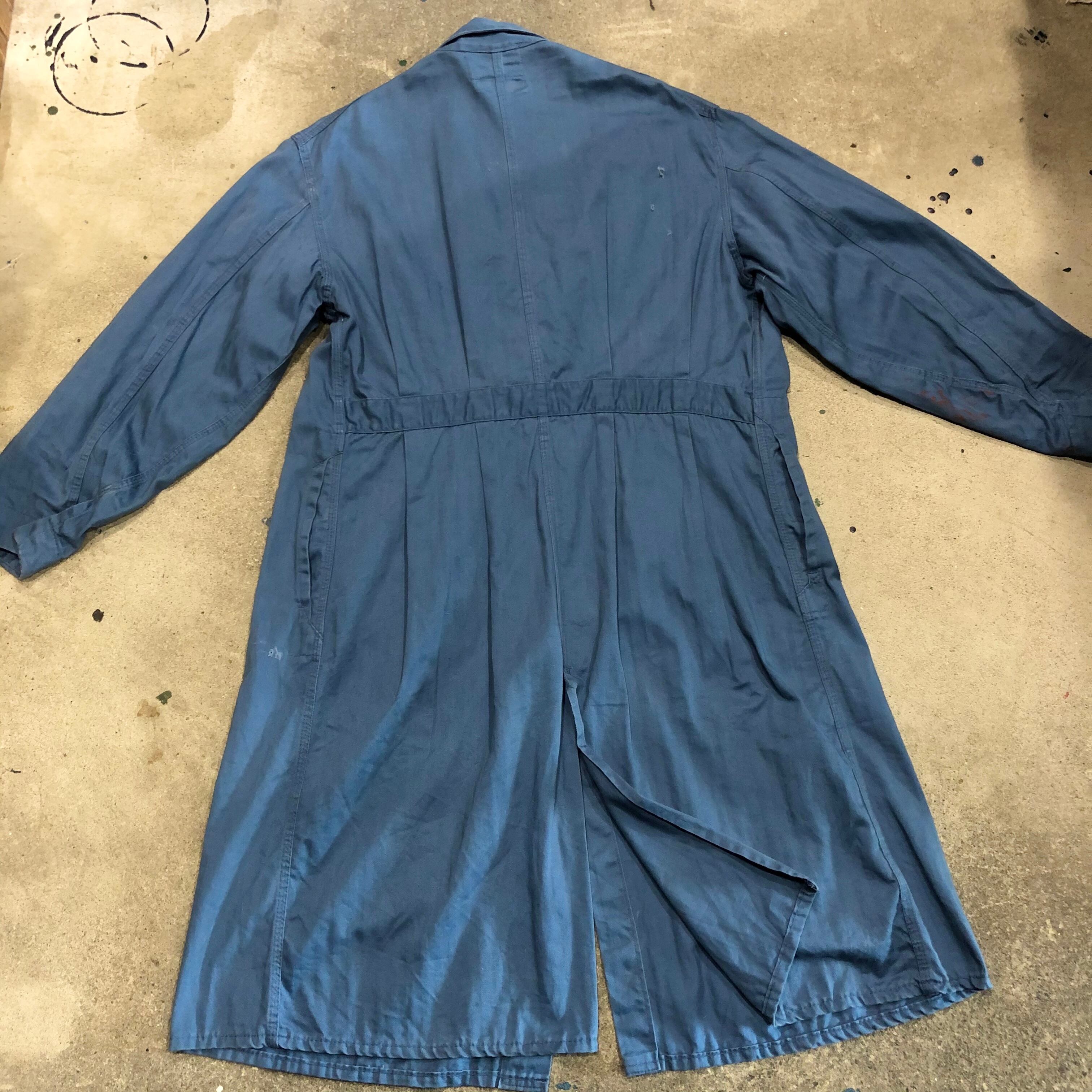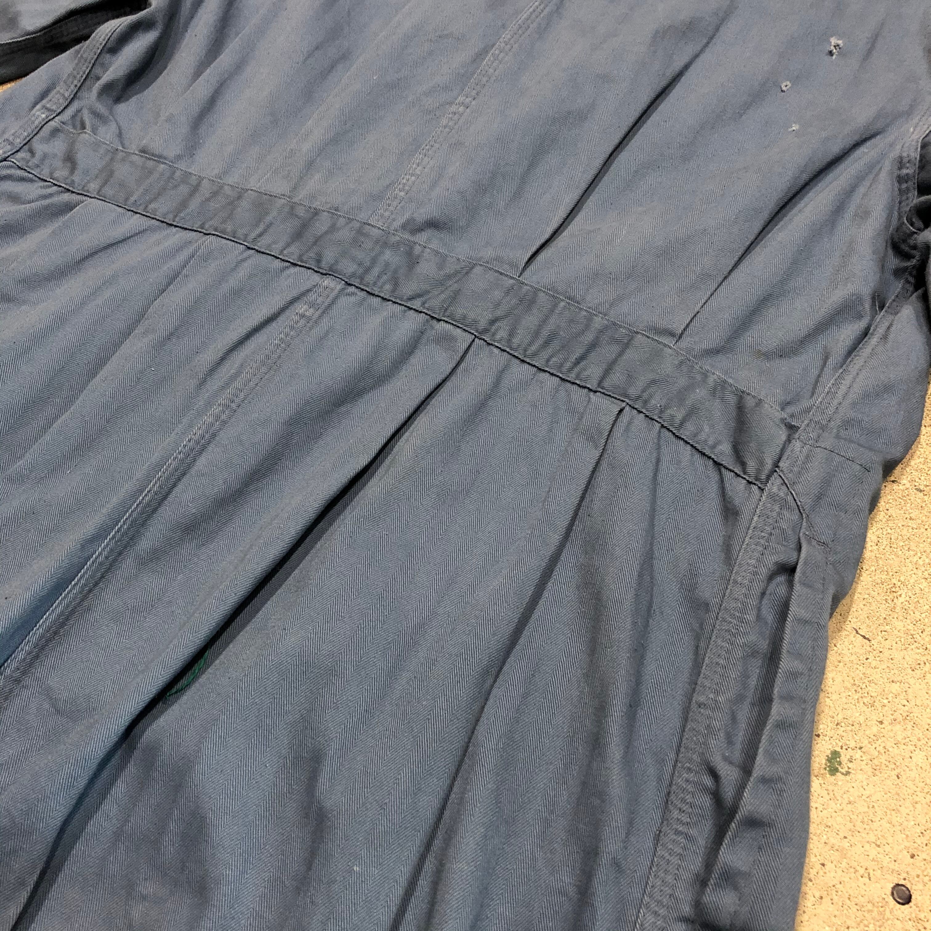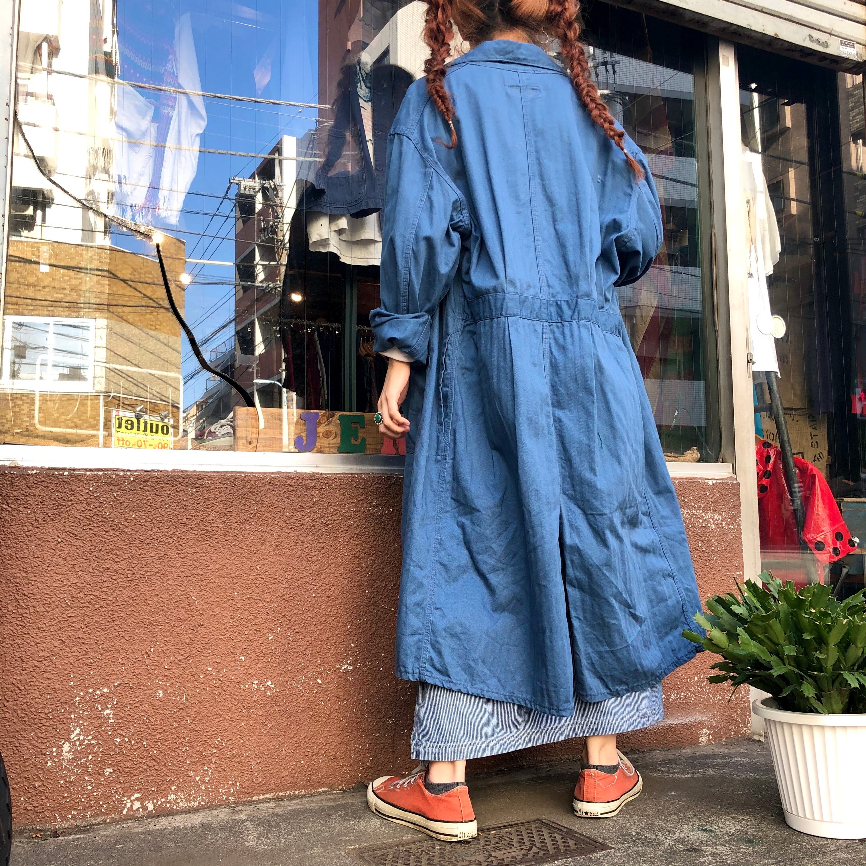 60-70年代アメリカ製、ユニバーサルオーバーオールのショップコートです。ブルーグレーのカラーが結構合わせやすいです。ワークアイテムならではの男臭さが良い感じで、傷やペンキなどのダメージがアジを出しています。大きいサイズなのでもちろん男性がゆったり着るのもおすすめです!