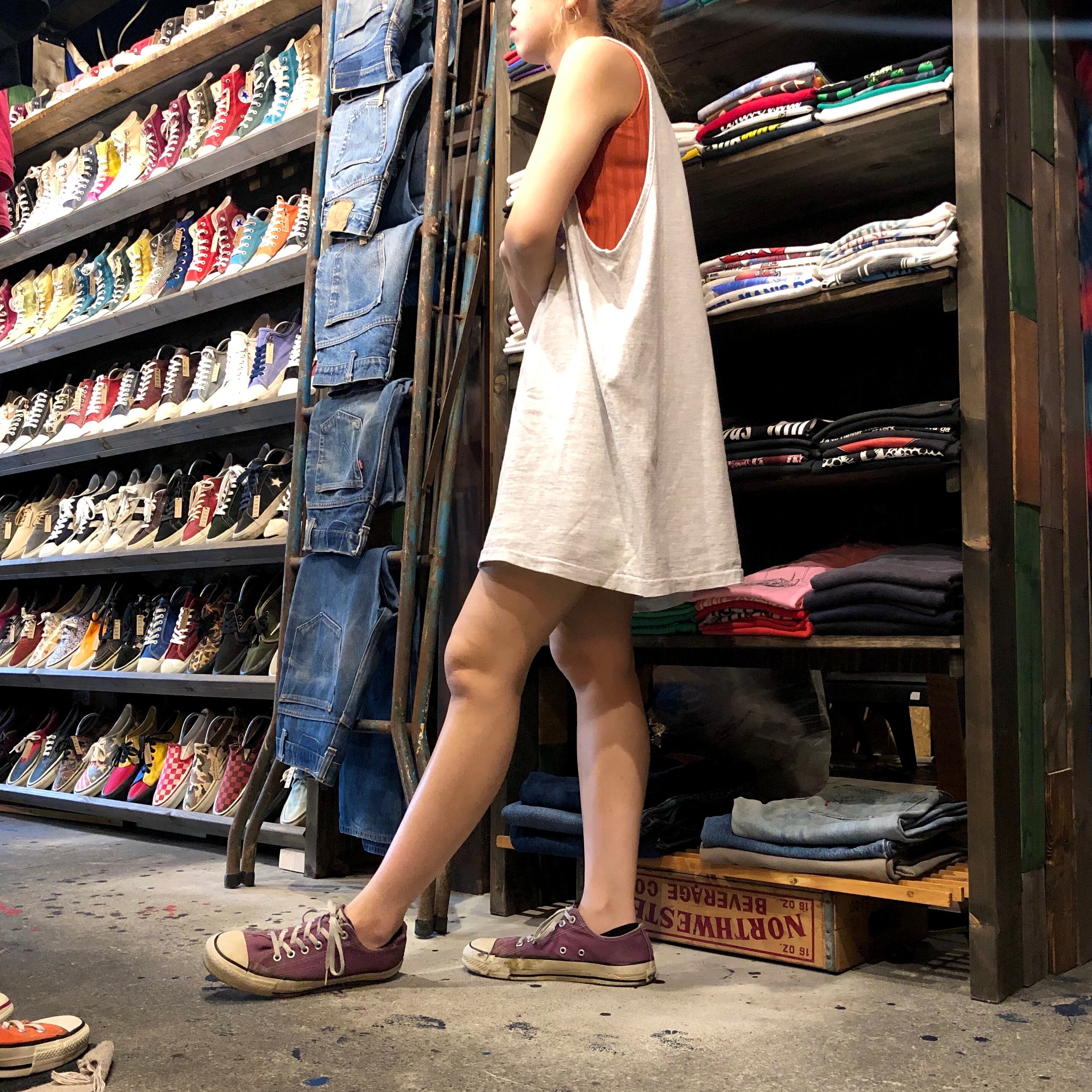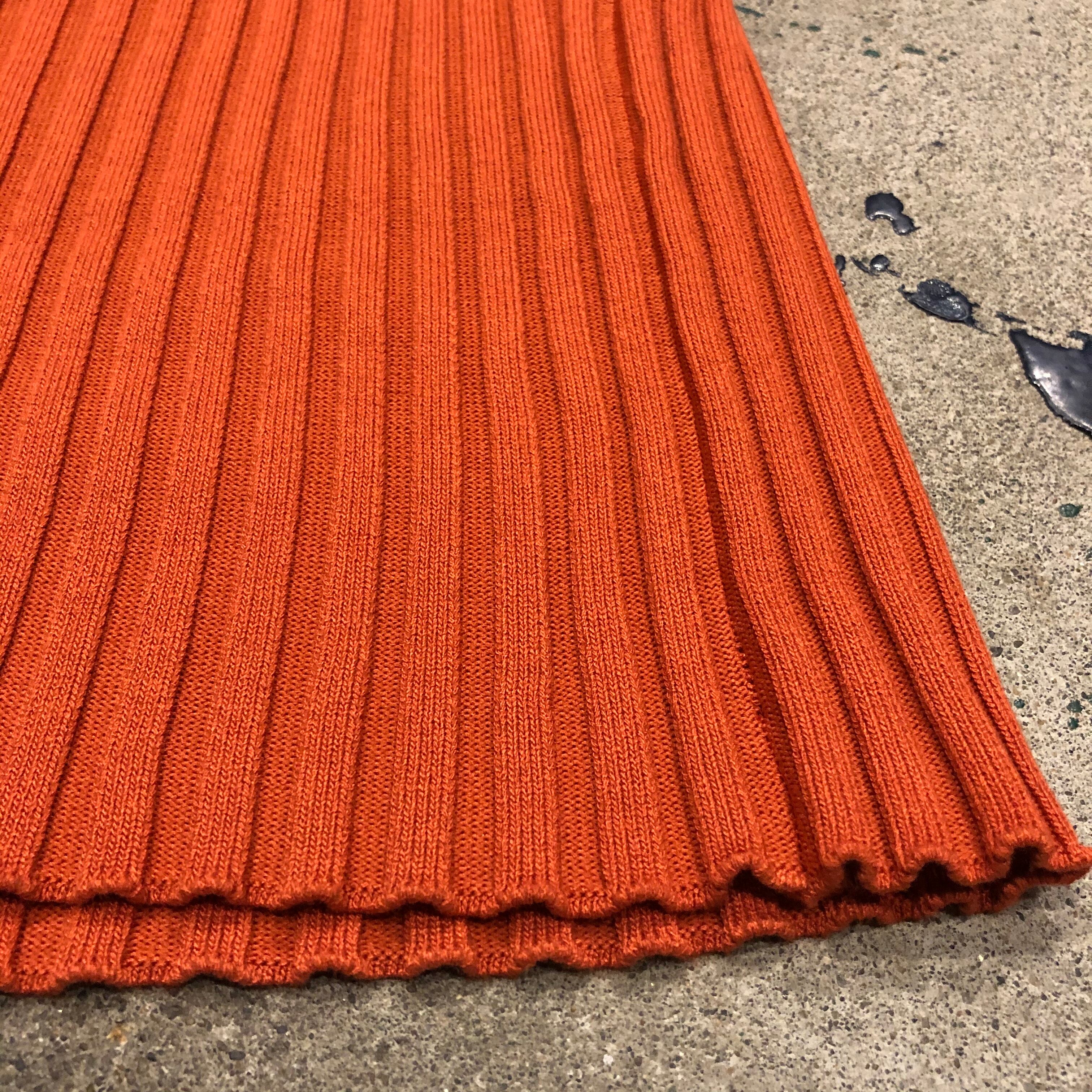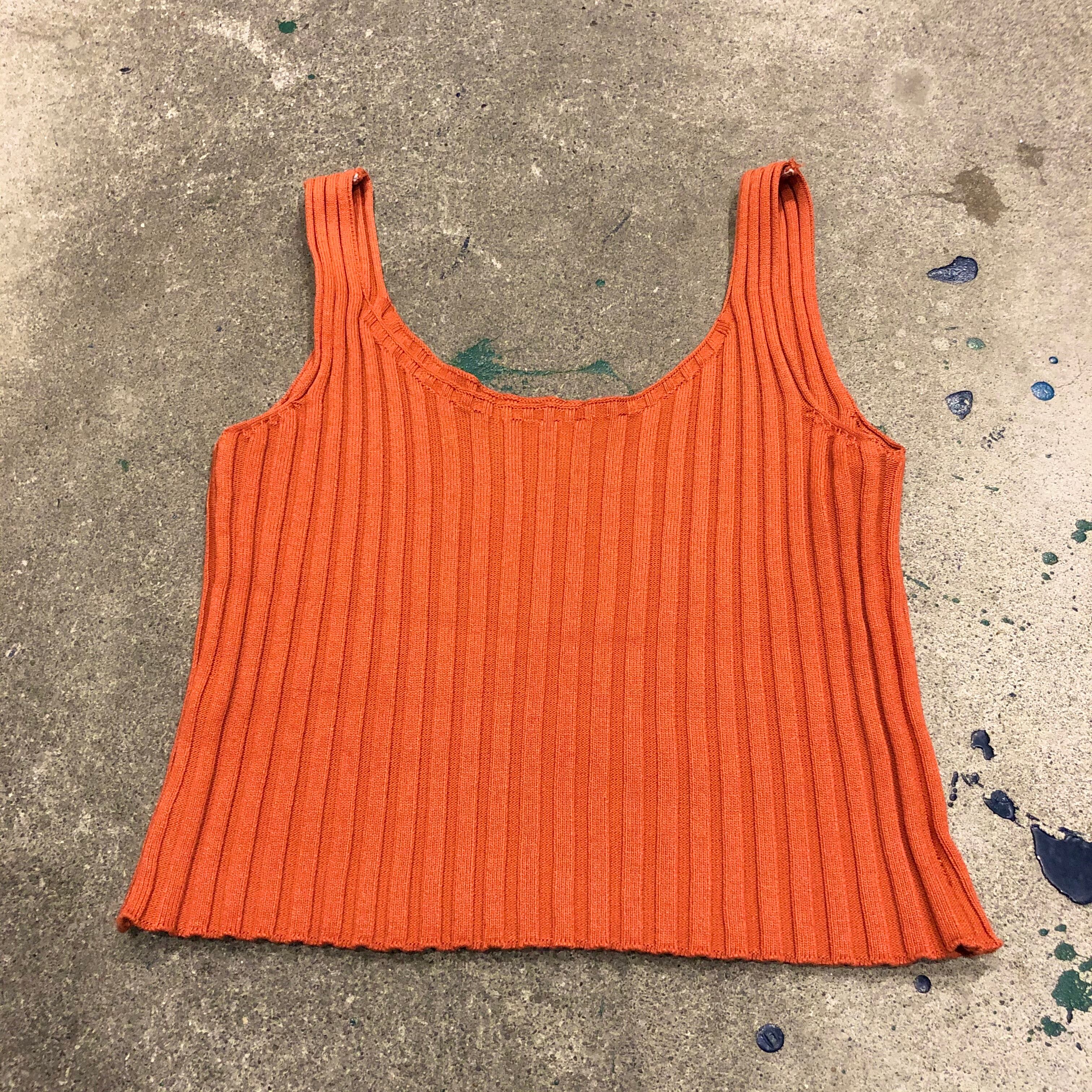キャメルカラーが大人っぽいリブ編みのタンクトップです。胸下までの丈でおヘソは完全に出ます。脇はピタっとしているので、オーバーオールの下などに着て肌をチラ見せさせるのもかわいいですね!