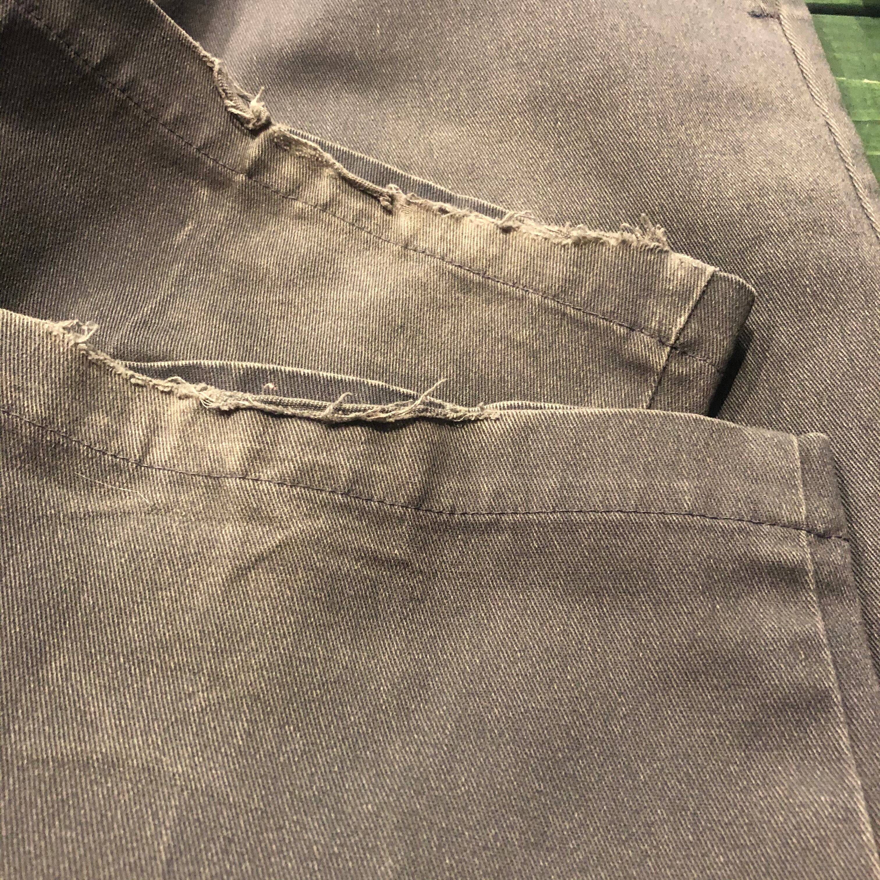 全体的に色落ちや裾の破れ、右膝にはペンキの汚れなどありかなり履き込まれた風合いですので、ご理解いただける方のご購入をお願い致します。