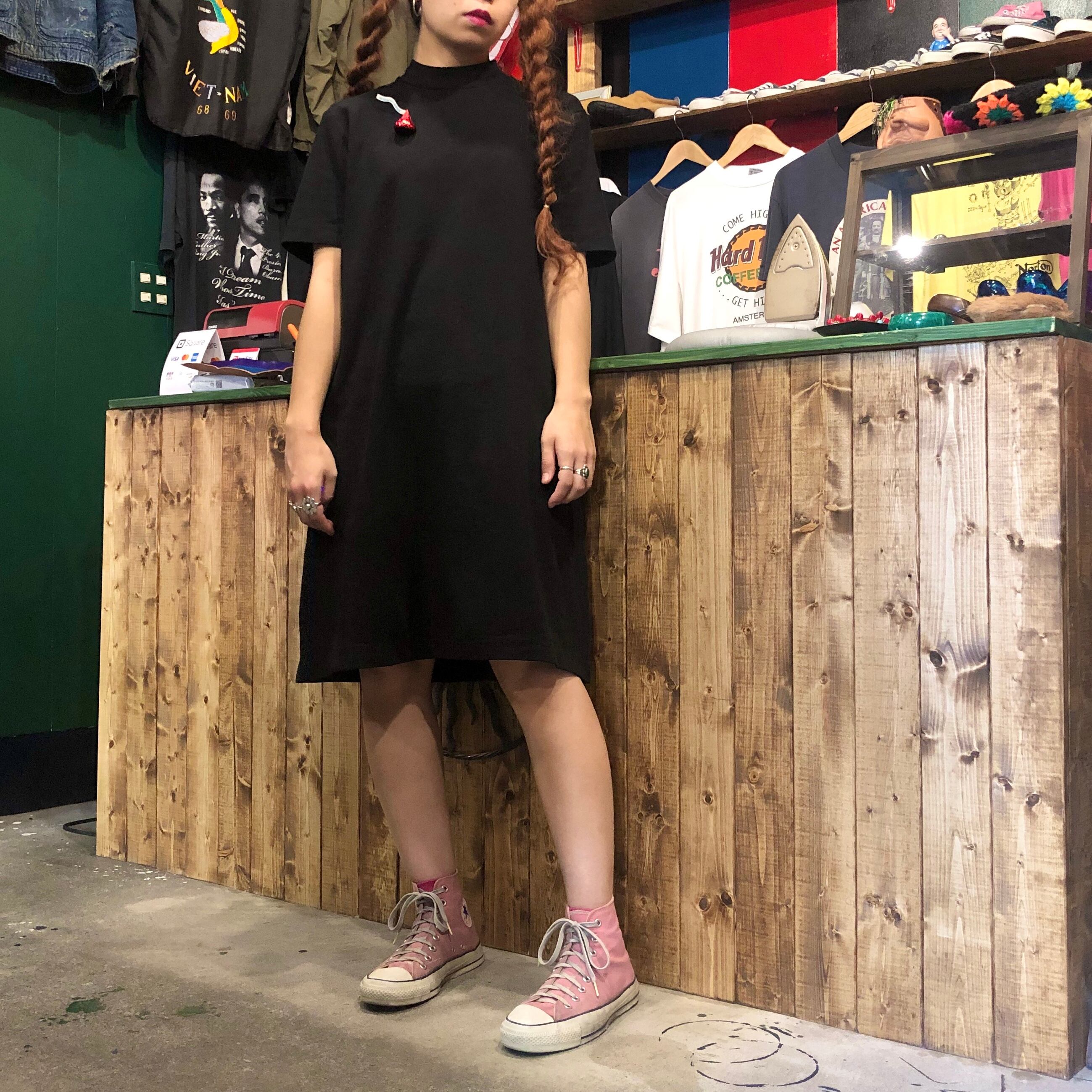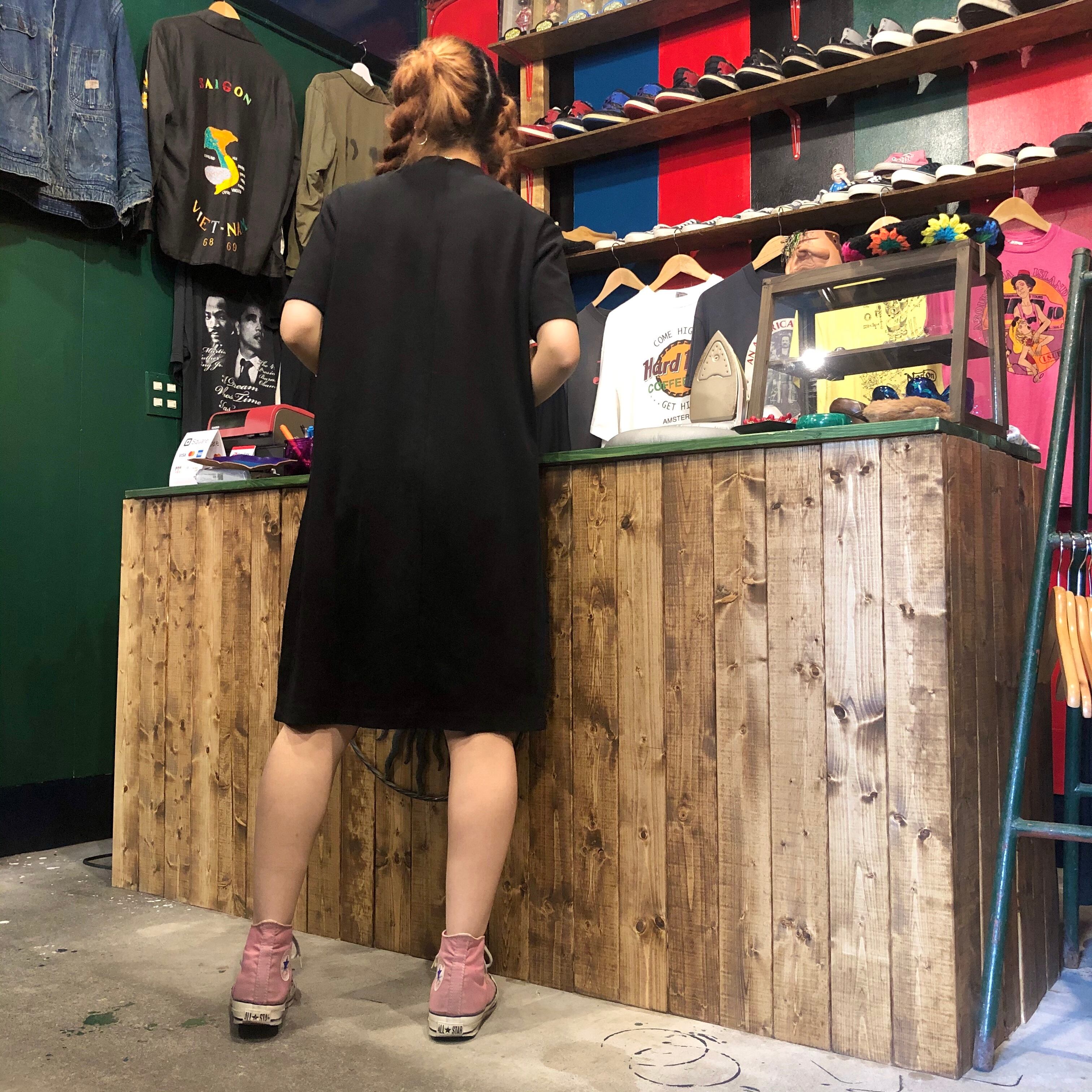 モックネックのシンプルなワンピースです。