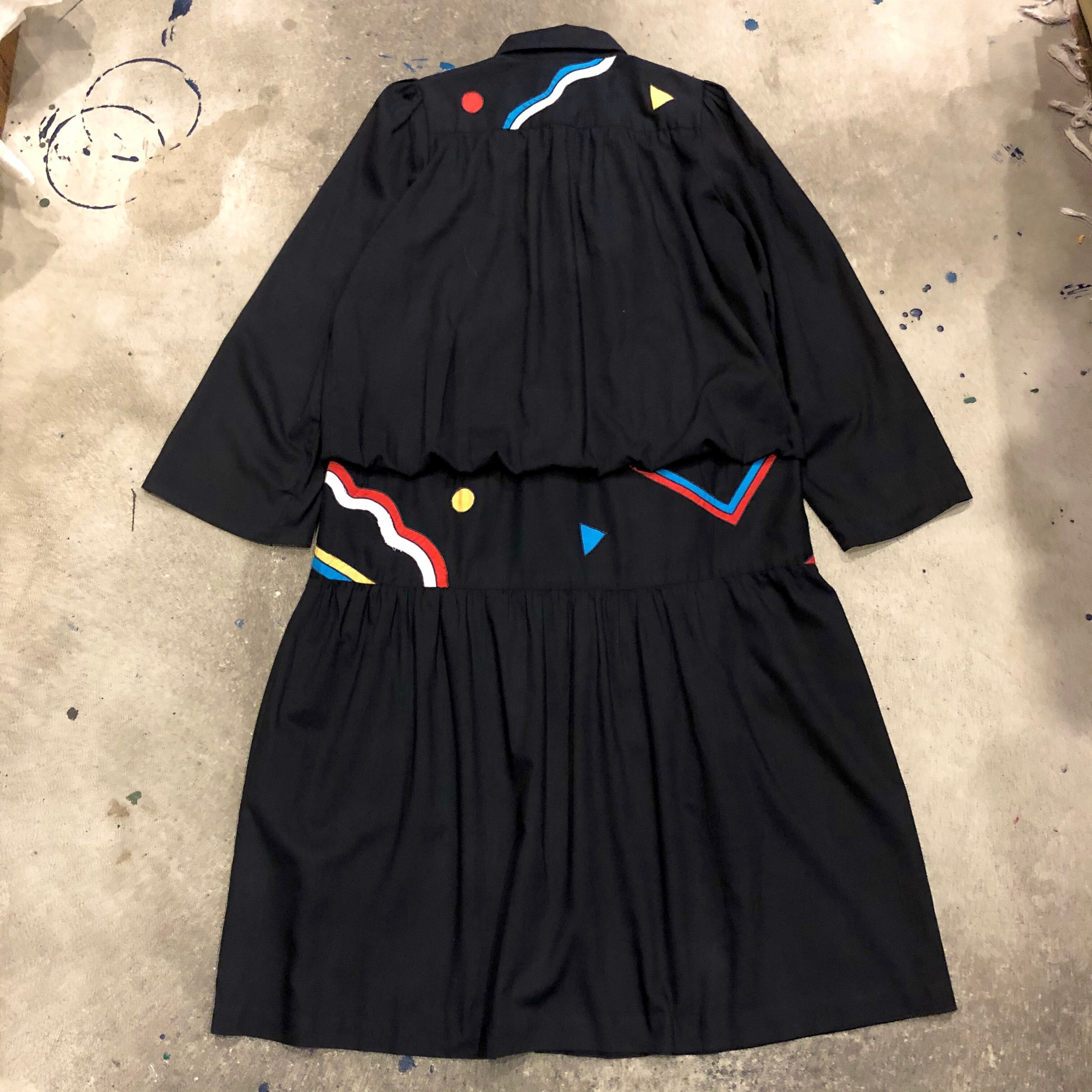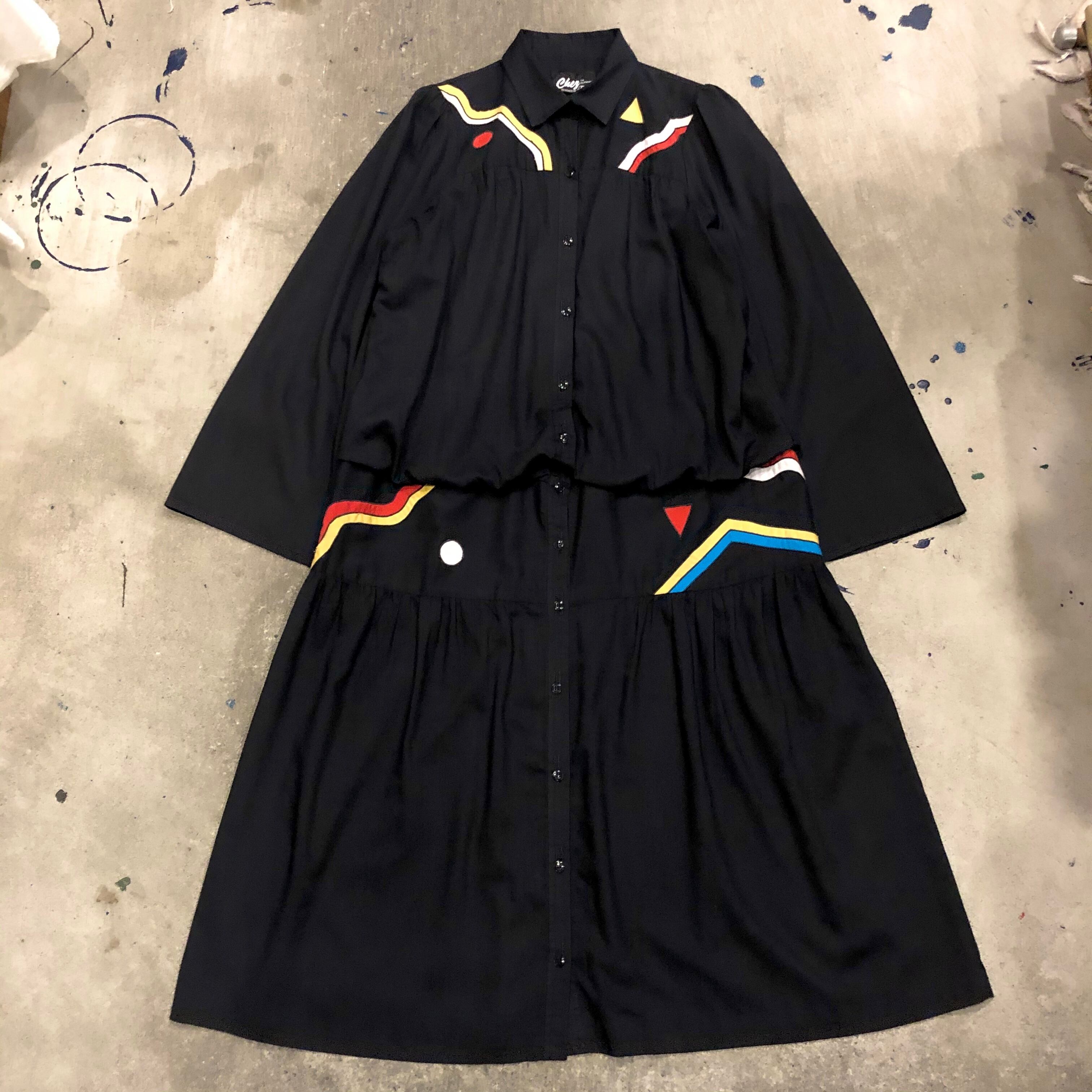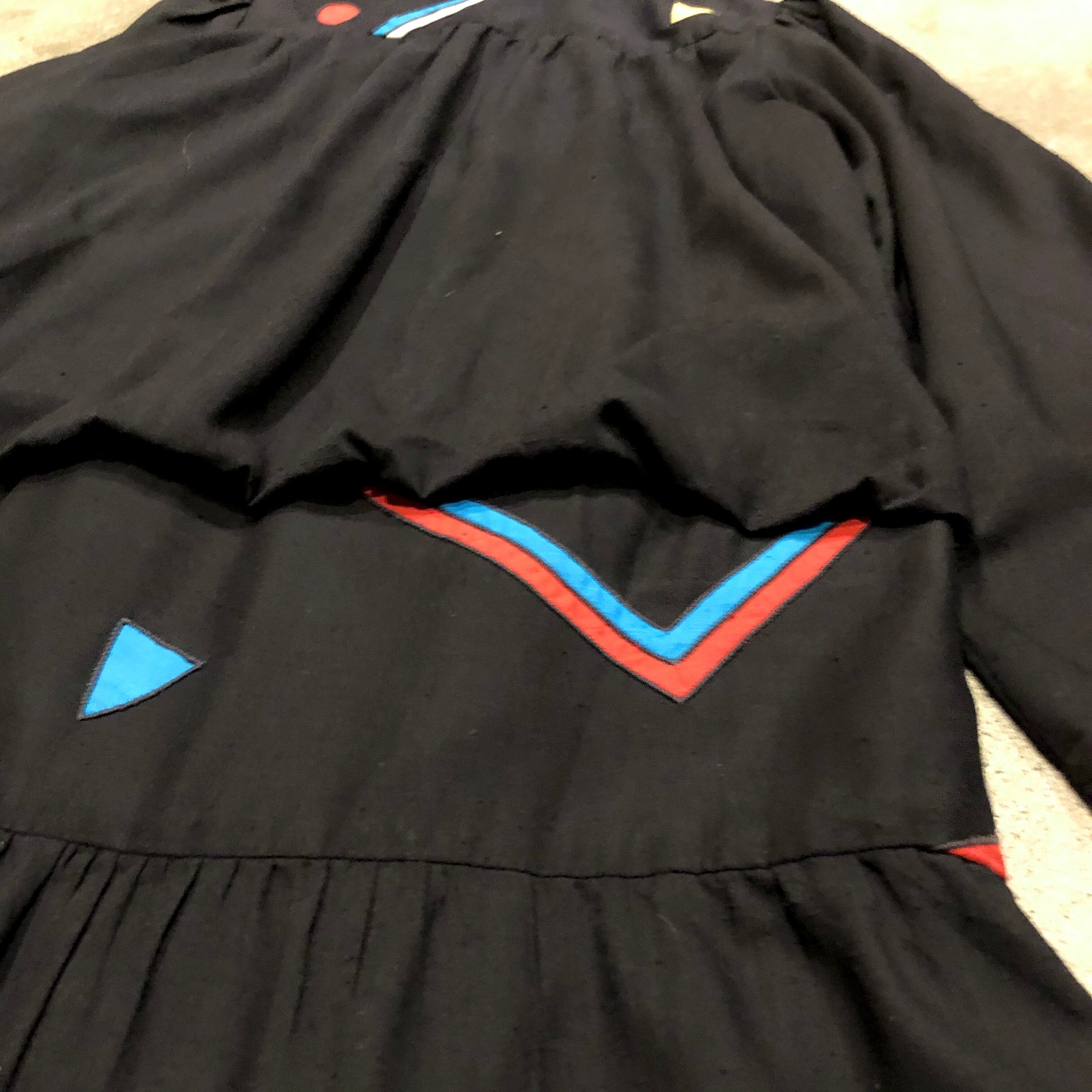 ローウエストでブラウジングしたようなデザインになっている全体的なデザインも、細かいパッチワークの模様もかわいいワンピースです。