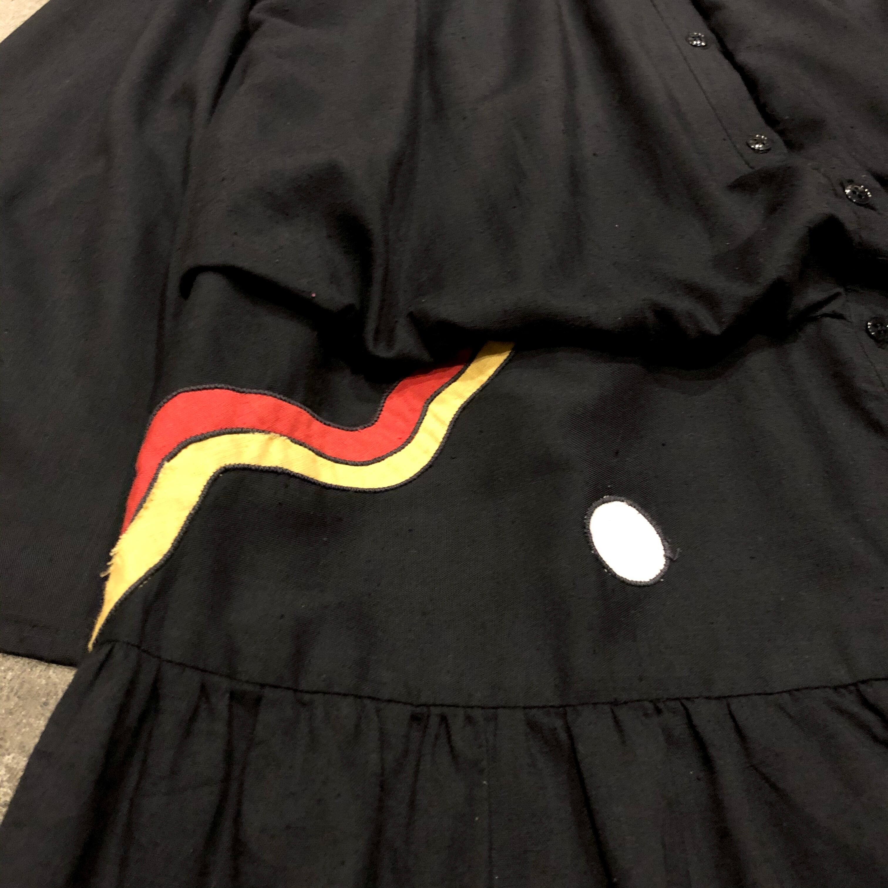 不思議な雰囲気が他にはない個性的な一着だと思います。前明きなので羽織としてお使いいただいてもかわいいです!