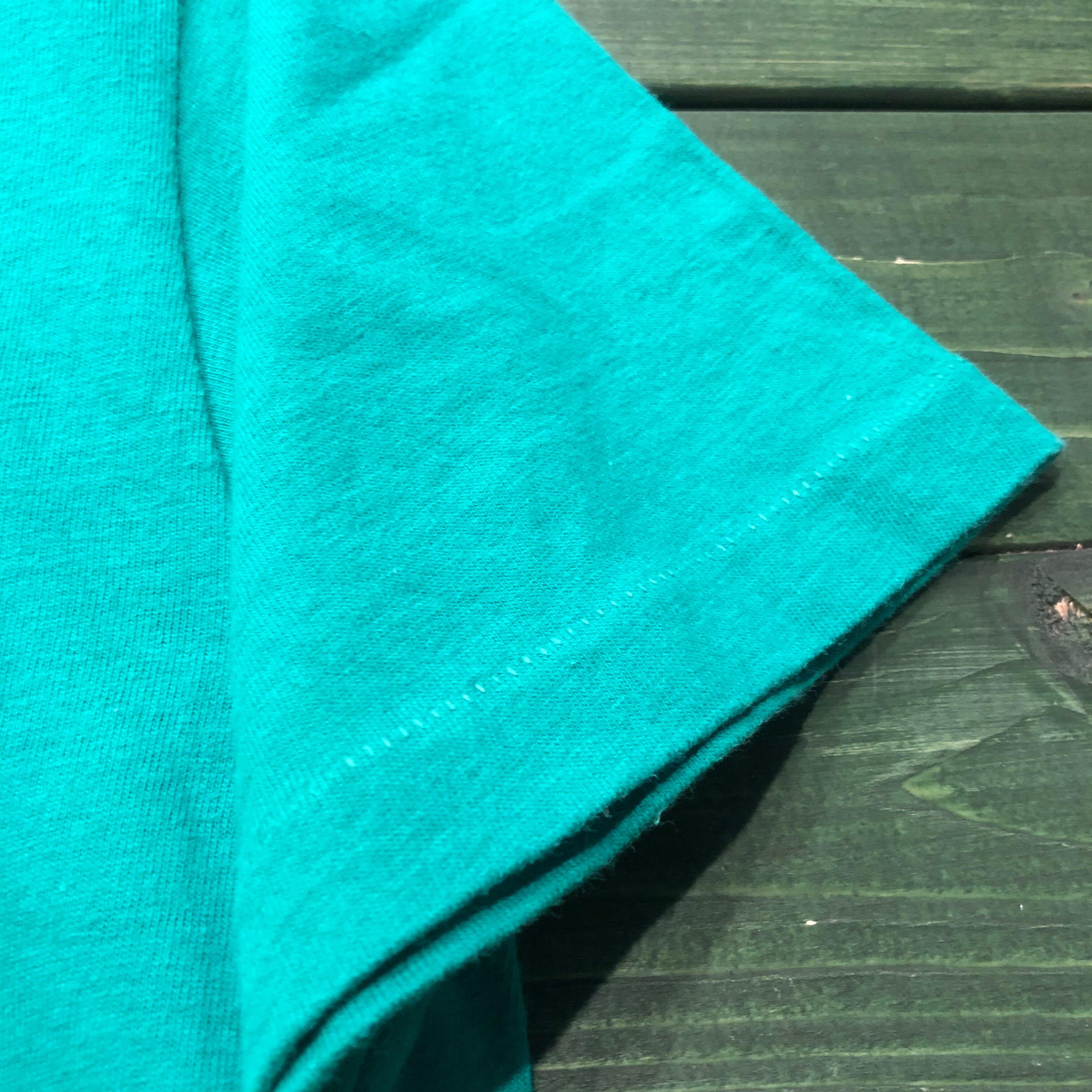 みずみずしい緑のボディにオレンジがバーンとプリントしてありインパクトのあるTシャツです。