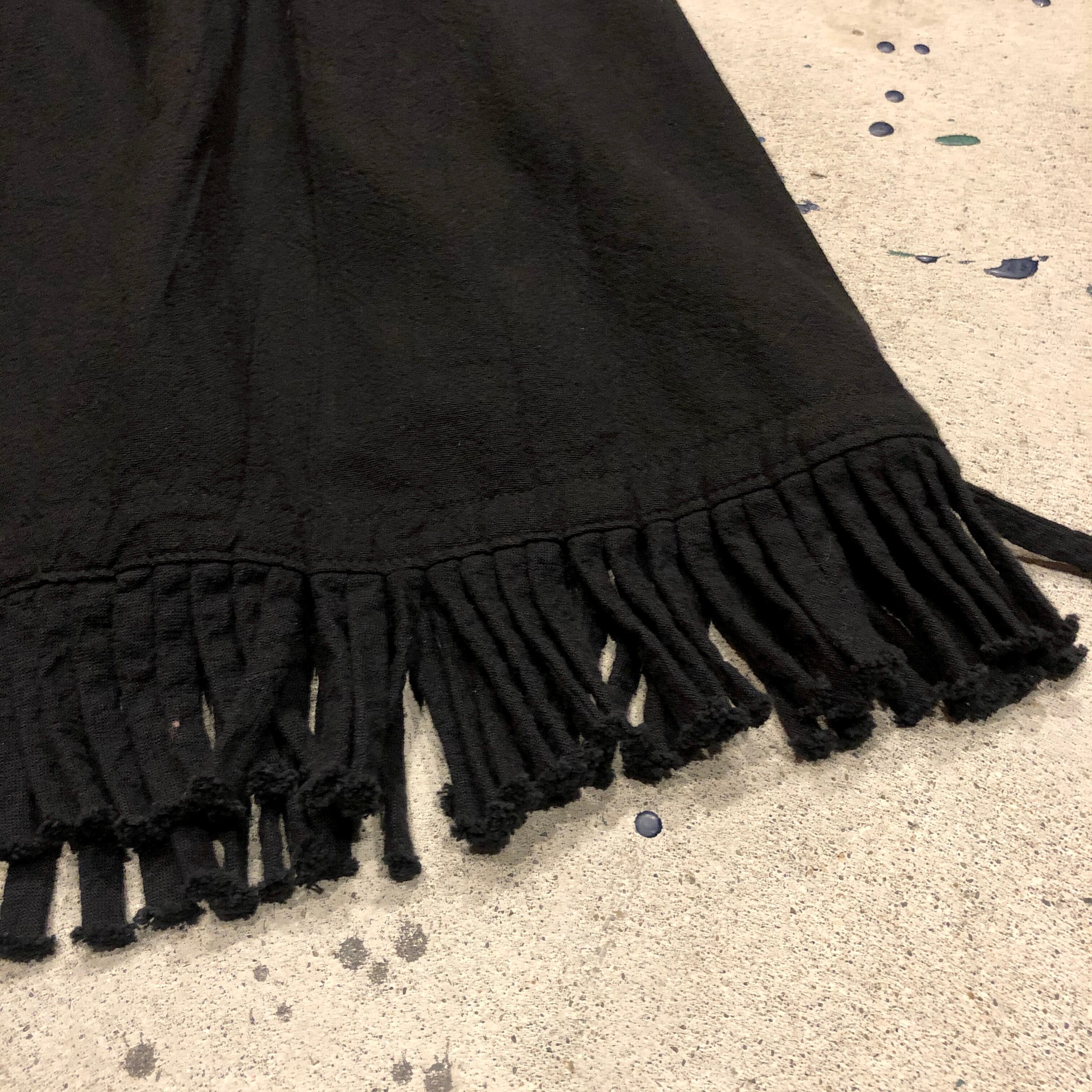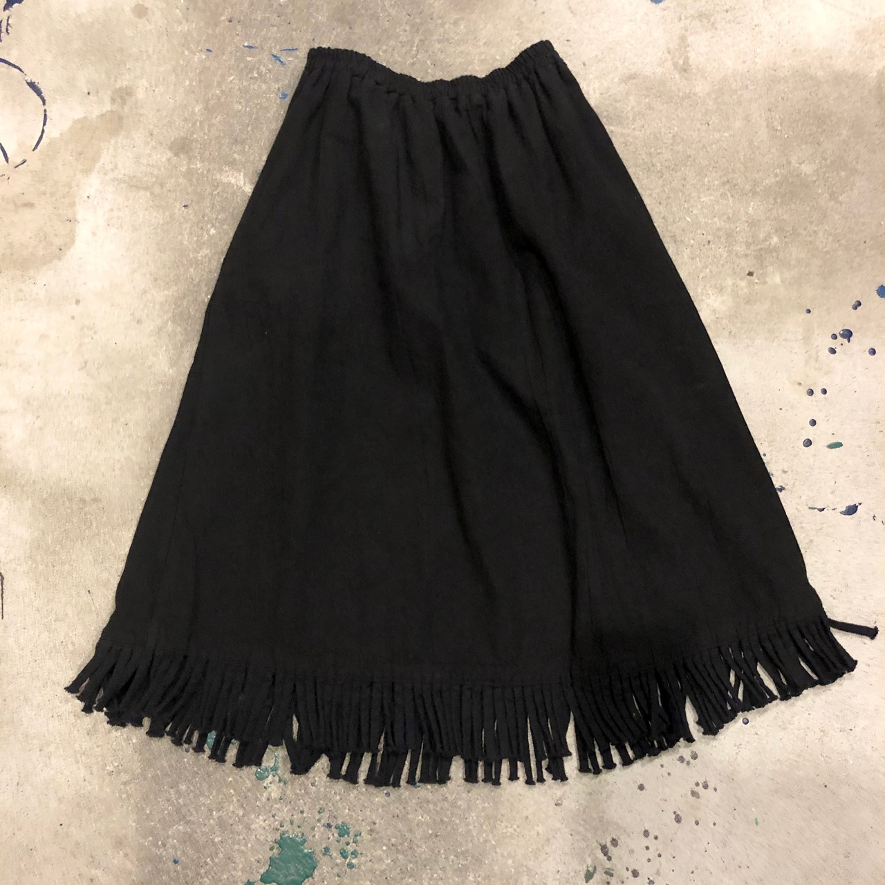 厚手で柔らかいコットンのシンプルなスカートです。裾のフリンジがちらちら揺れてかわいいです。黒でシンプルなのでいろんなアイテムと合わせられて使えそうです!