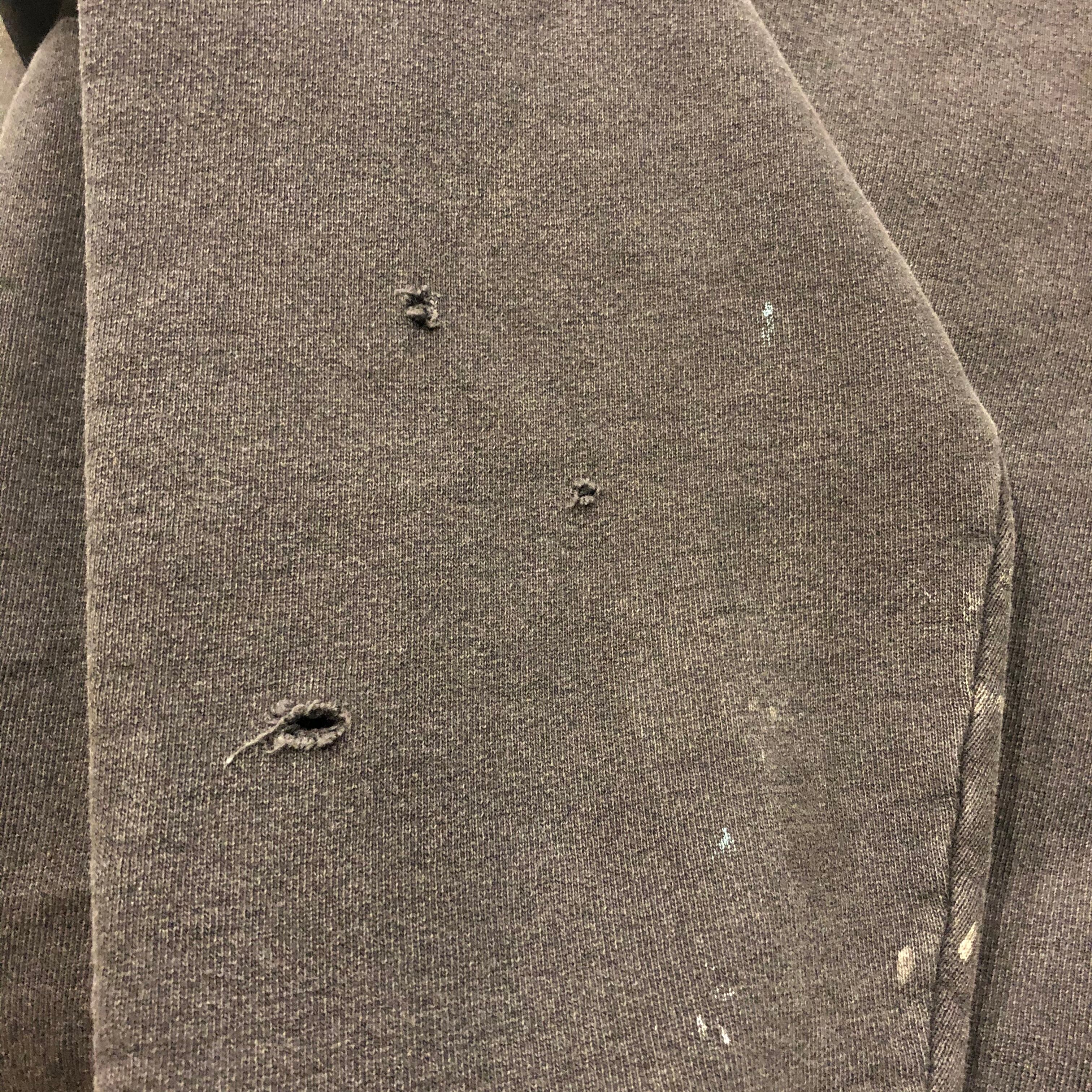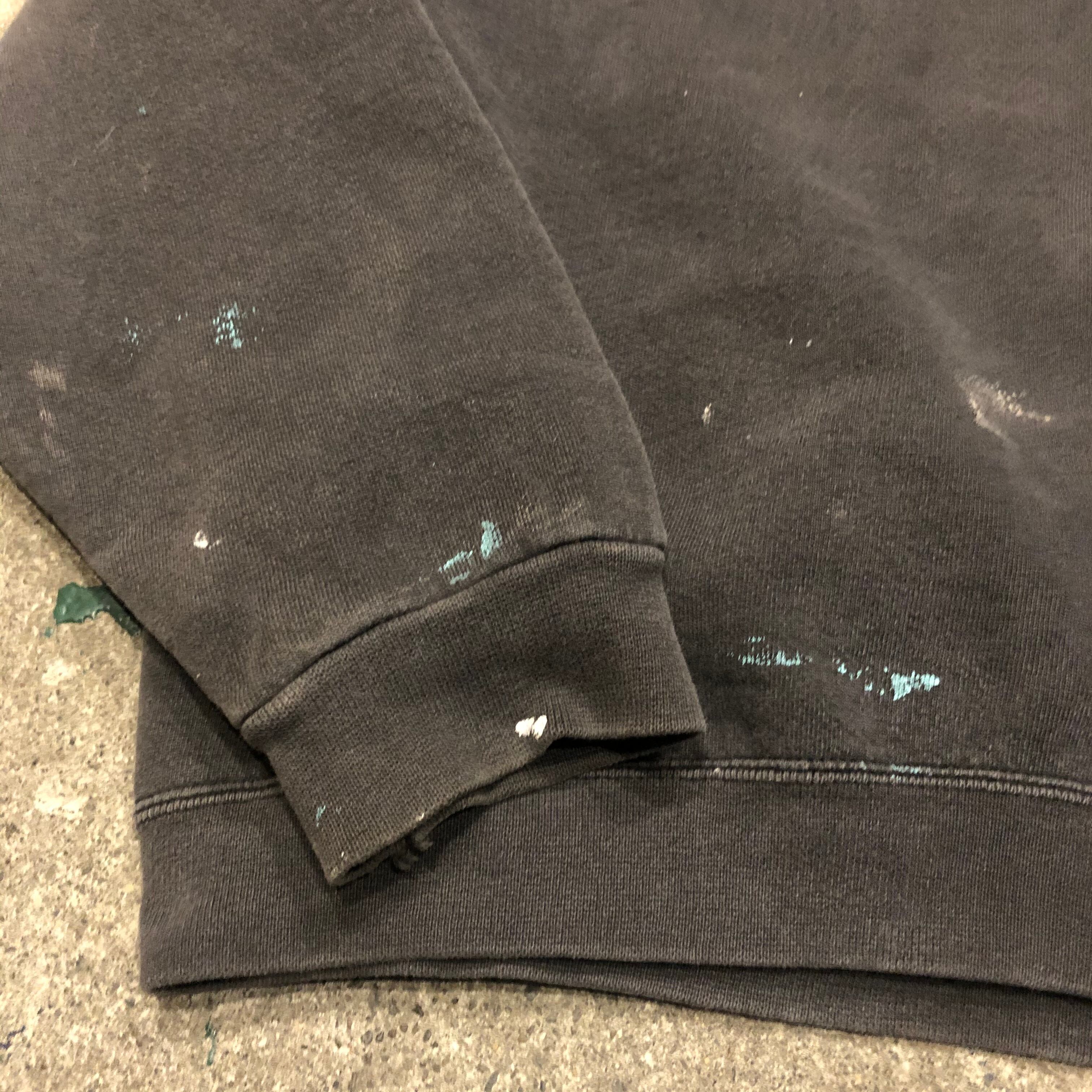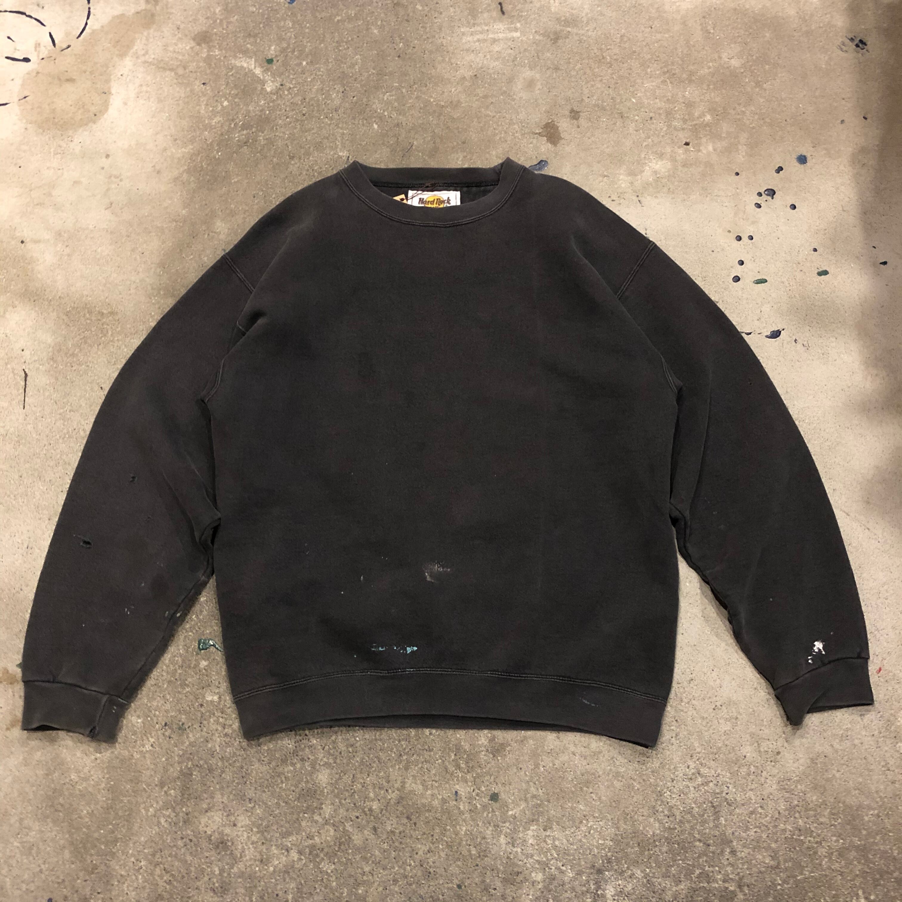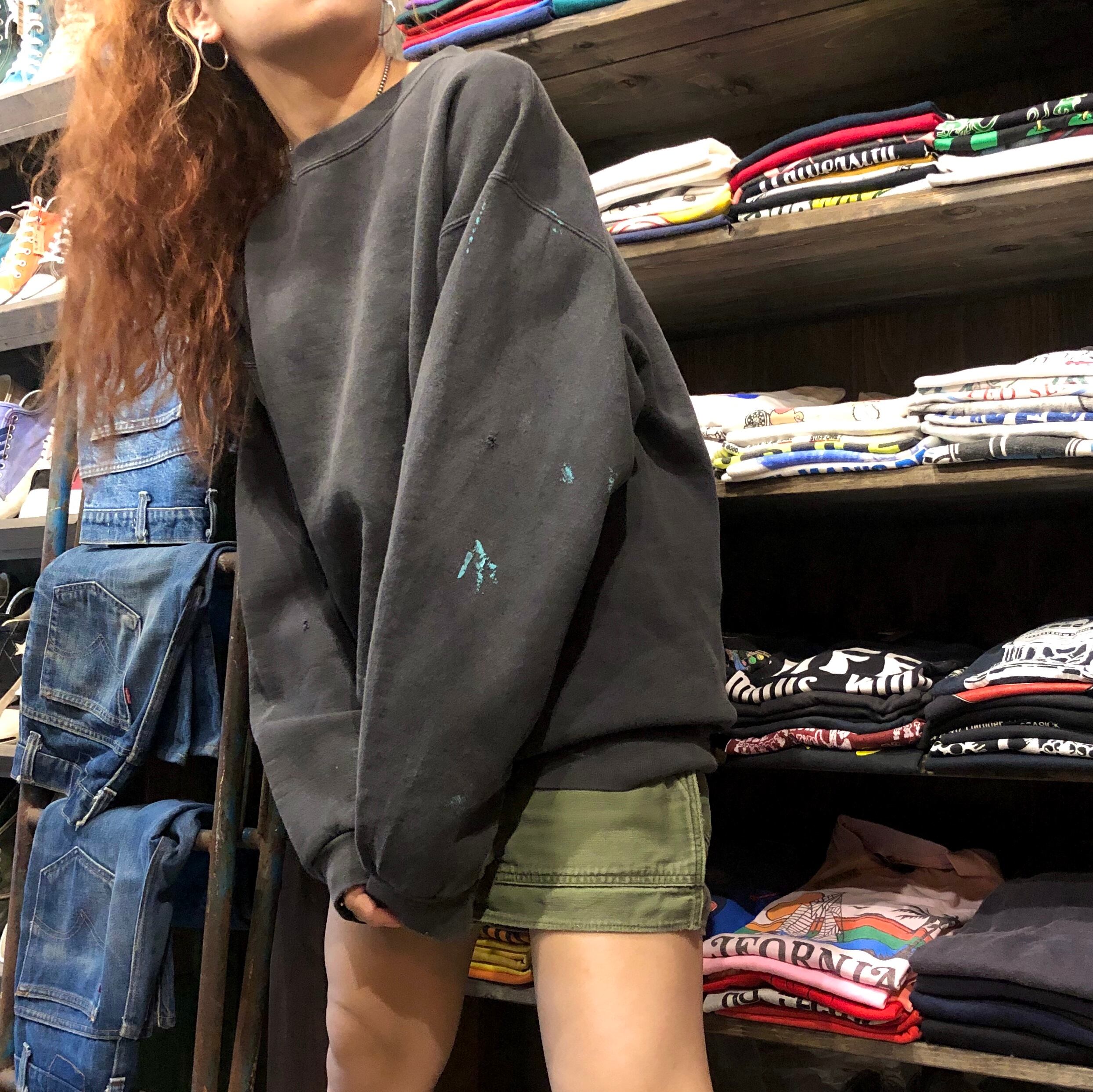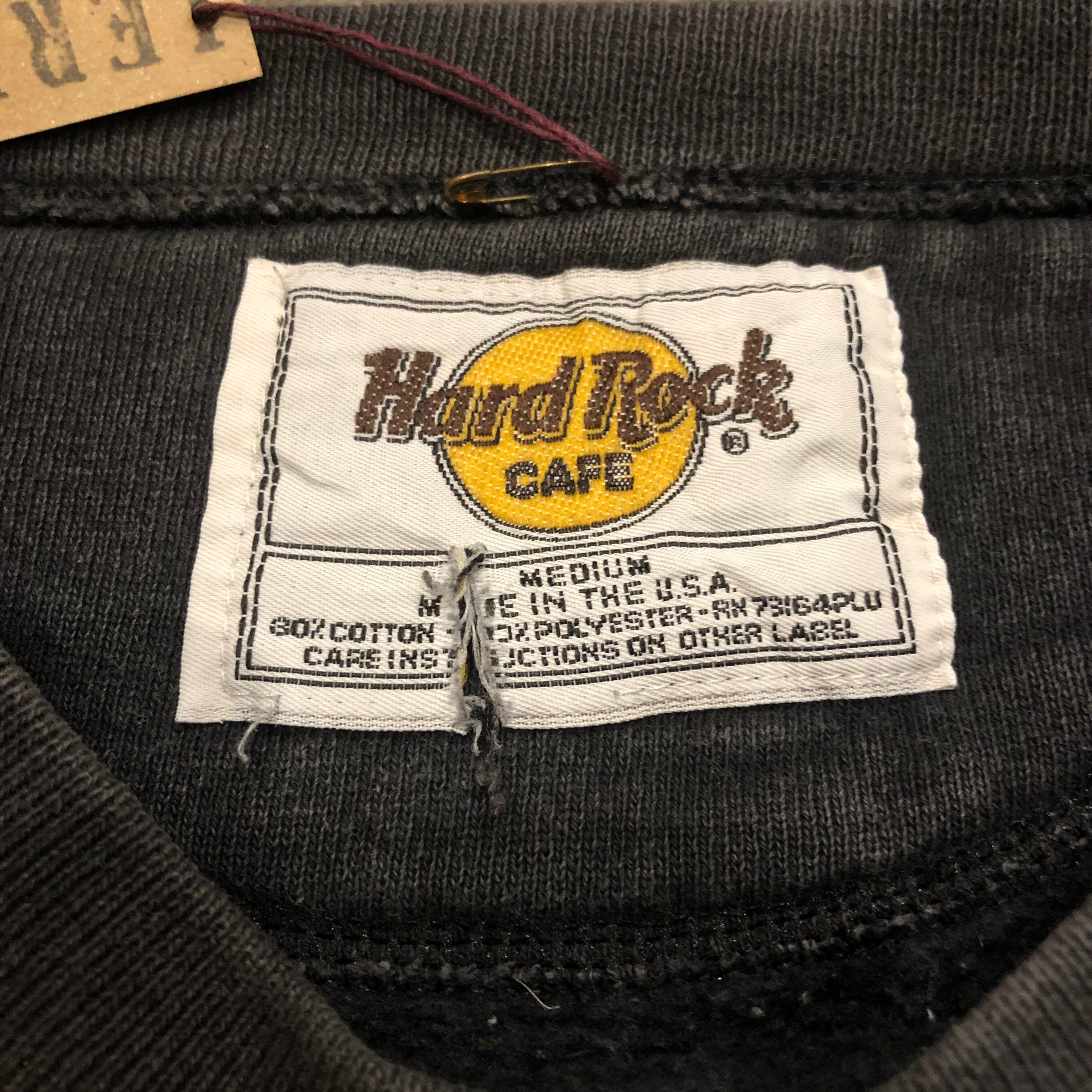 色あせた黒の風合いとペンキやダメージが良い感じのスウェットです。Hard Rock CAFEのタグがついていますがどこにも主張はなくシンプルなデザインです。