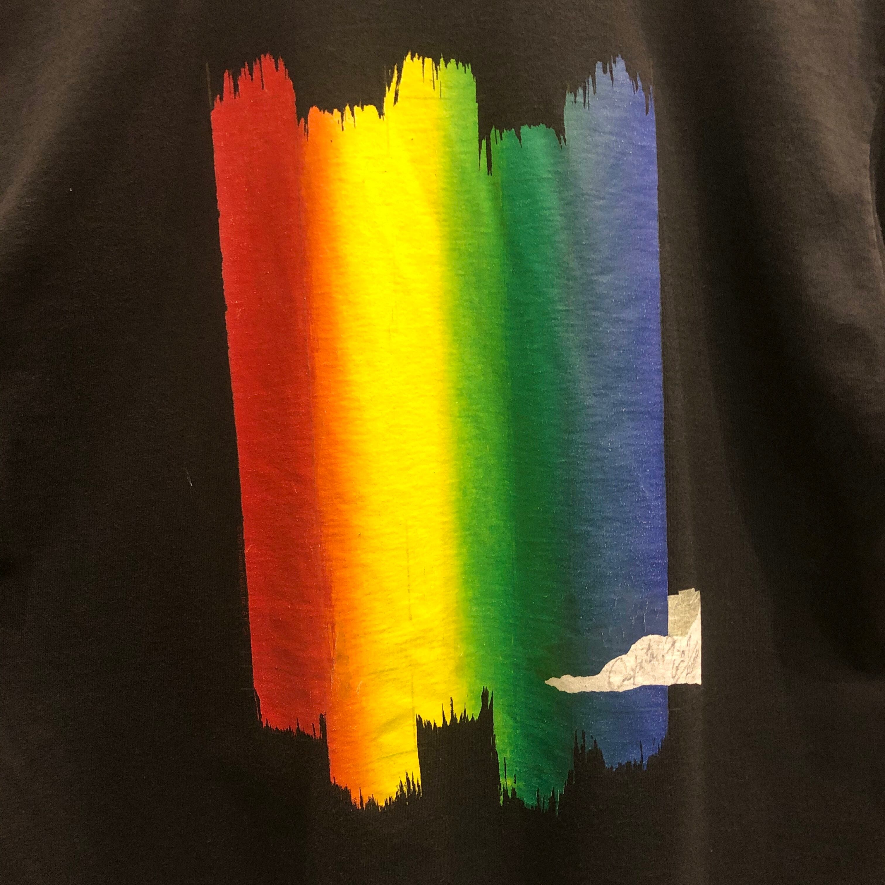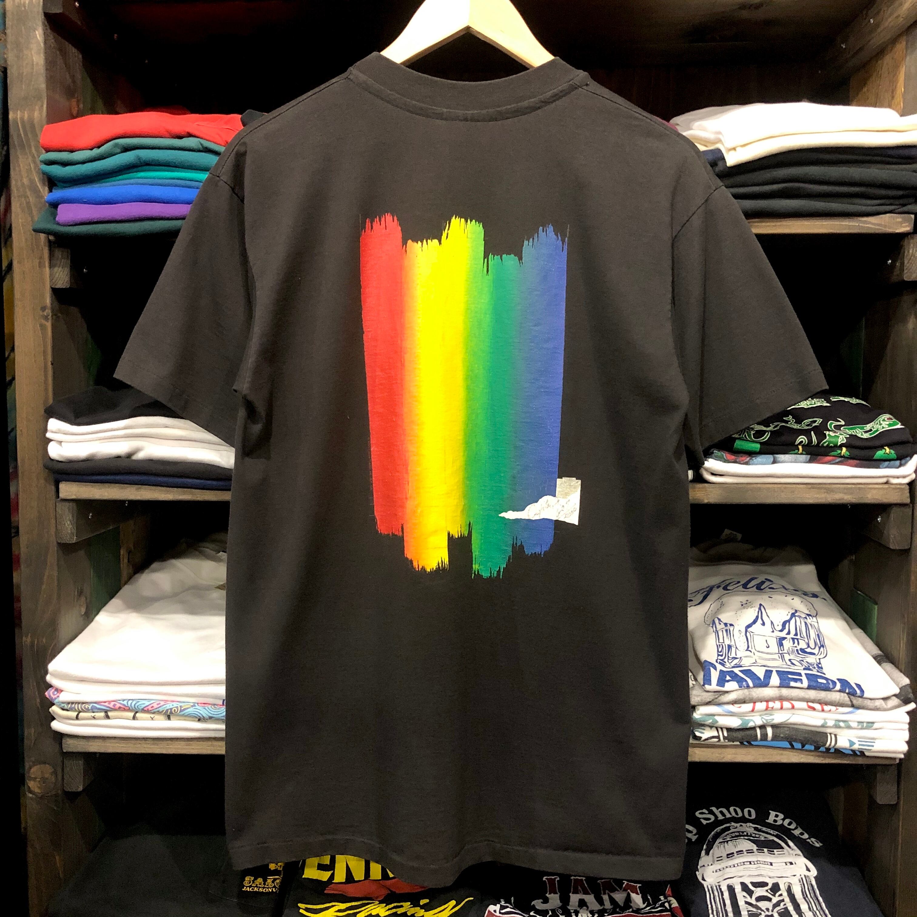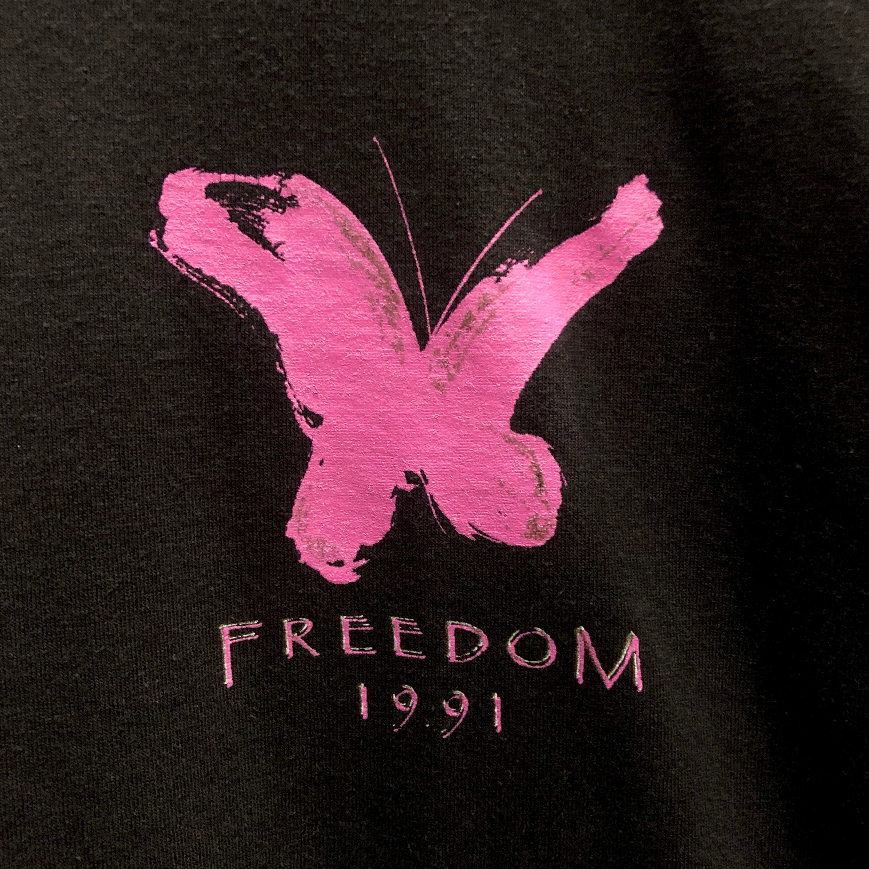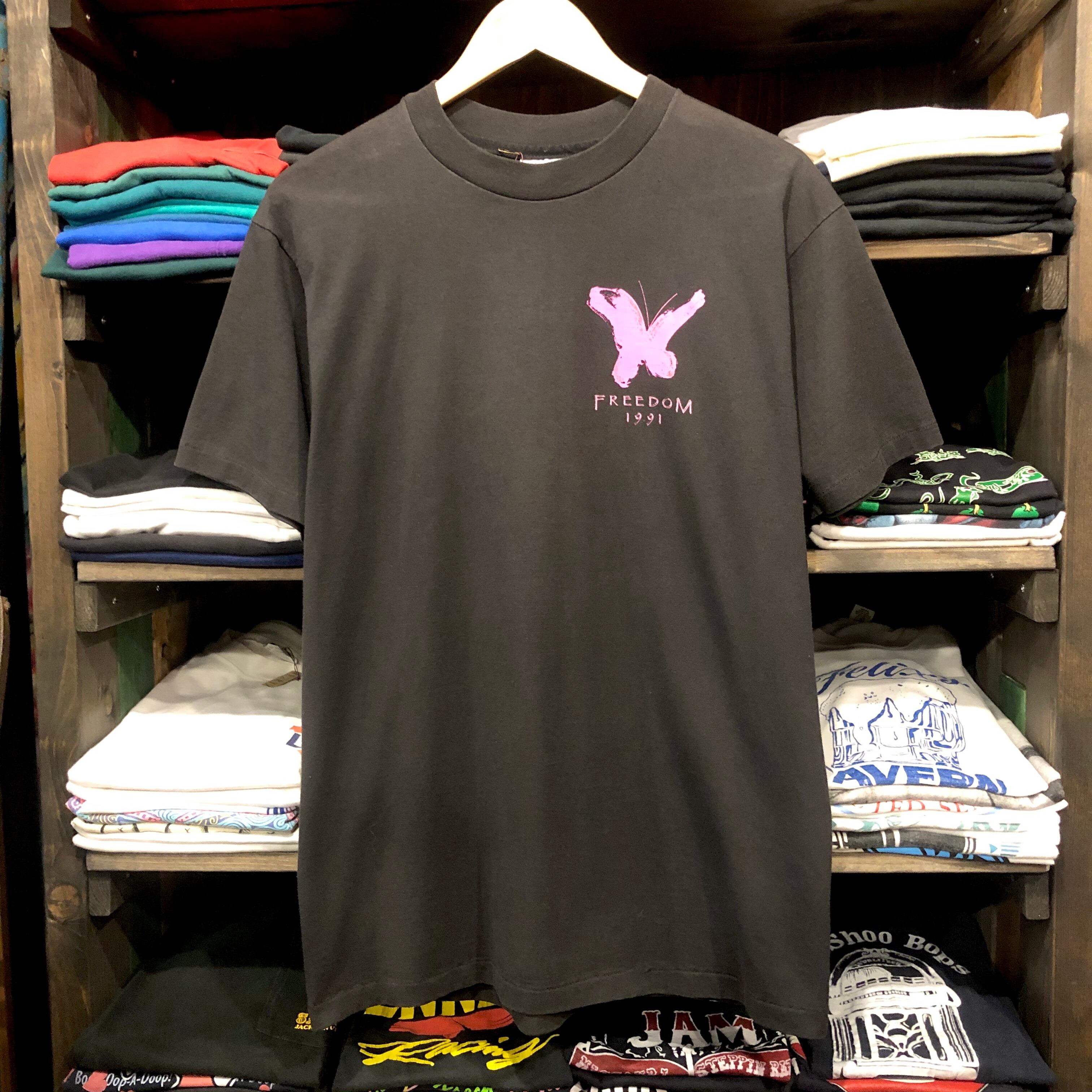 胸の蝶とFREEDOM、バックプリントのレインボーカラーが良い感じの90年代アメリカ製のTシャツです。