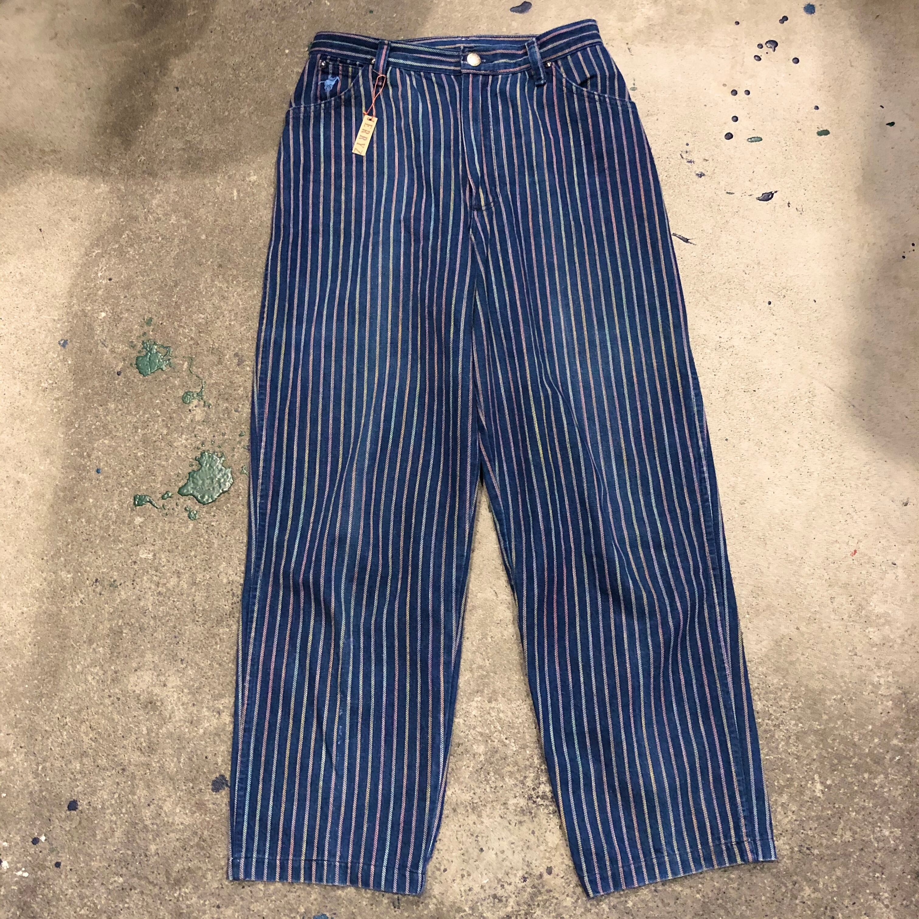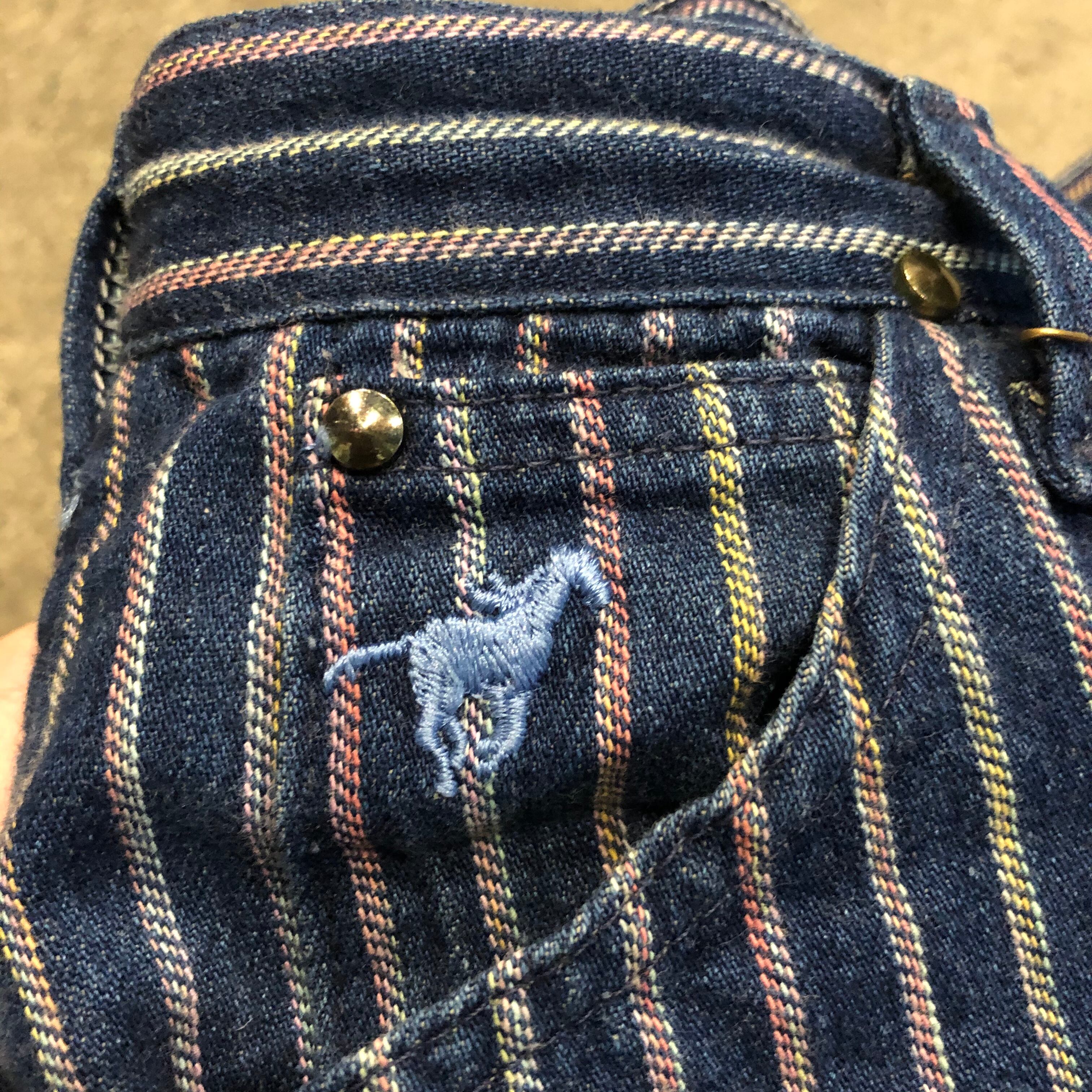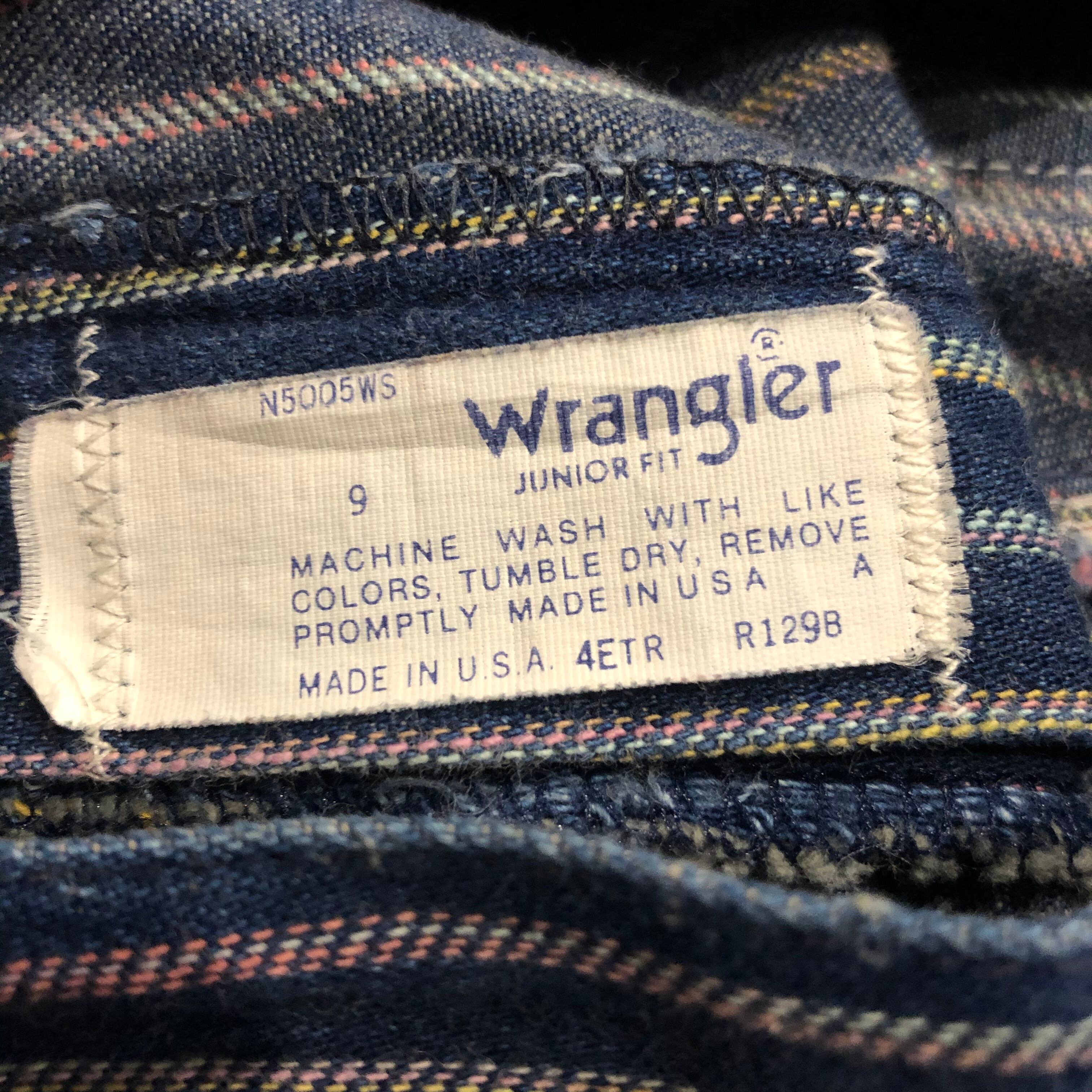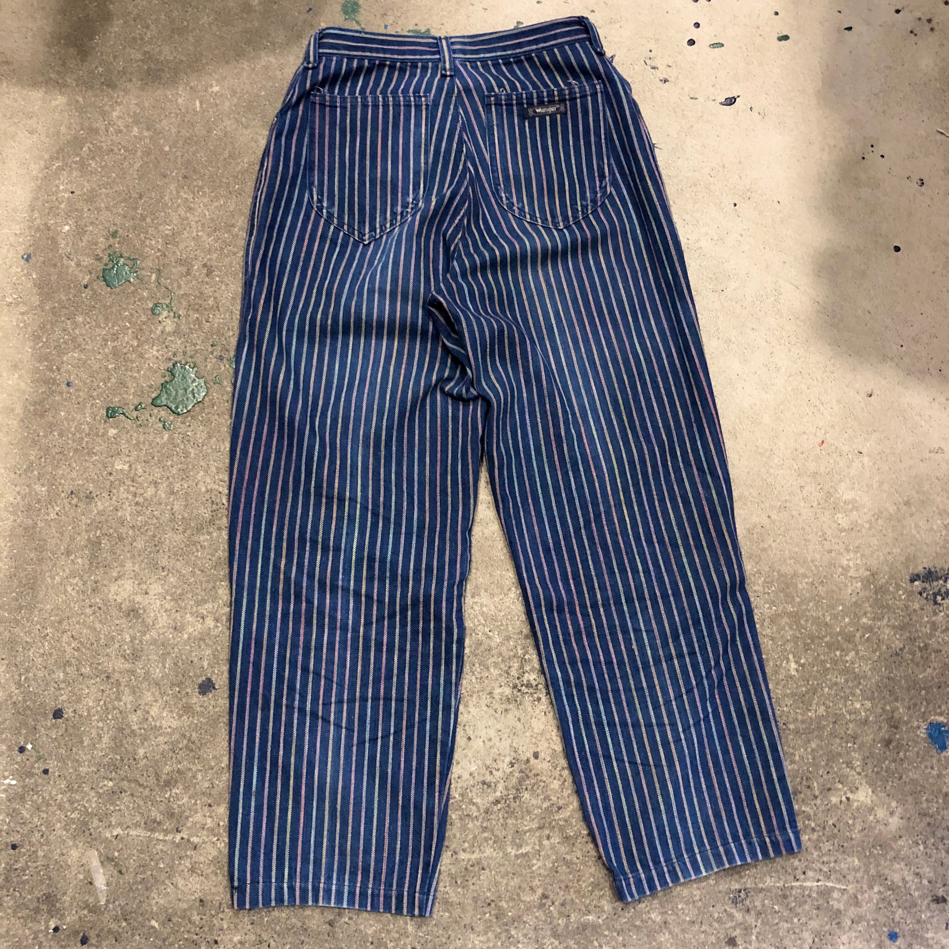 アメリカ製ラングラーのジュニアサイズのパンツです。絶妙な色合いのストライプのラインがかわいいです!探すとなかなかない雰囲気だと思います。