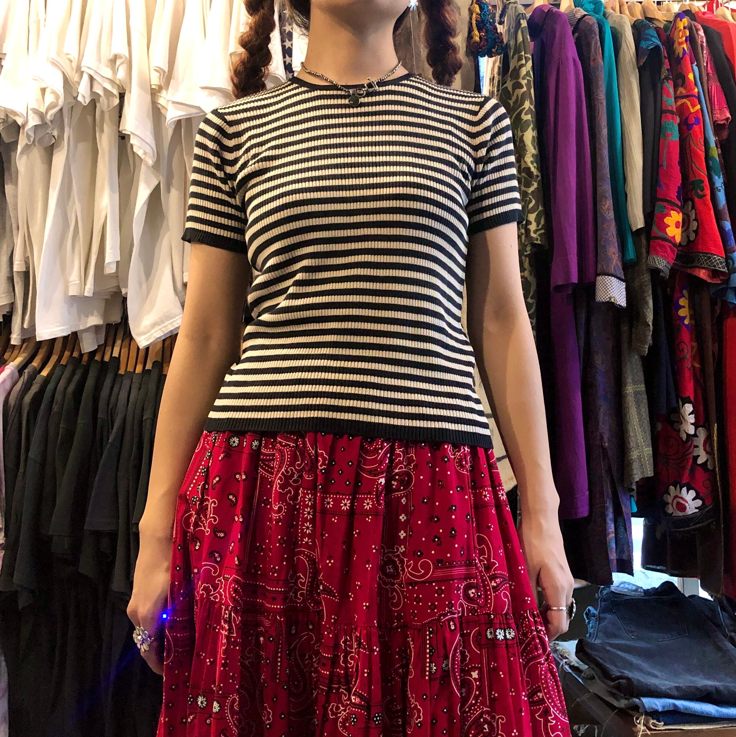 シルクの糸で編まれており、コットンニットより柔らかい肌触りです。コンパクトなサイズ感がインナーとしてもかなり使えそうです!