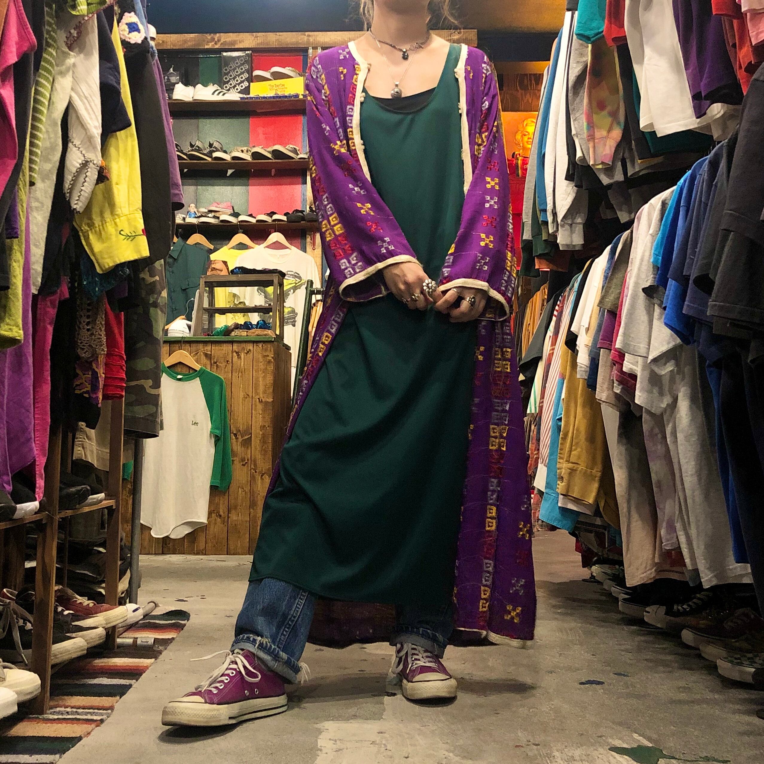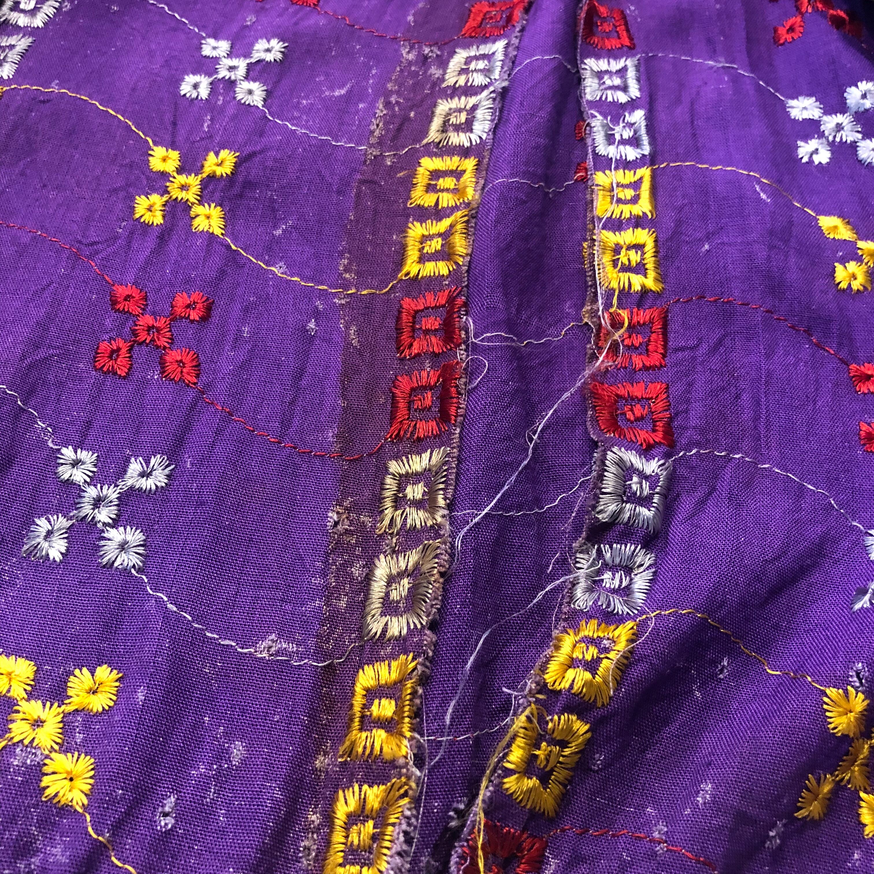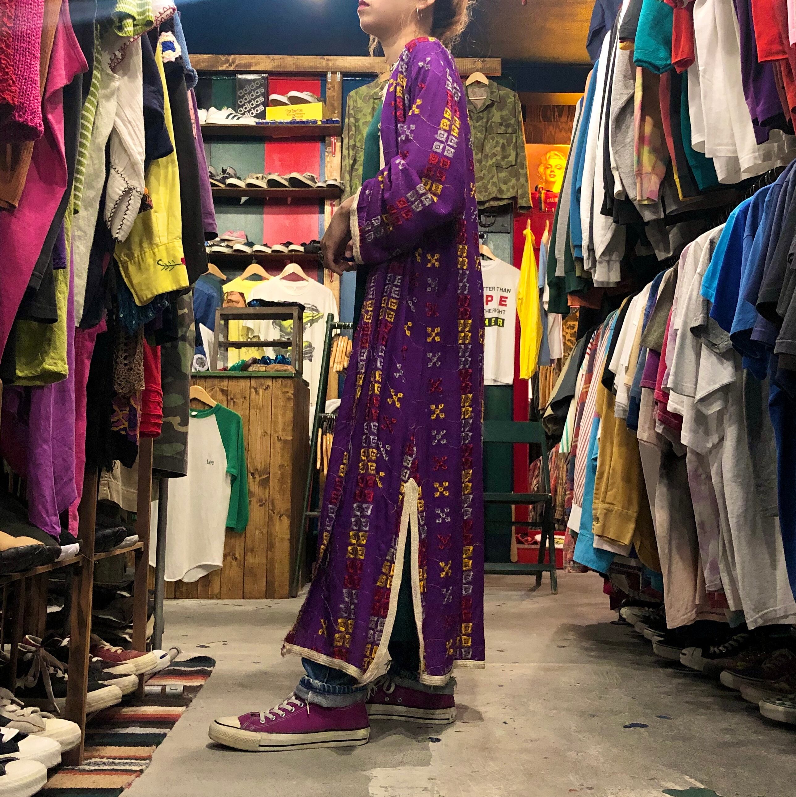 鮮やかな紫にアジアな雰囲気の刺繍、チャイナボタンがかわいいです。さらさらな肌触りなので涼しく、本格的に暑くなっても着られそうな感じです。Tシャツデニムに合わせてカジュアルに着るのも可愛いと思います!