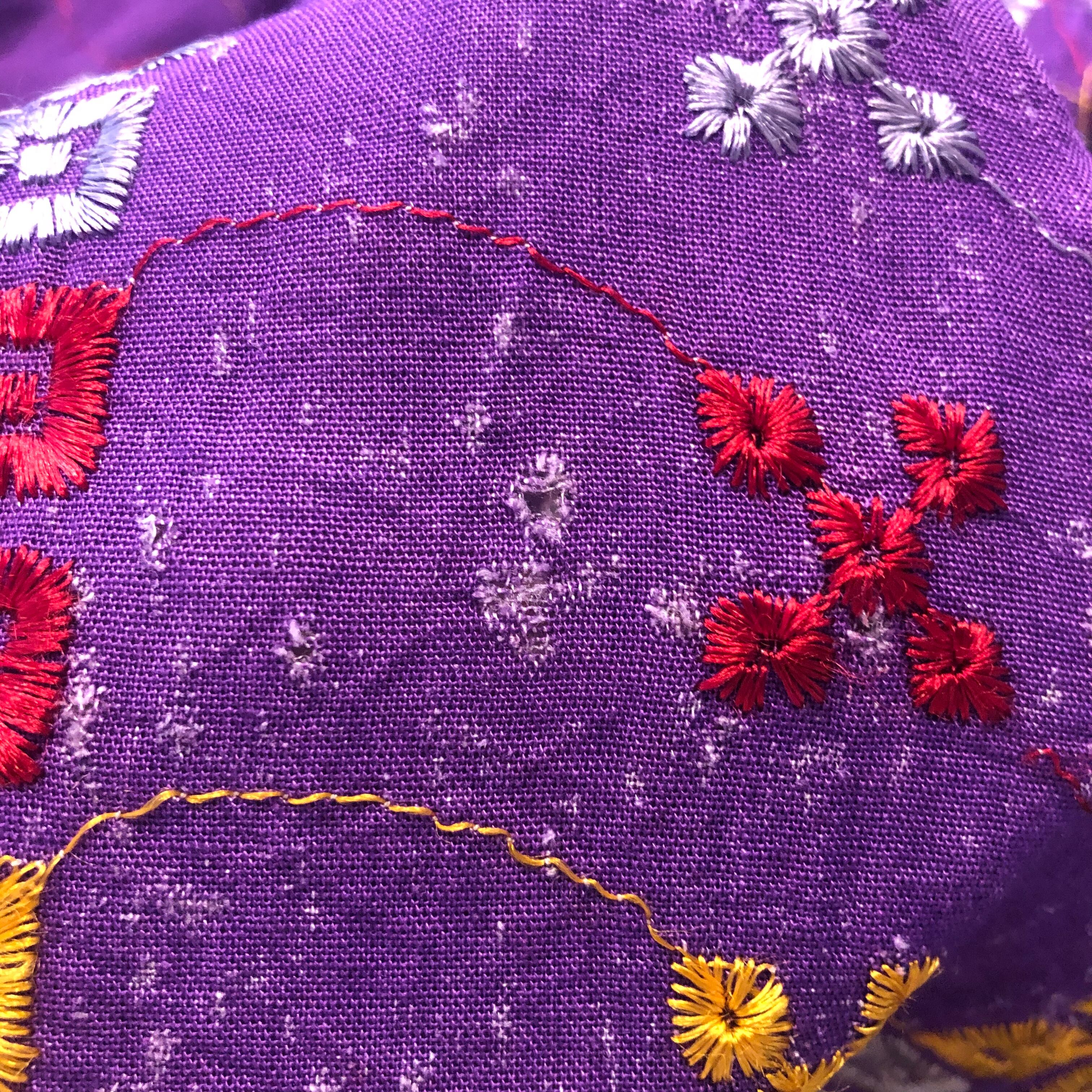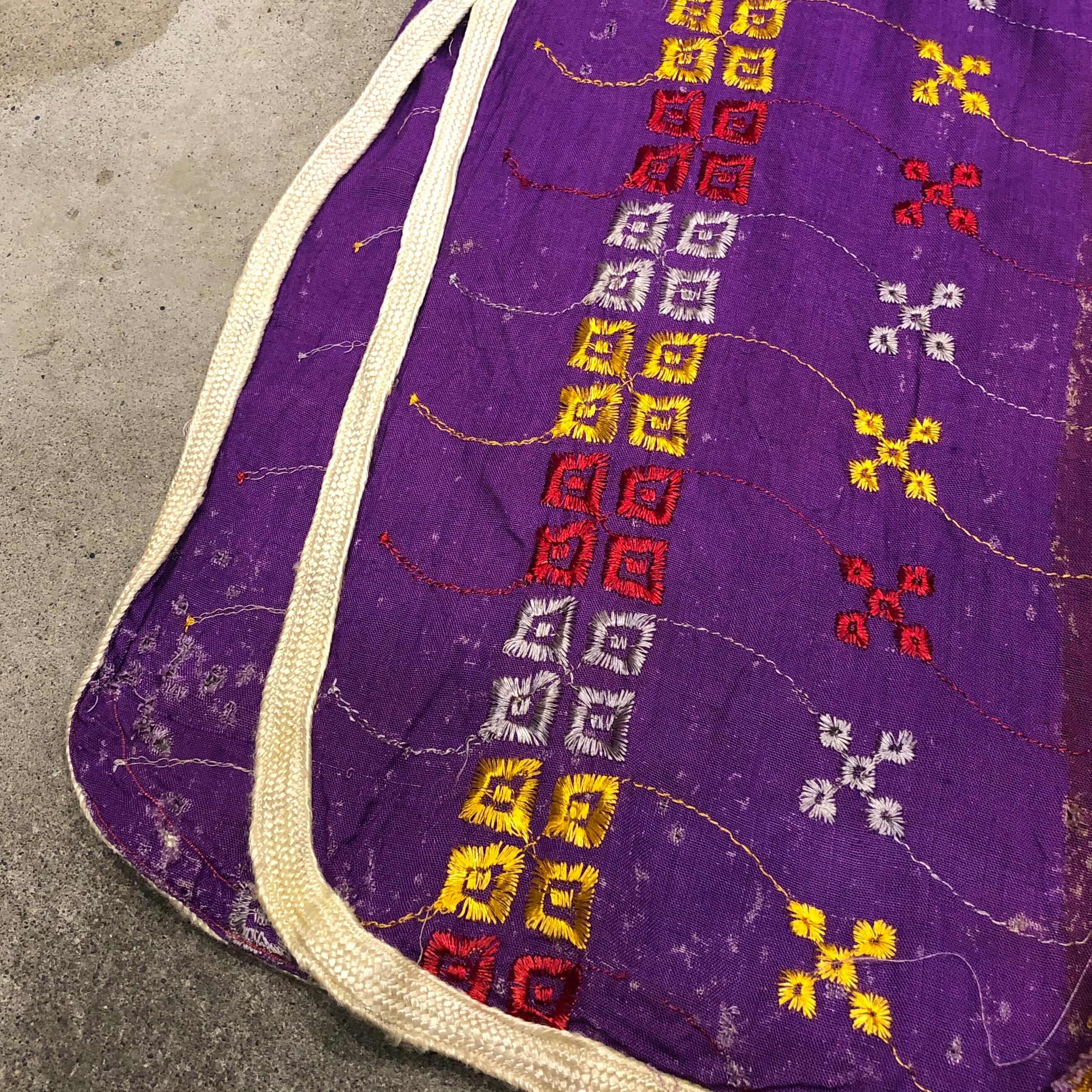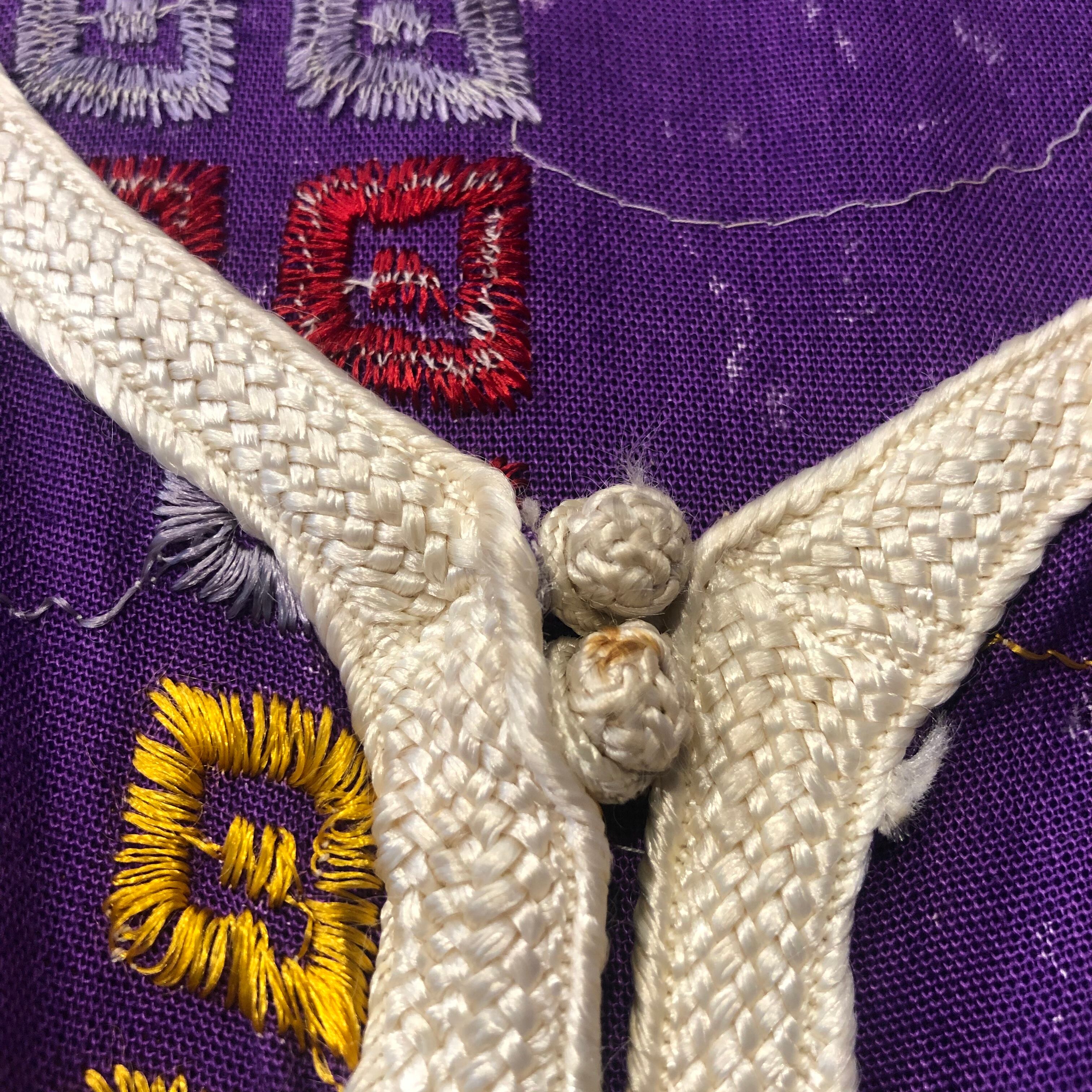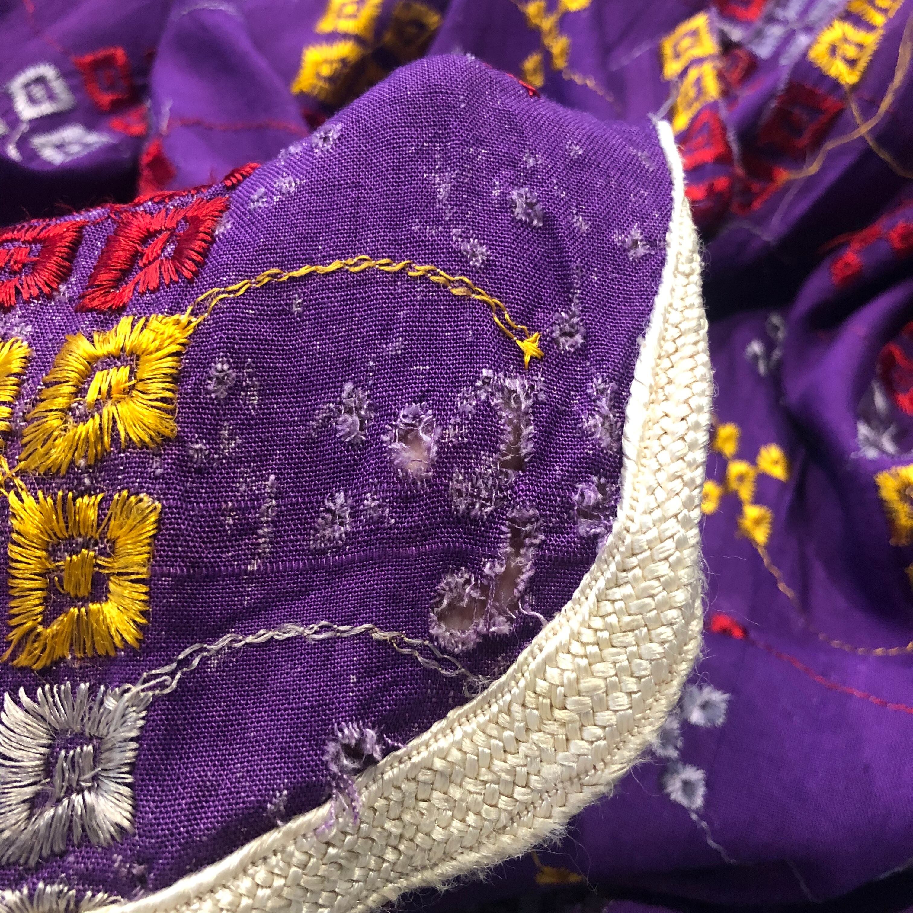 鮮やかな紫にアジアな雰囲気の刺繍、チャイナボタンがかわいいです。さらさらな肌触りなので涼しく、本格的に暑くなっても着られそうな感じです。Tシャツデニムに合わせてカジュアルに着るのも可愛いと思います!