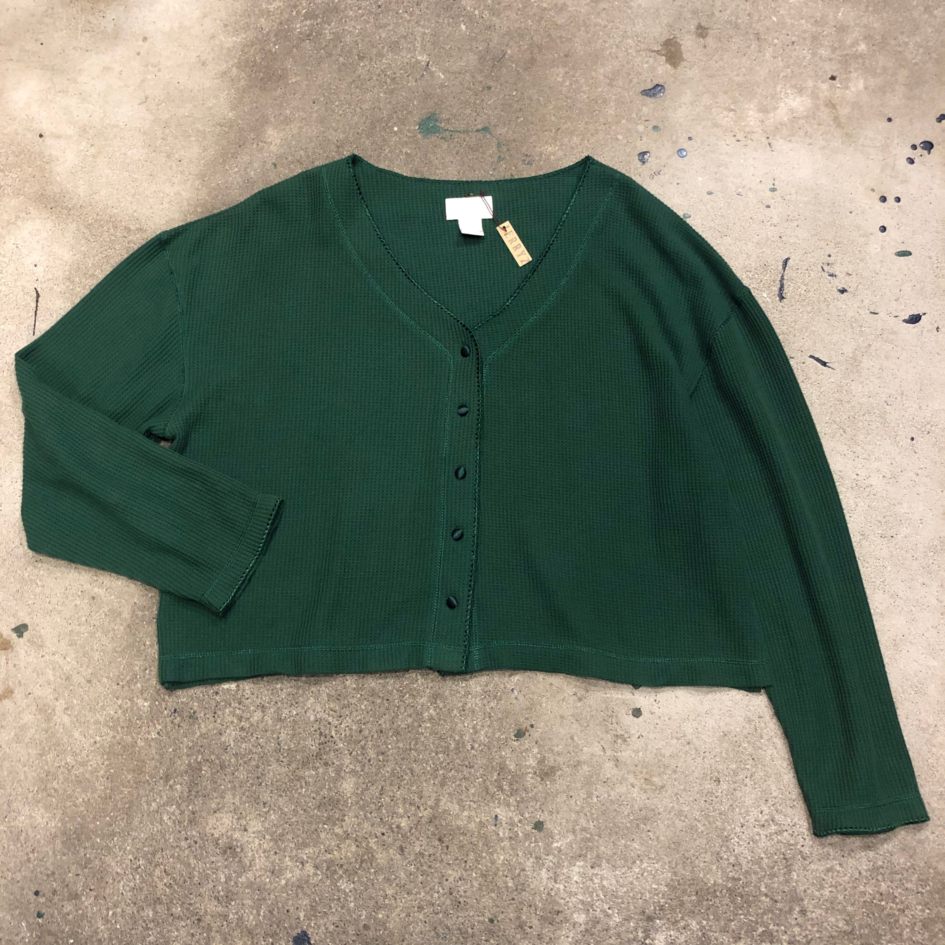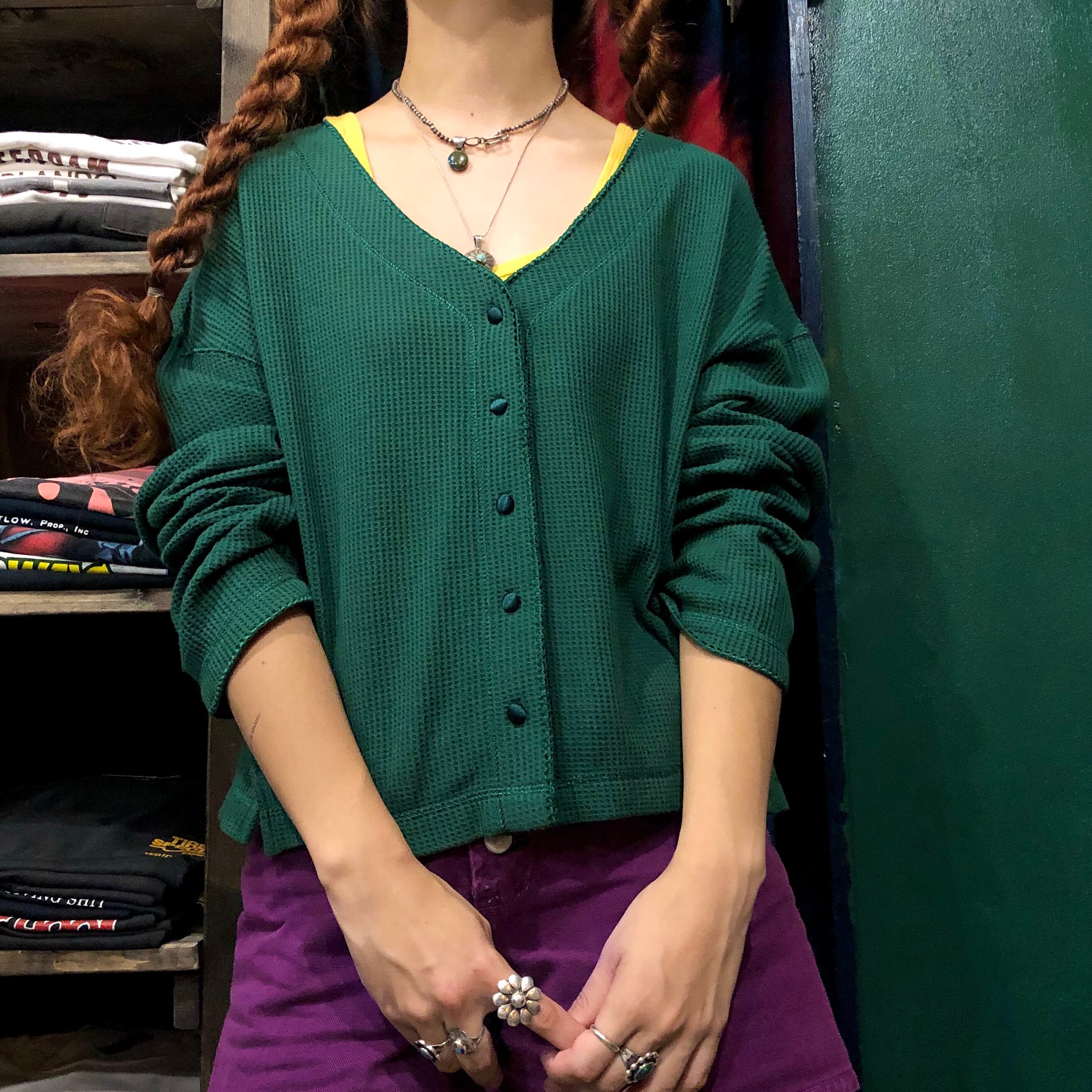 良い緑色のサーマル素材で珍しいカーディガンタイプです。
