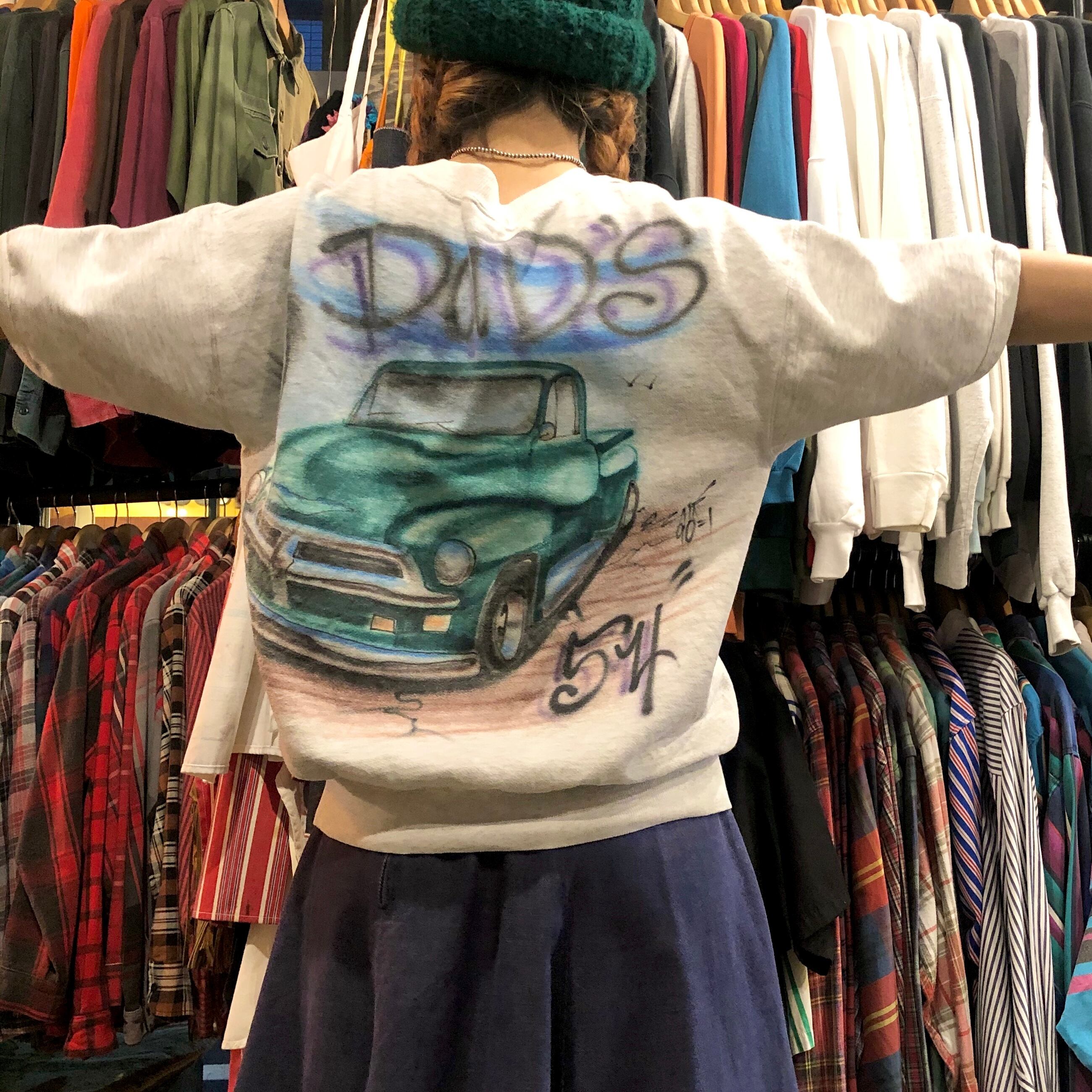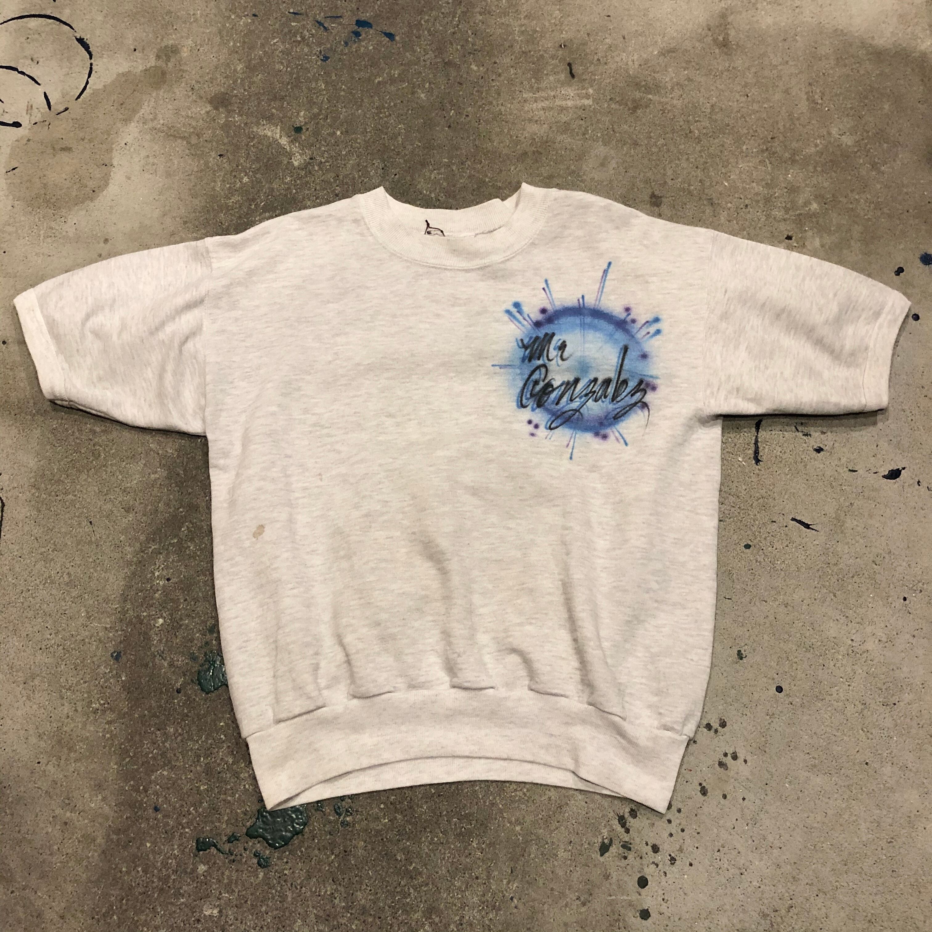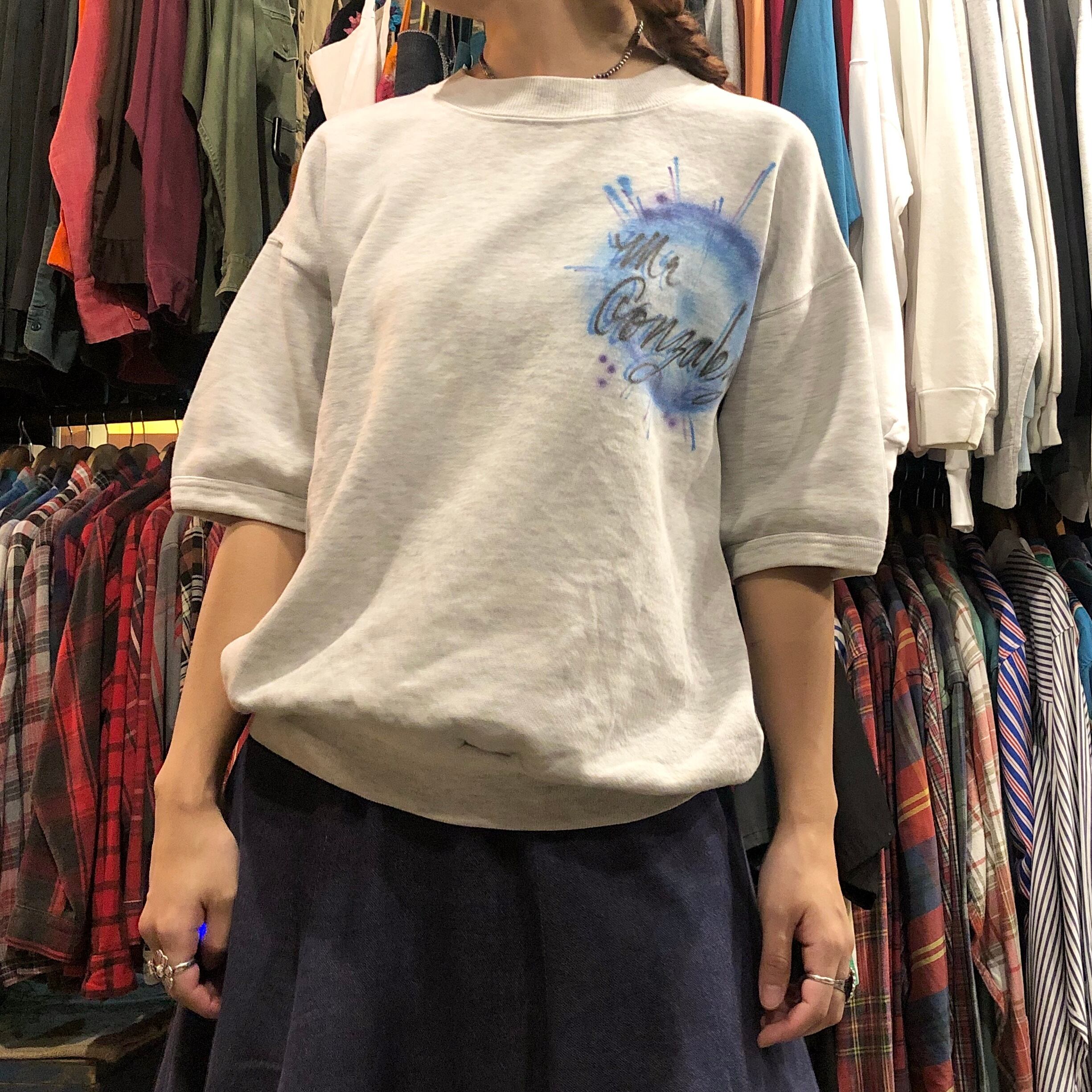 明るいグレーの半袖スウェットです。スプレーアートのような雰囲気のイラストが良い感じです。