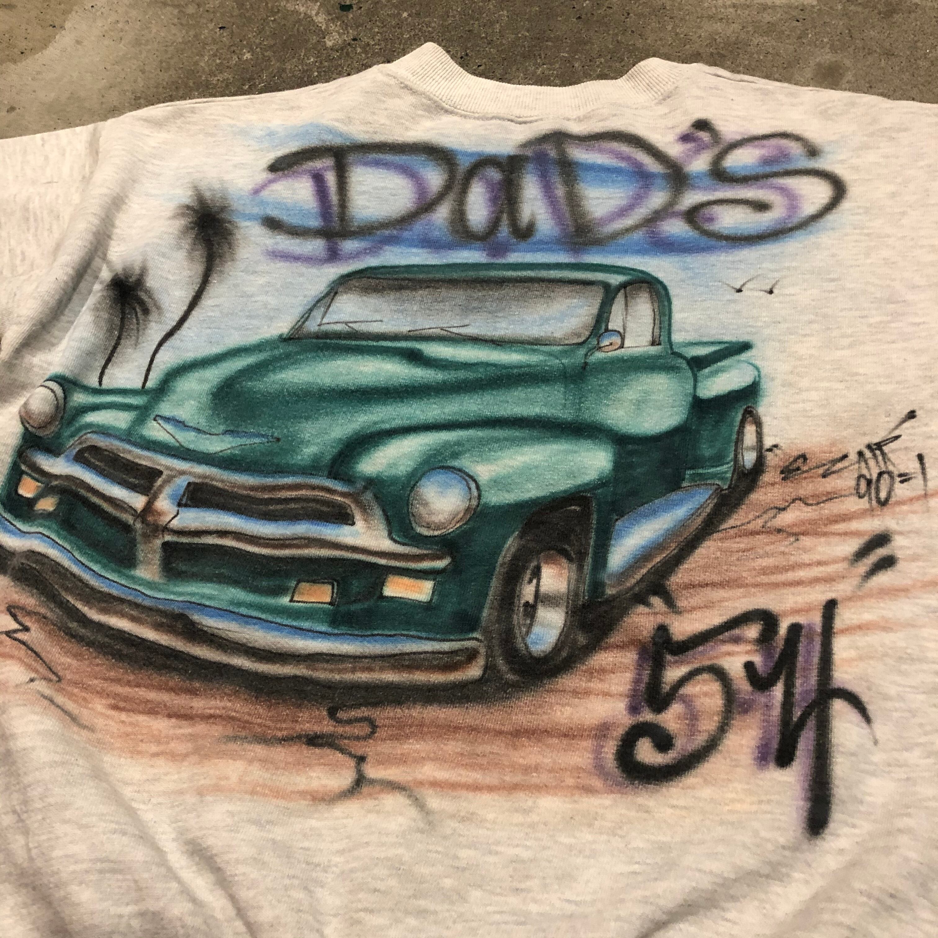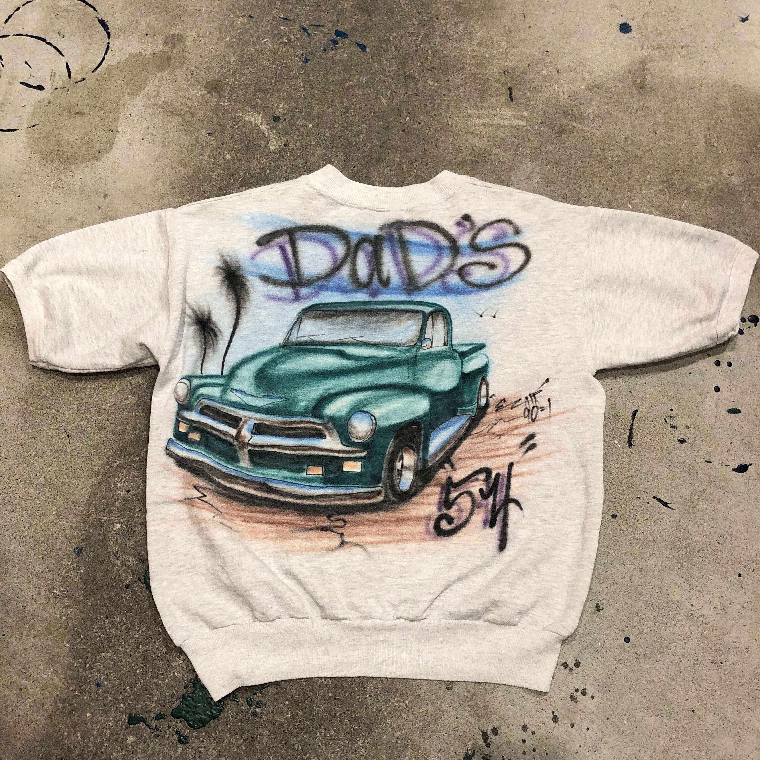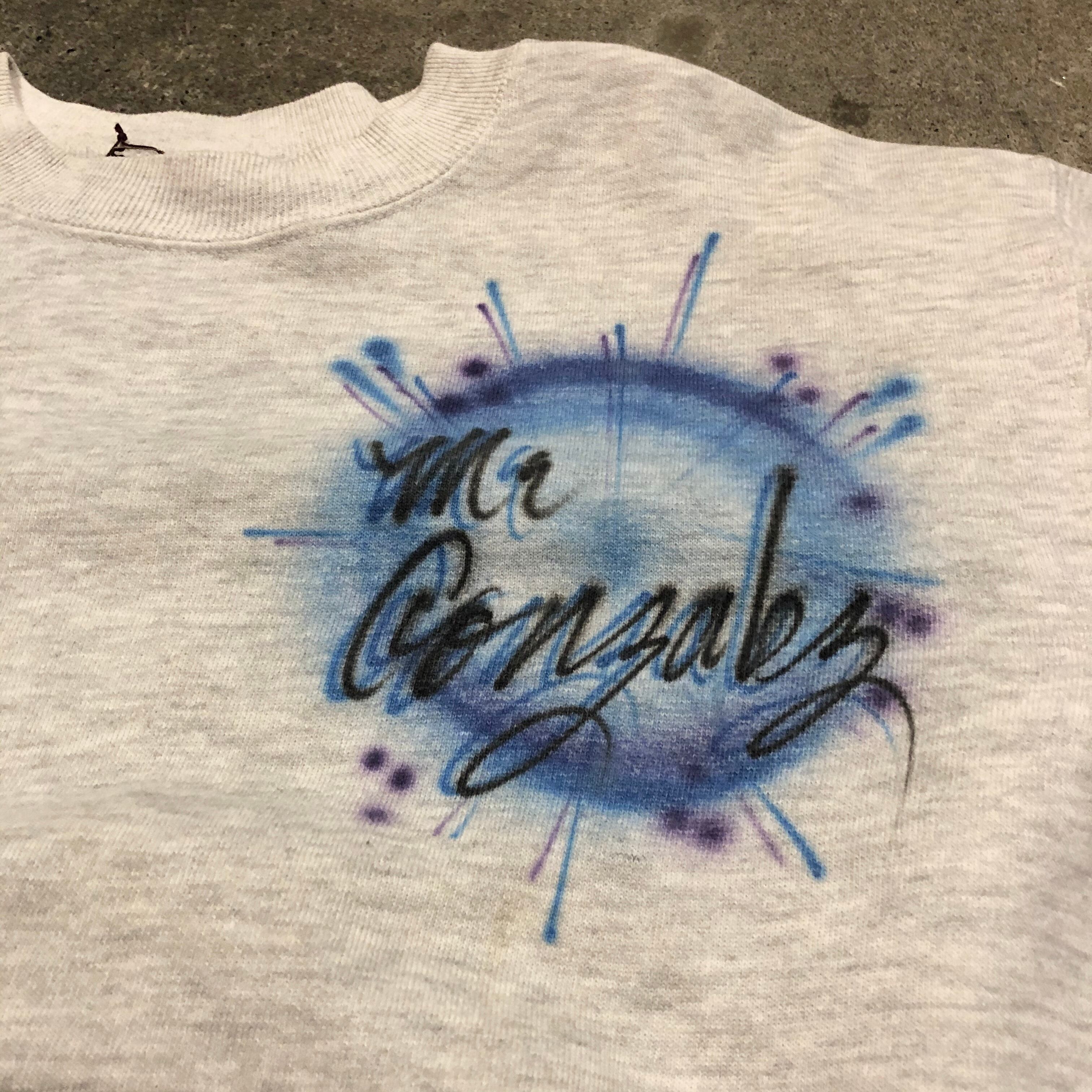 明るいグレーの半袖スウェットです。スプレーアートのような雰囲気のイラストが良い感じです。
