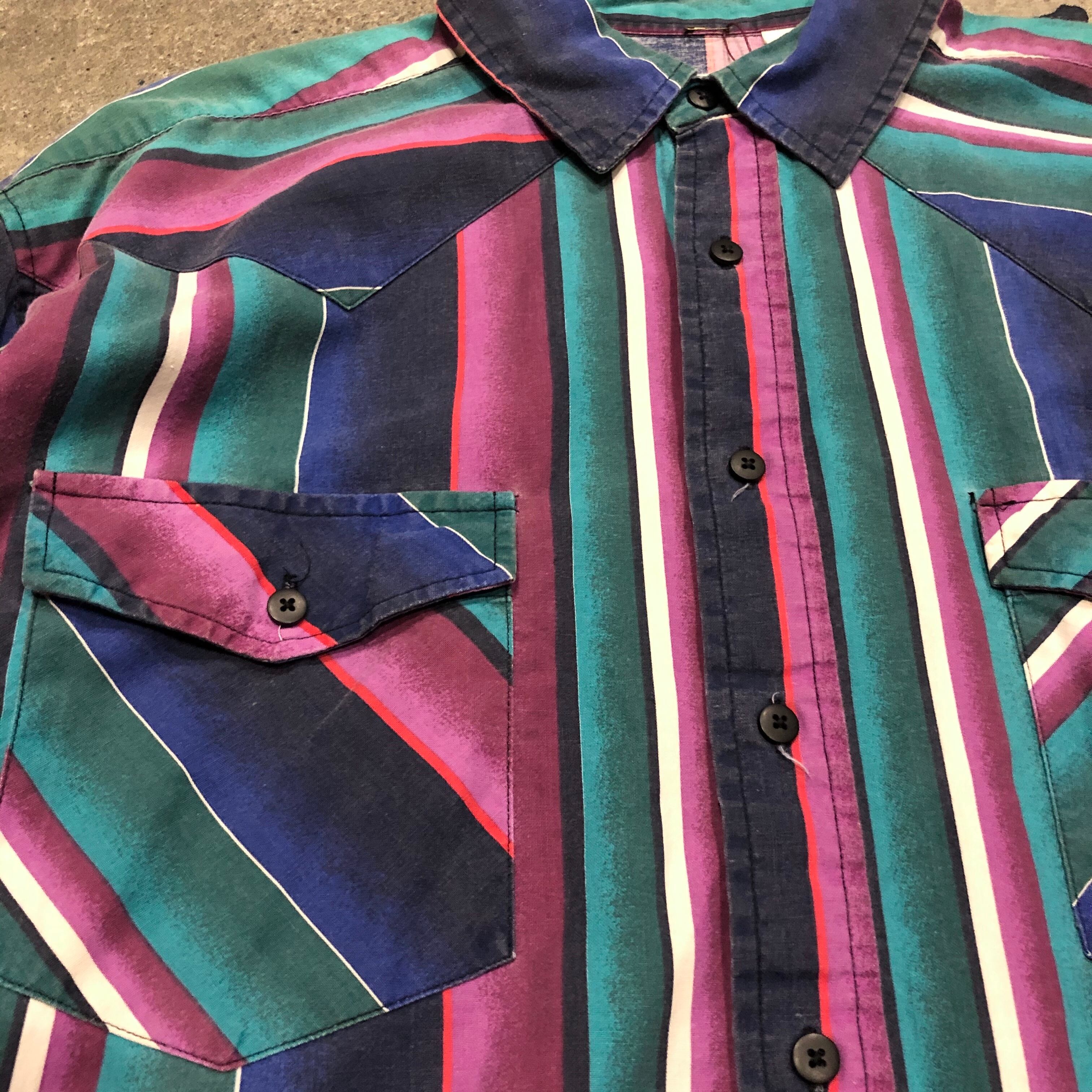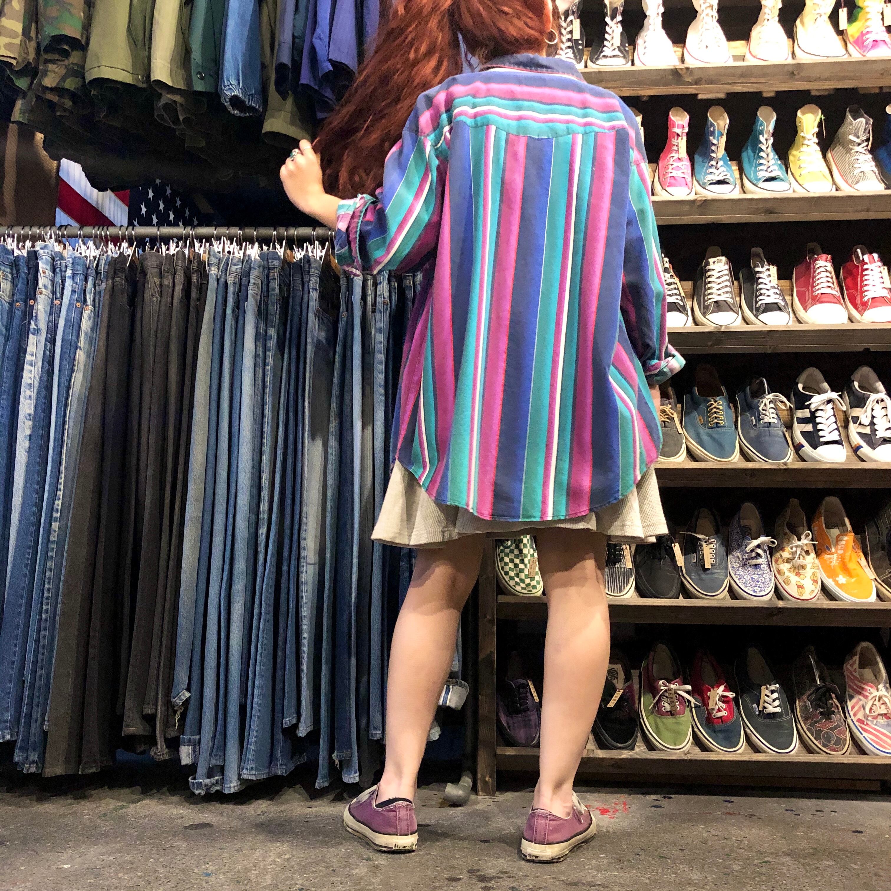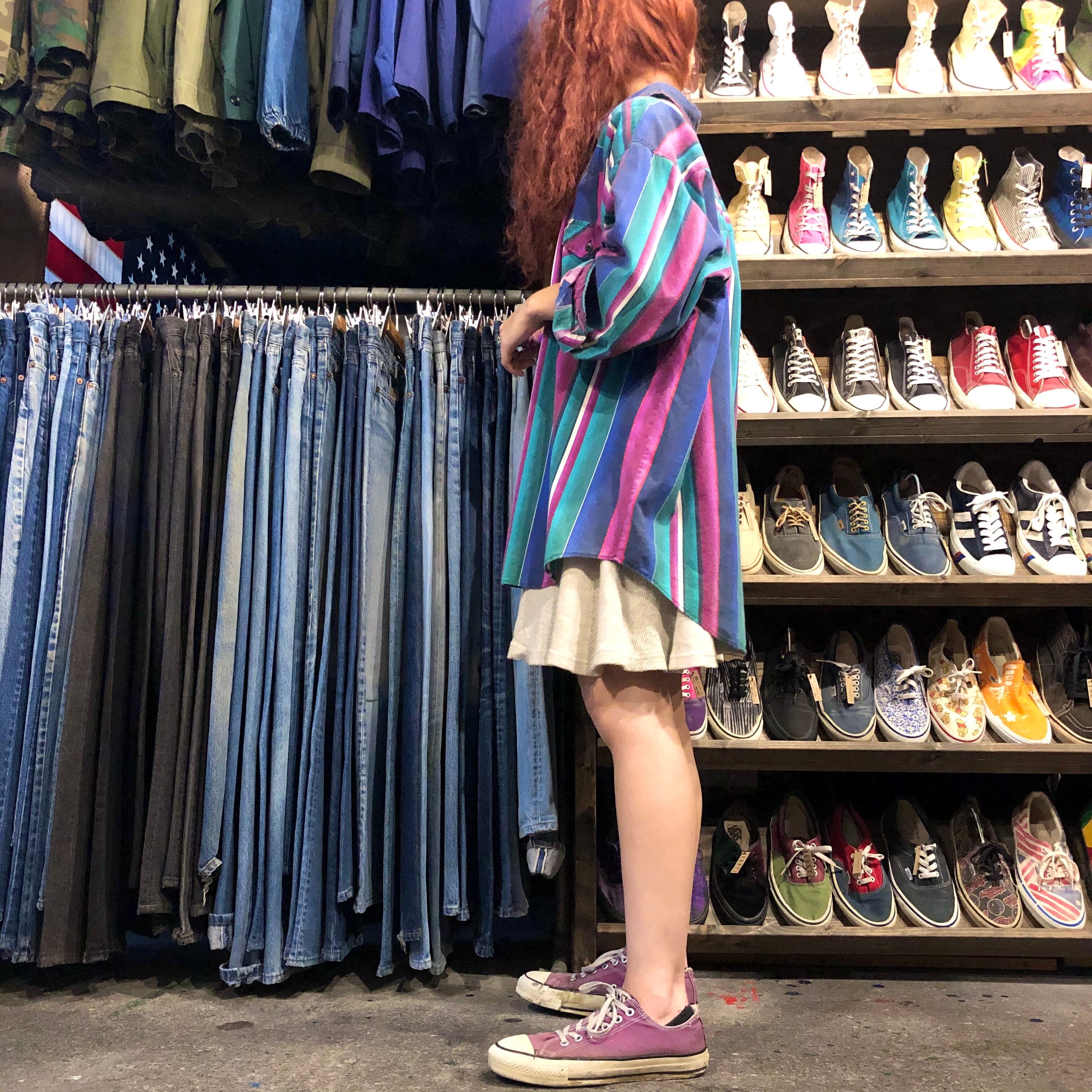 かっこいい色の組み合わせが目を惹くシャツです。大きめのメンズサイズなので、ゆったり袖まくりして羽織ったりするのにおすすめです。長袖のシャツは一年中使えるアイテムなのでこの時期はインナーを薄手にして日焼け防止や冷房対策に使えます!
