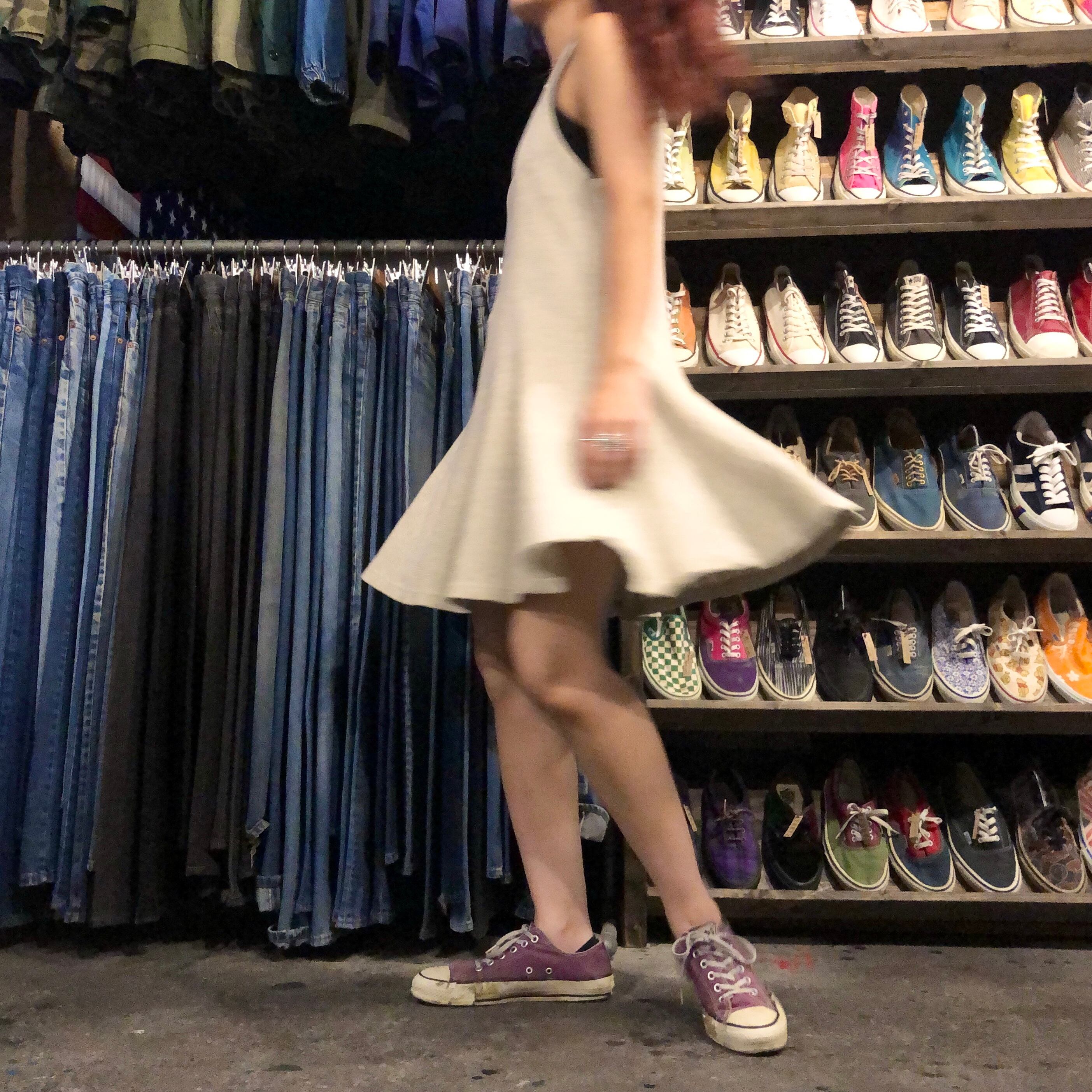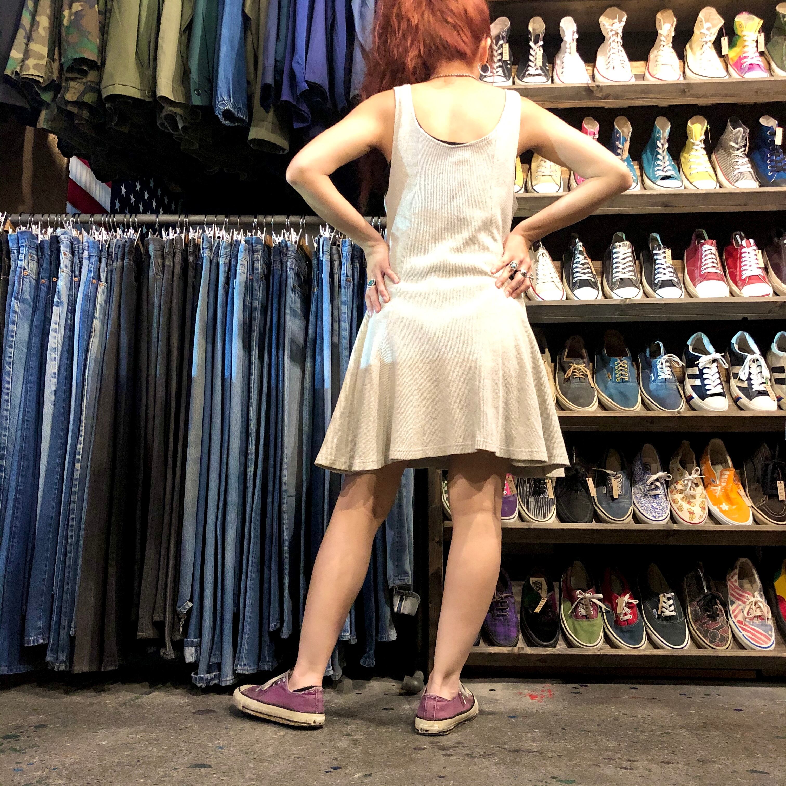 厚手のサーマル素材が気持ち良いワンピースです。形がきれいなAラインで適当に着られる感じがかわいいです。海やプールに良いですね!