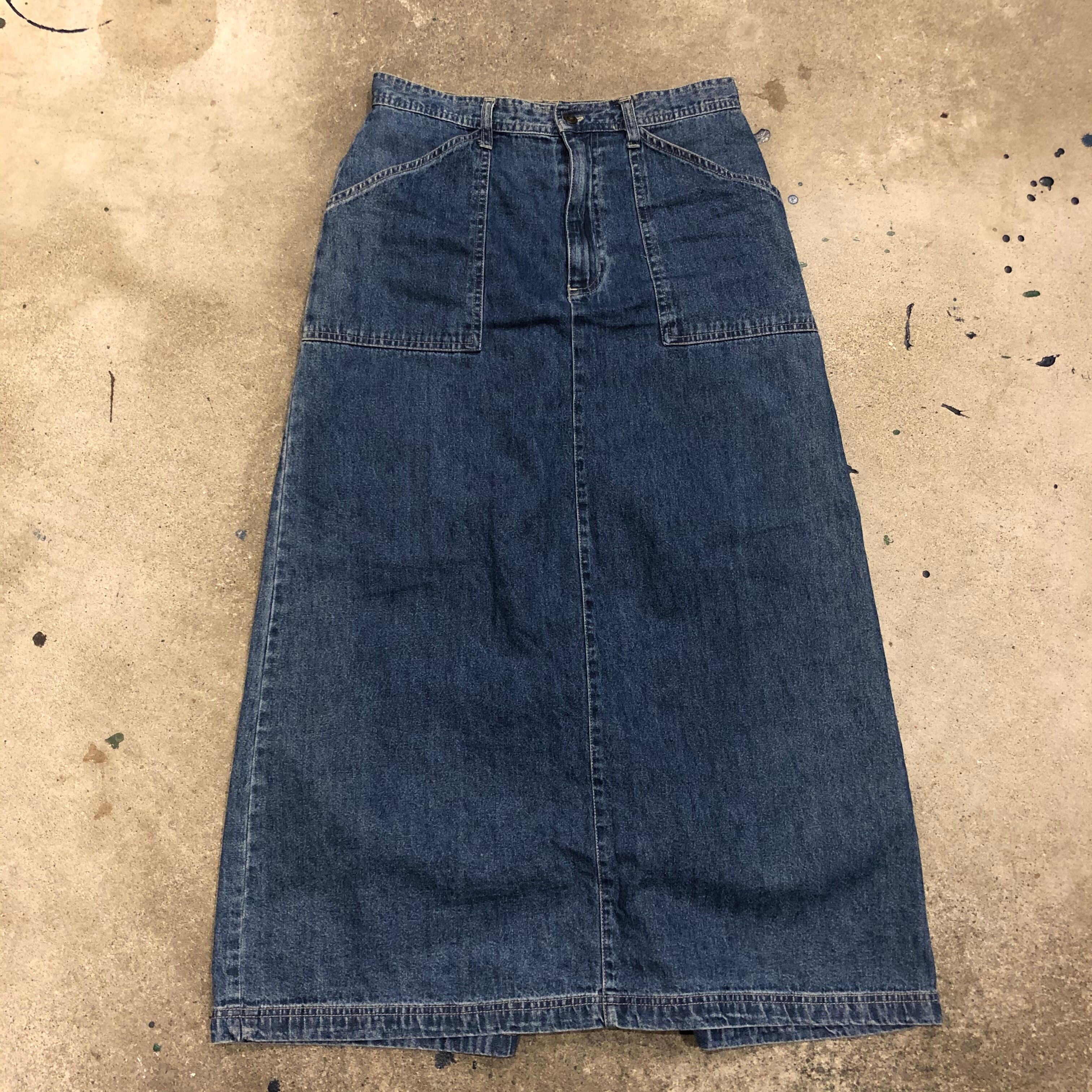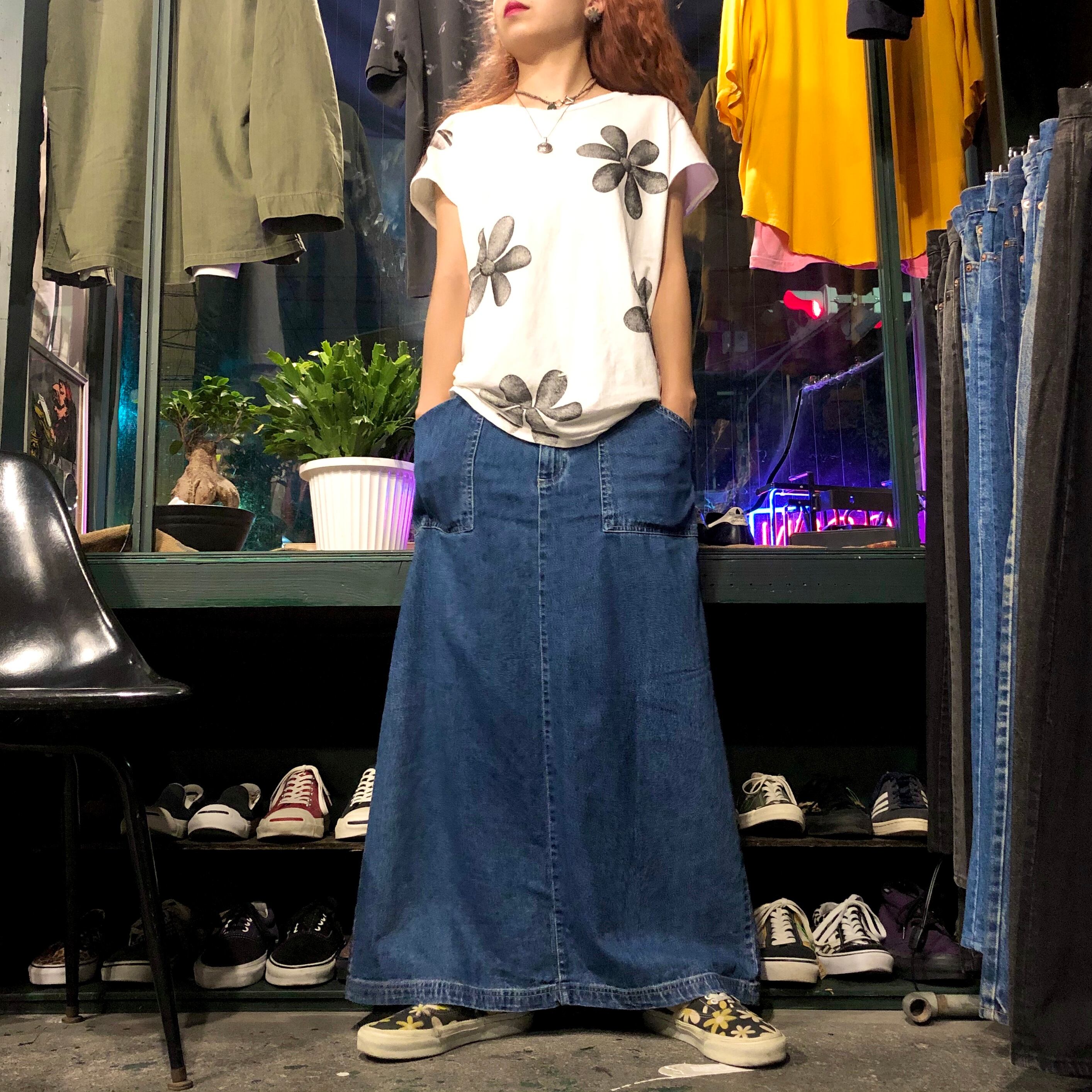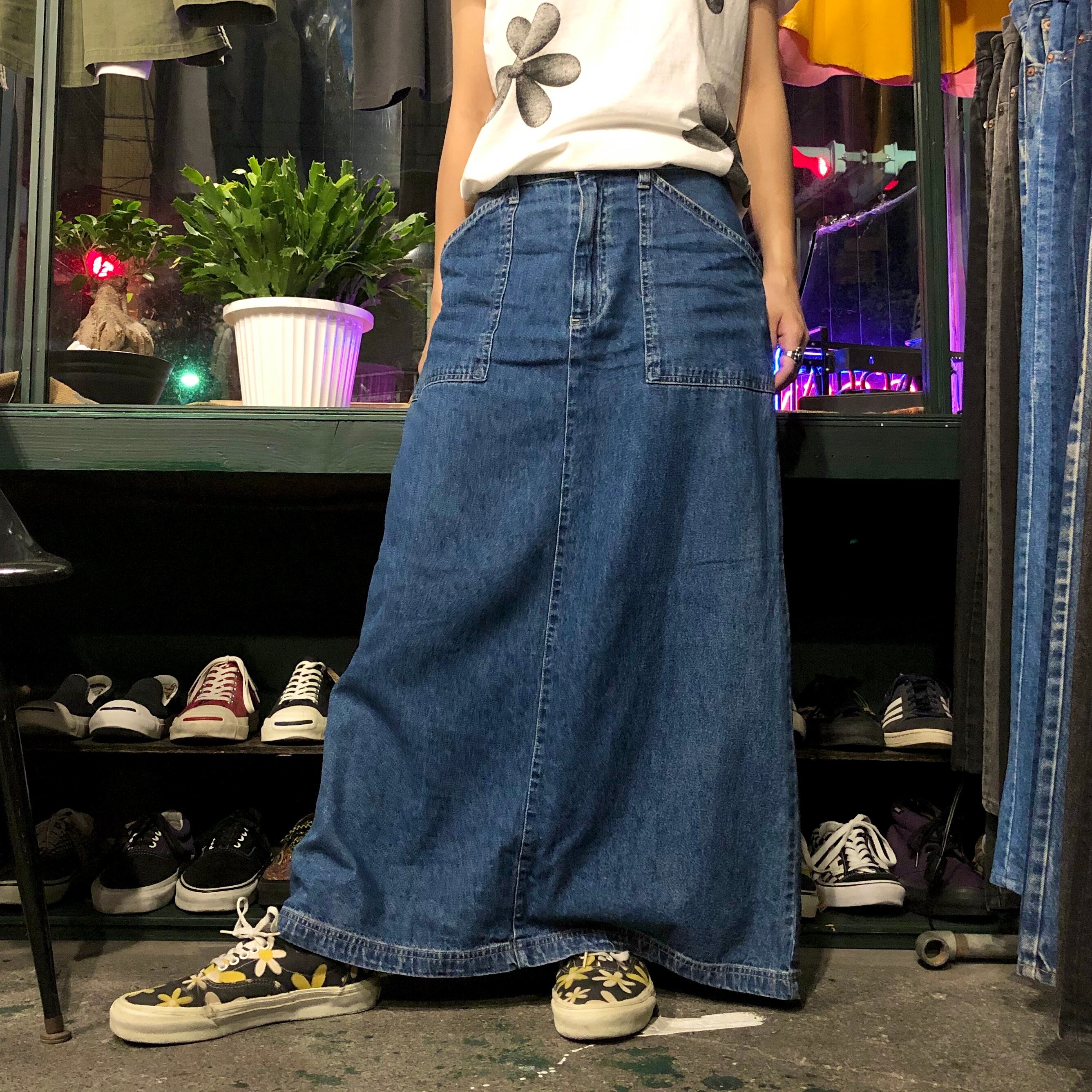 マキシ丈で広がらないデザインが大人っぽいデニムスカートです。一年中着られますしトップスを選ばず何にでも合わせやすく、あると便利なアイテムです。