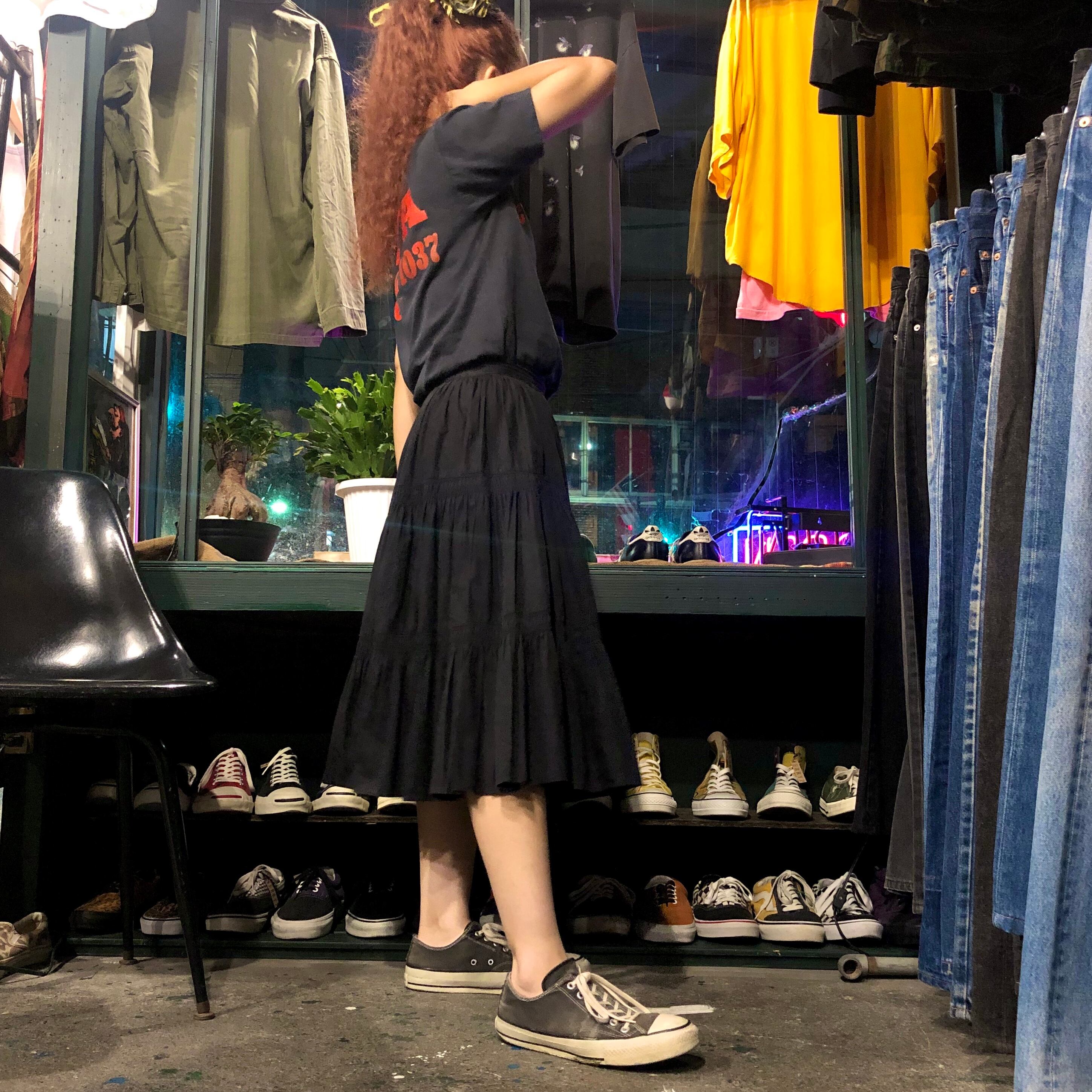 黒ボディにオレンジ味のある赤のプリントがかっこいいTシャツです。バックプリントが良い感じです!