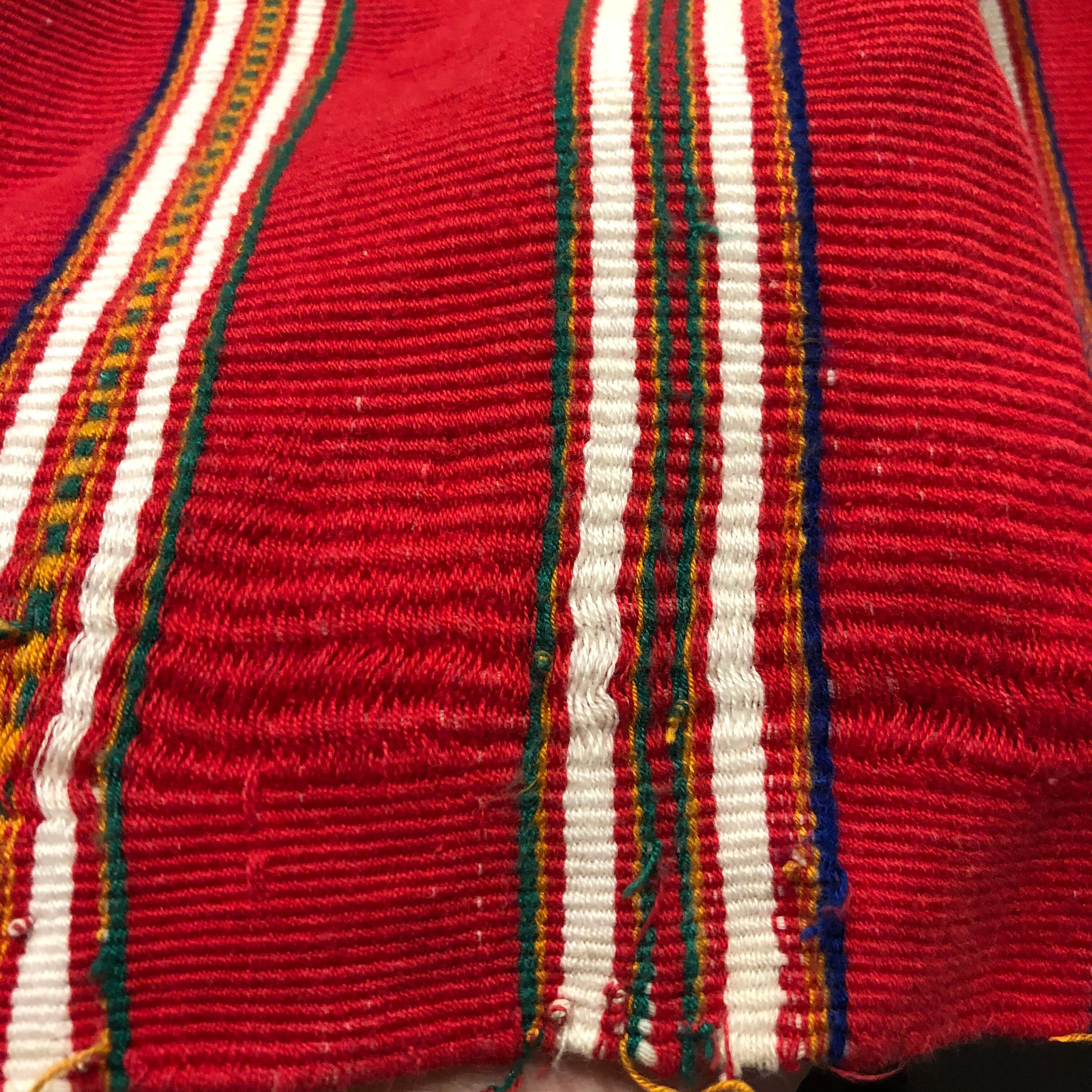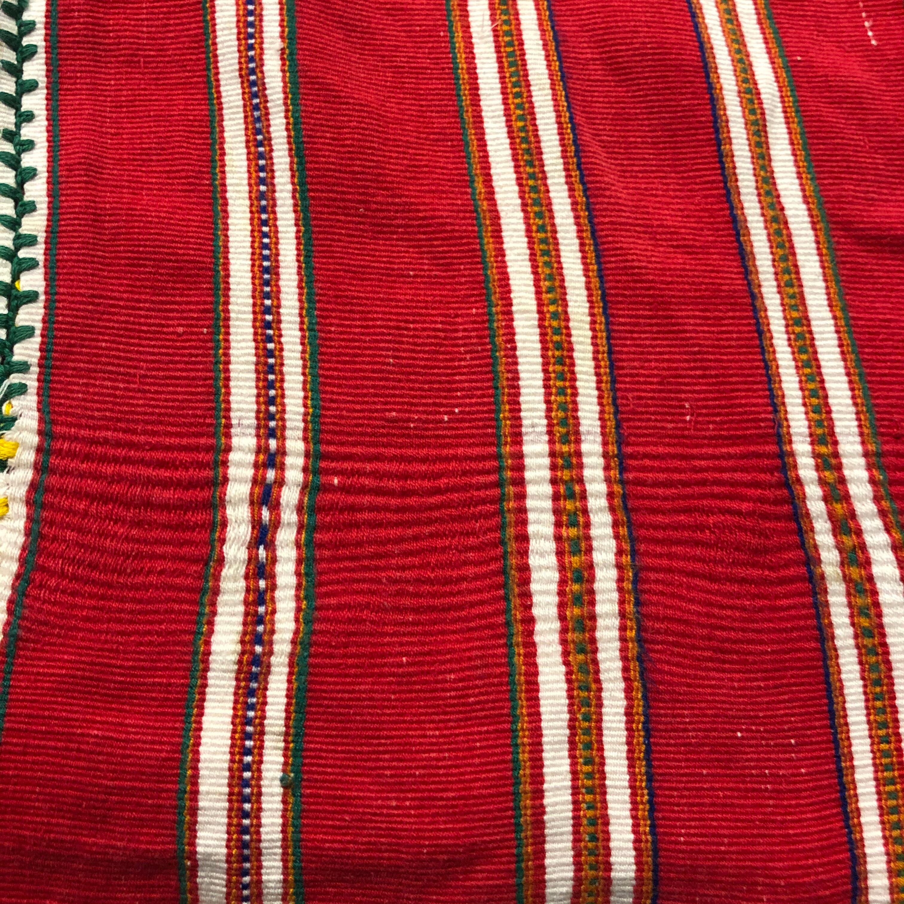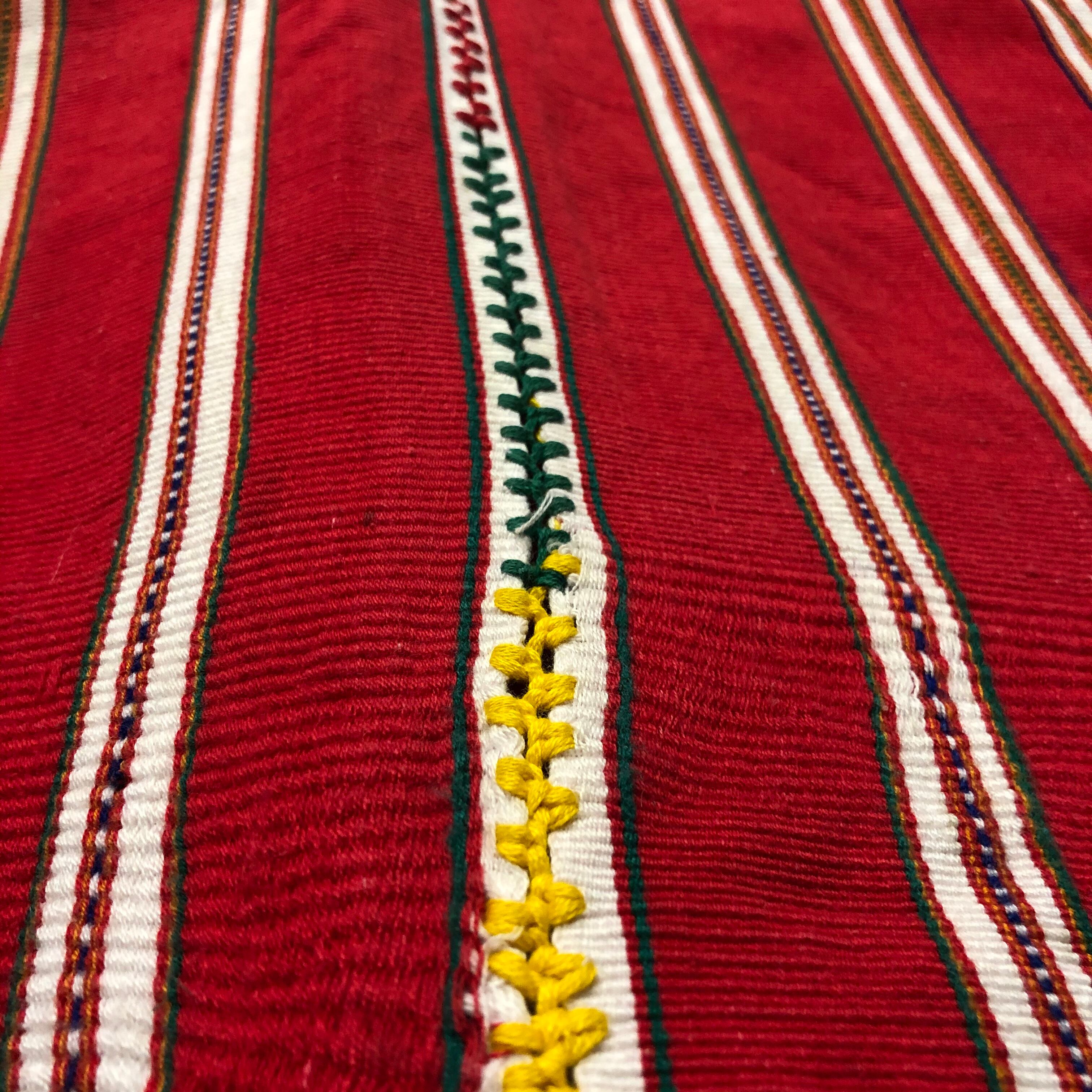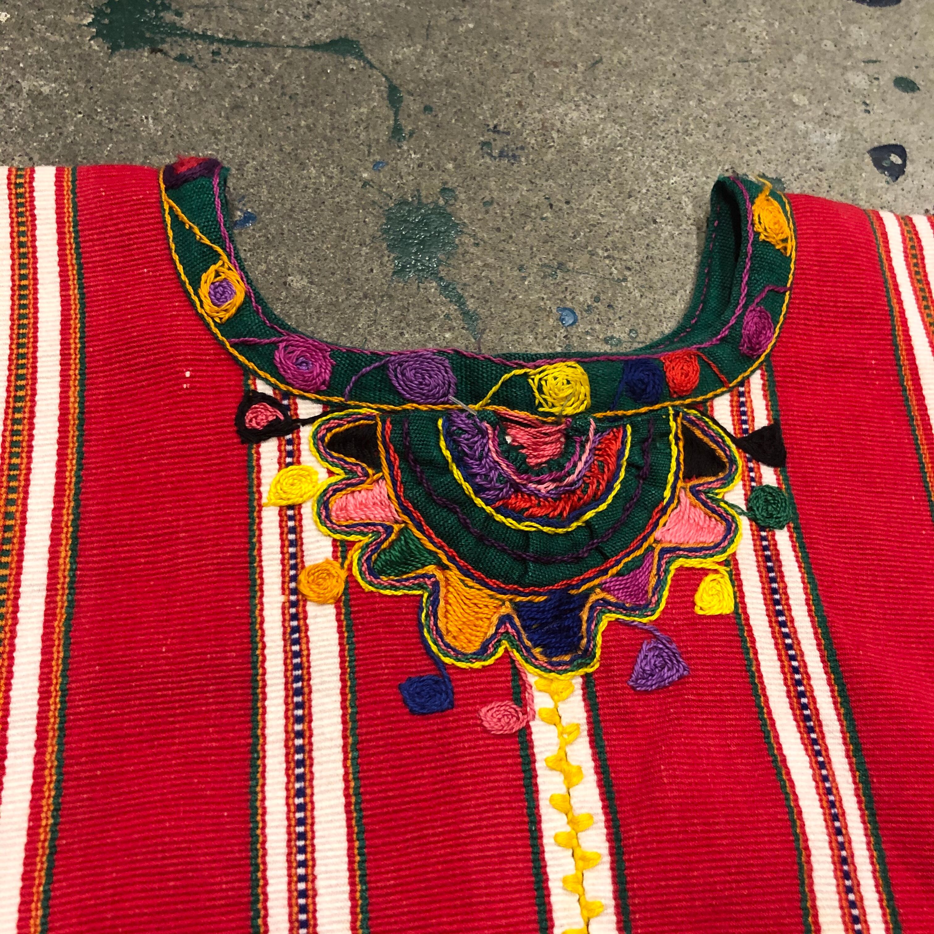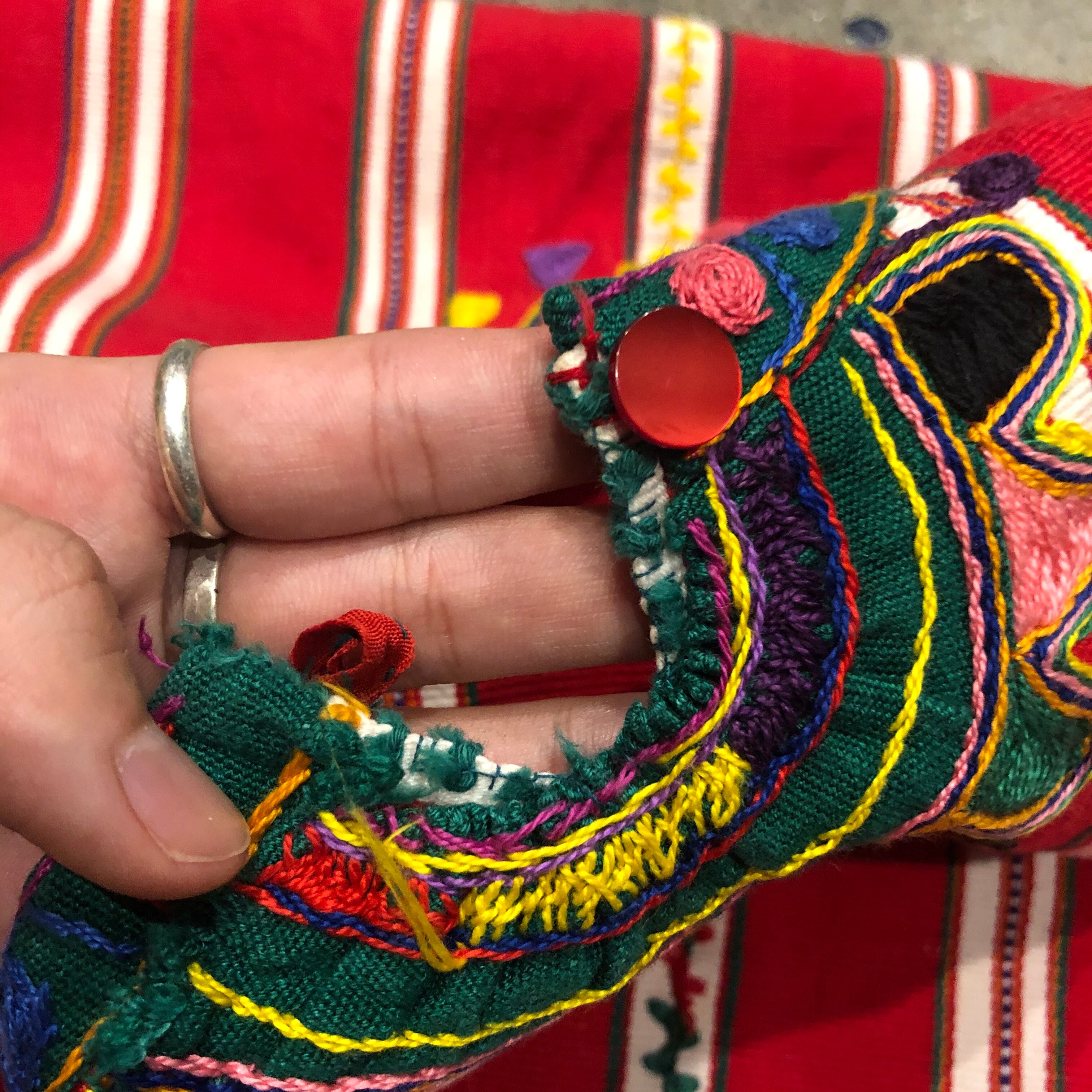 首元の手刺繍がとても素敵な厚手のトップスです。前後ろどちらに着てもほぼ同じで、片側にボタンがあります。すべて手縫いによる仕立てでかなり雰囲気のある一着です。
