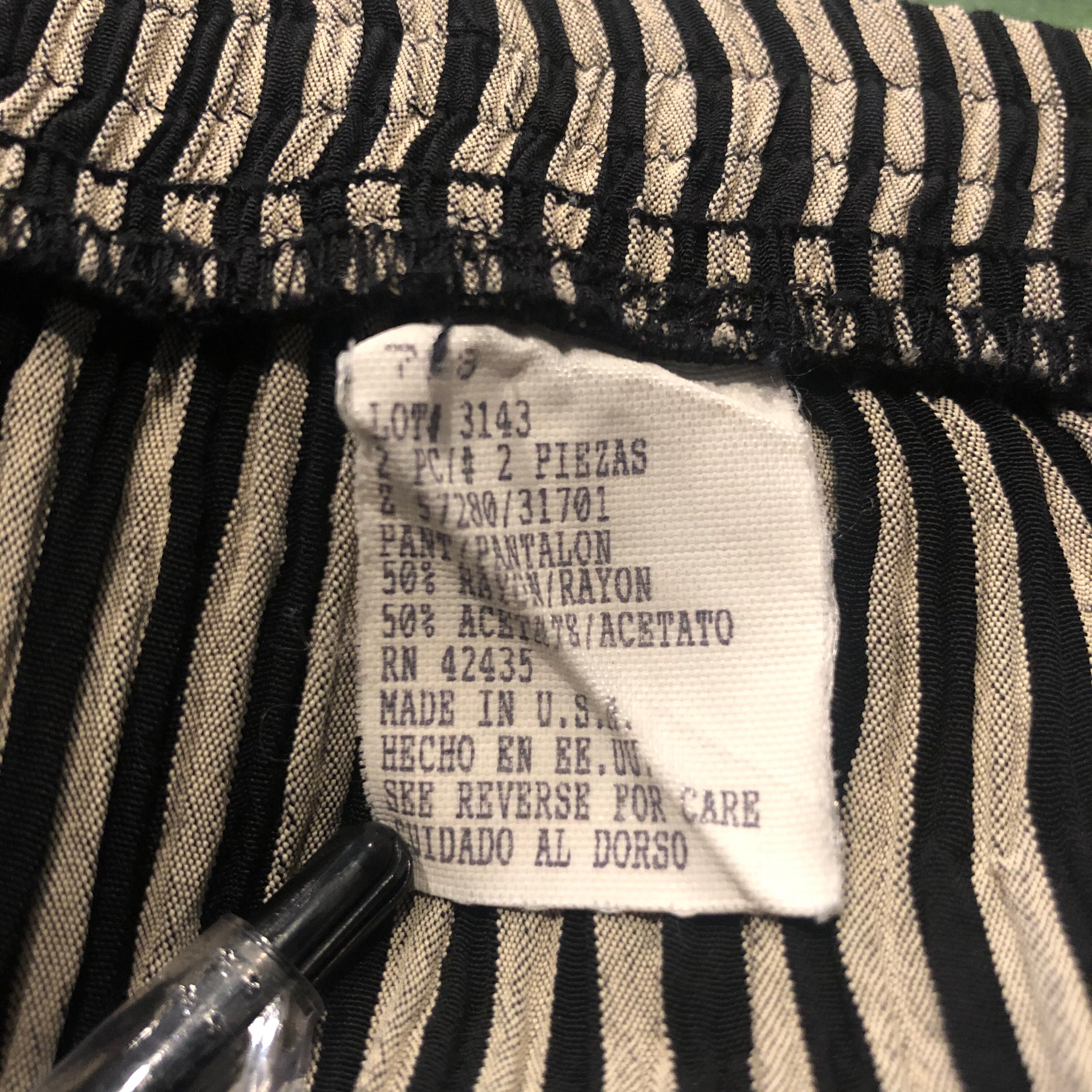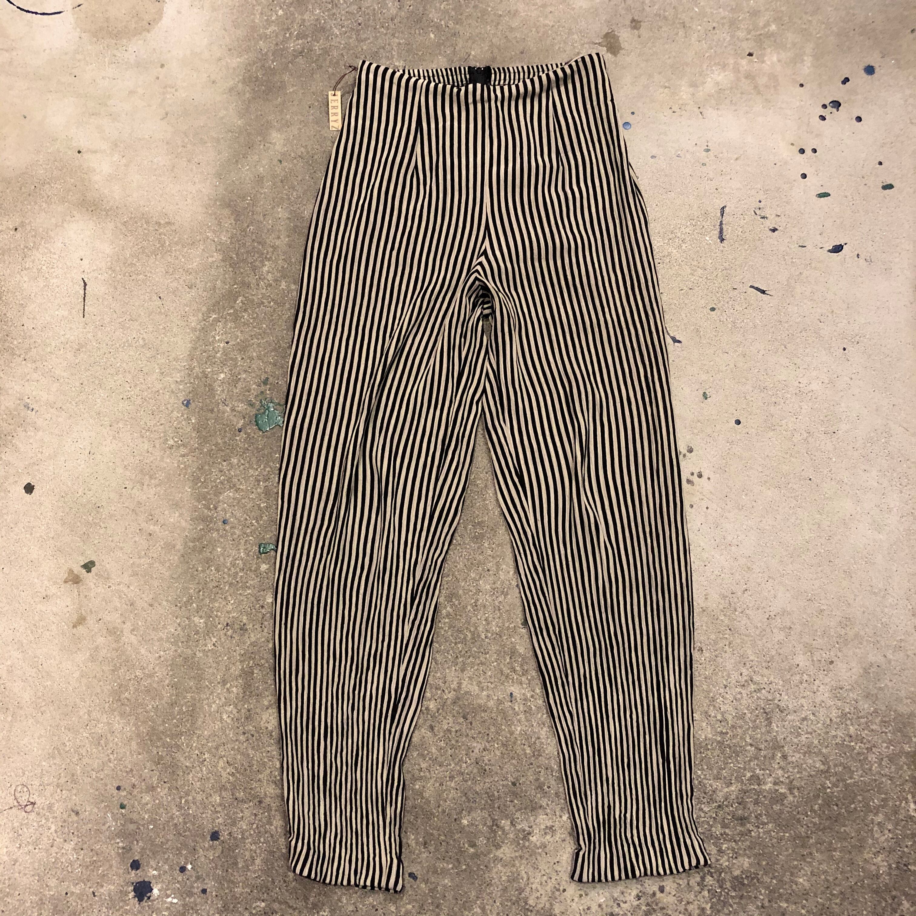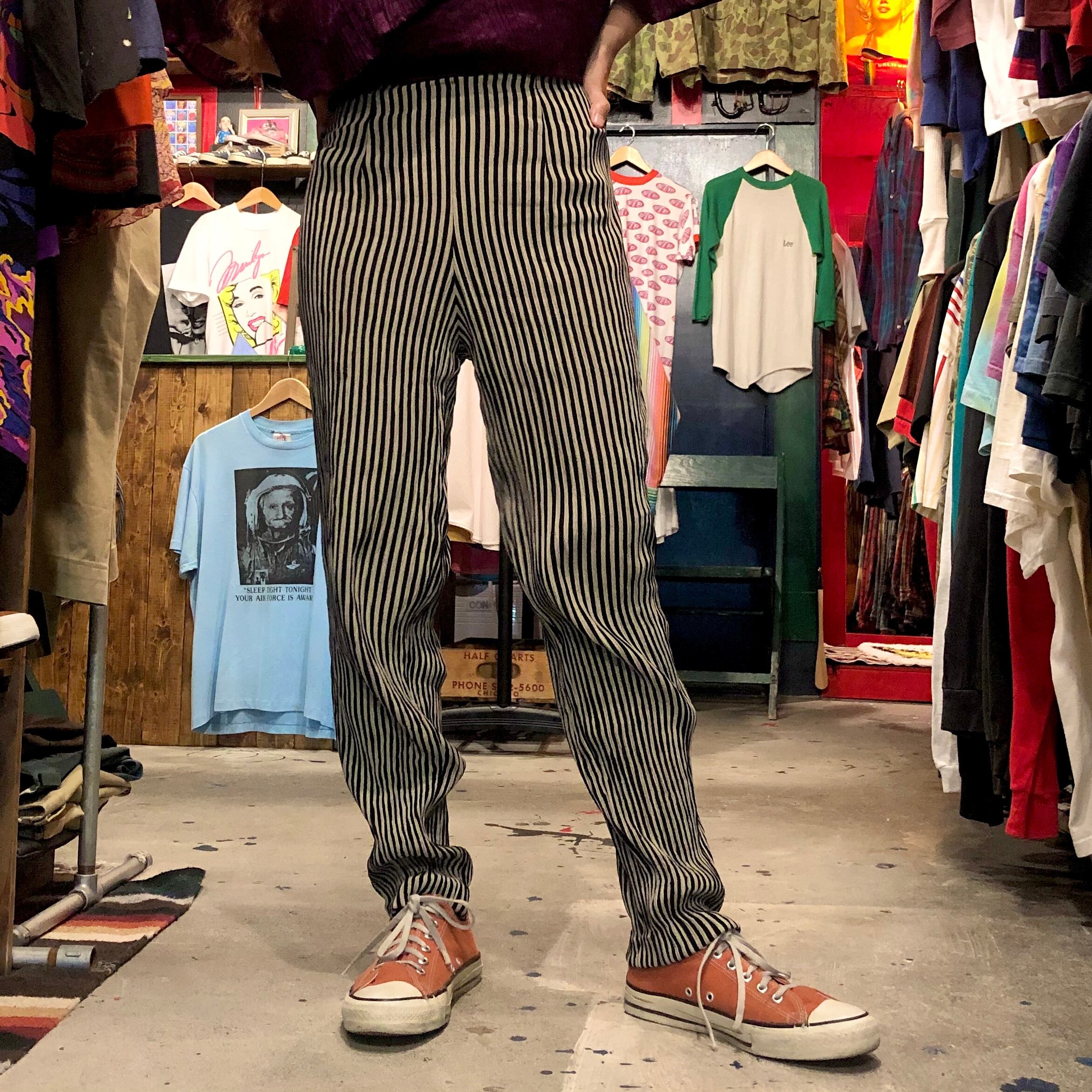 黒とグレーのストライプが合わせやすいパンツです。後ろ身頃にだけゴムが入っていて前はスッキリ着られます。レギンスとイージーパンツの間くらいのコンパクトさで細すぎず太すぎず良い感じです。大きめのTシャツに合わせたりしても可愛いと思います。