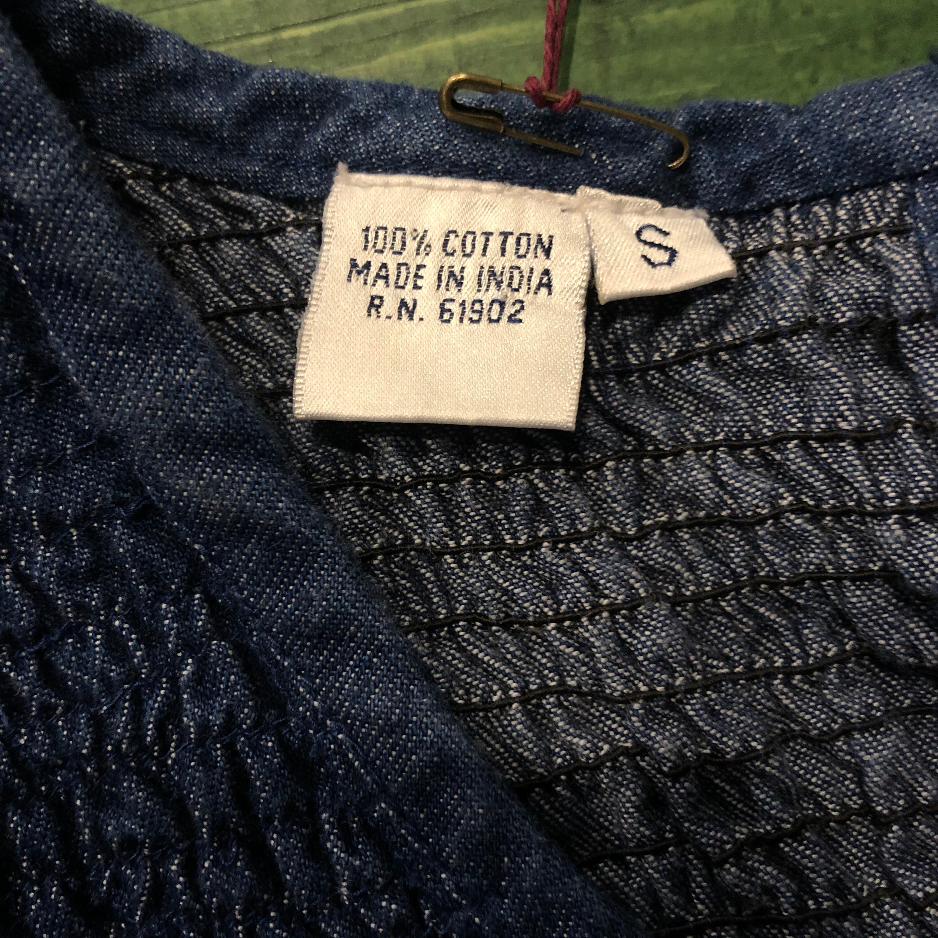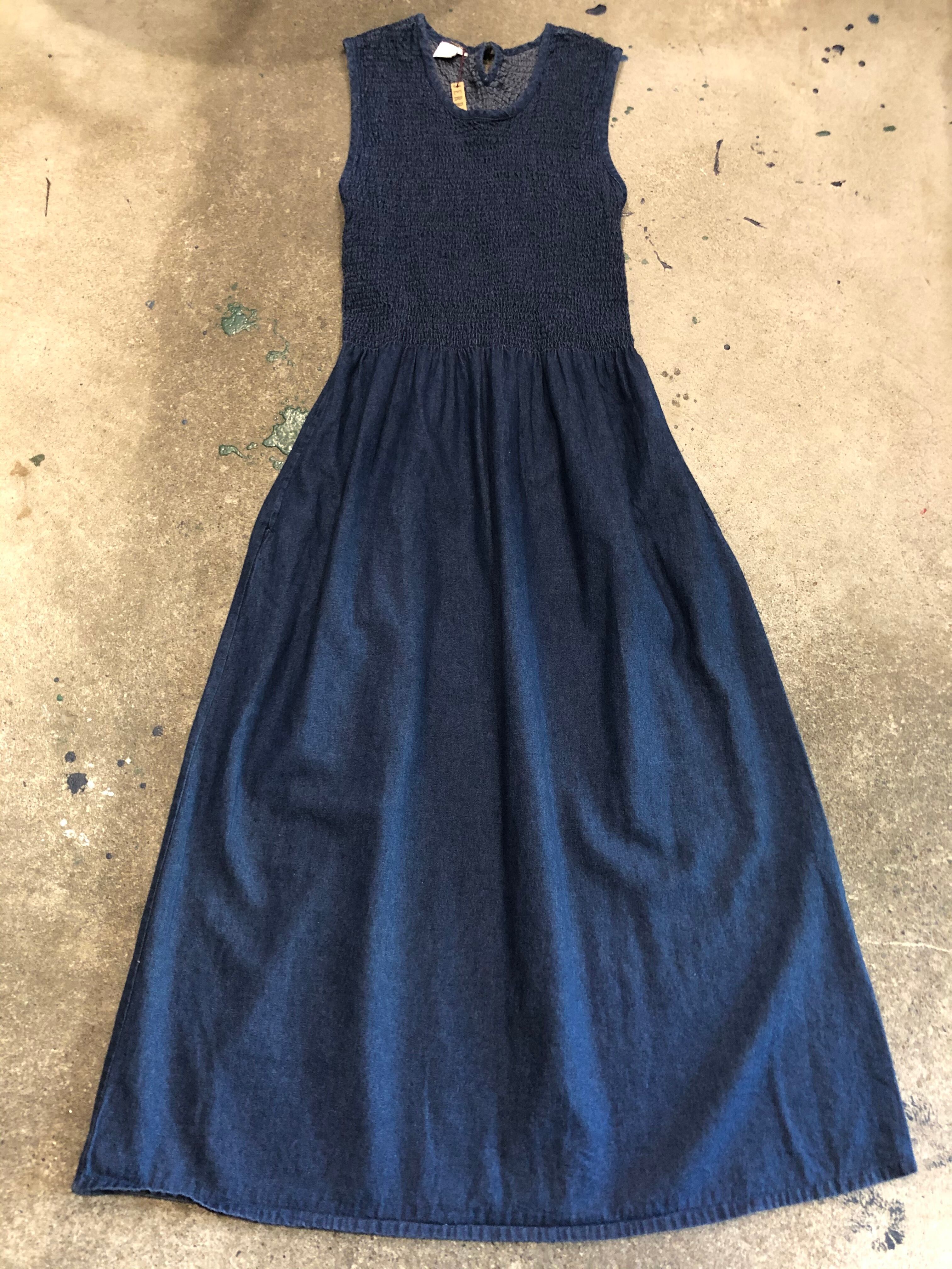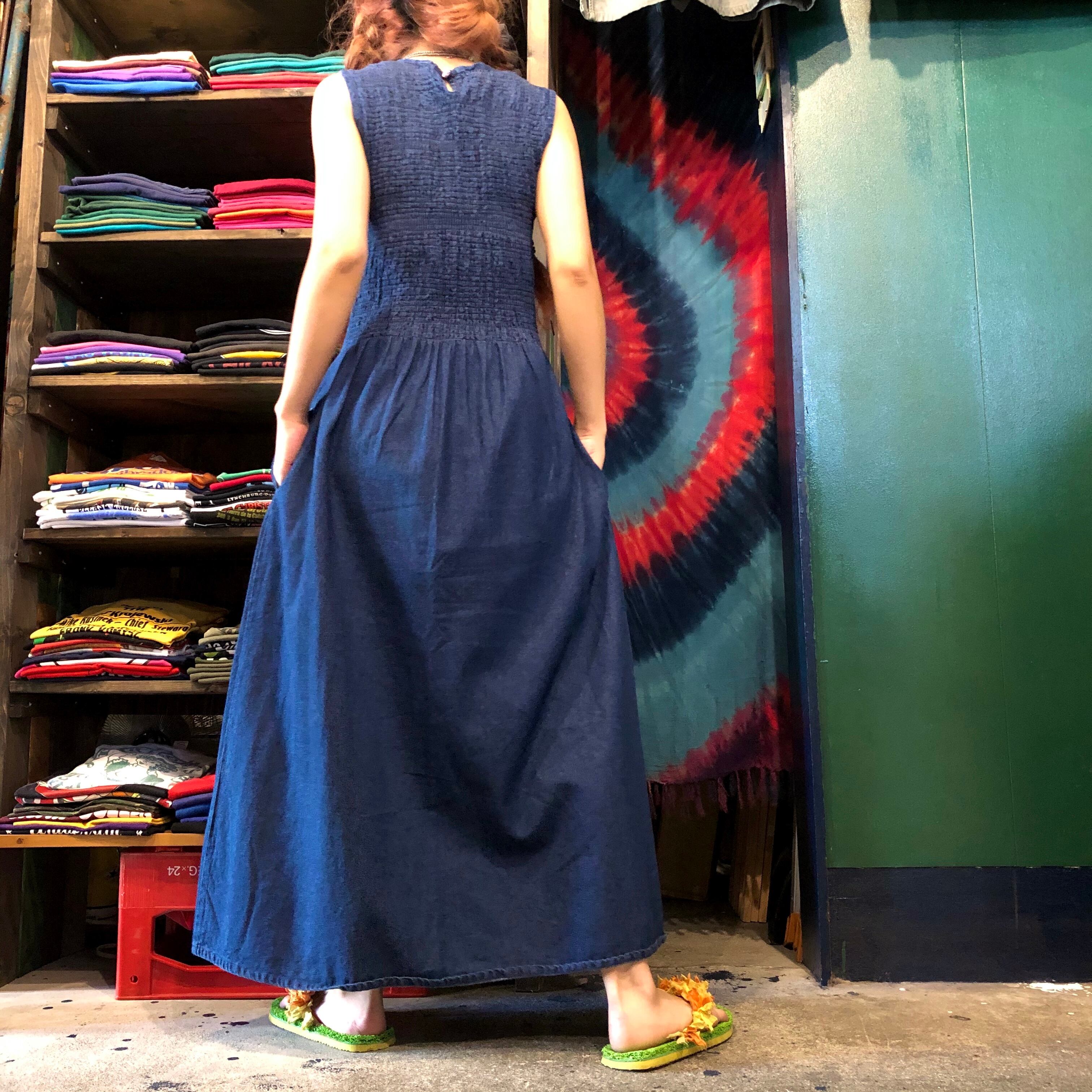 上半身部分が全てシャーリングになっている女性らしいシルエットのデニムワンピースです。