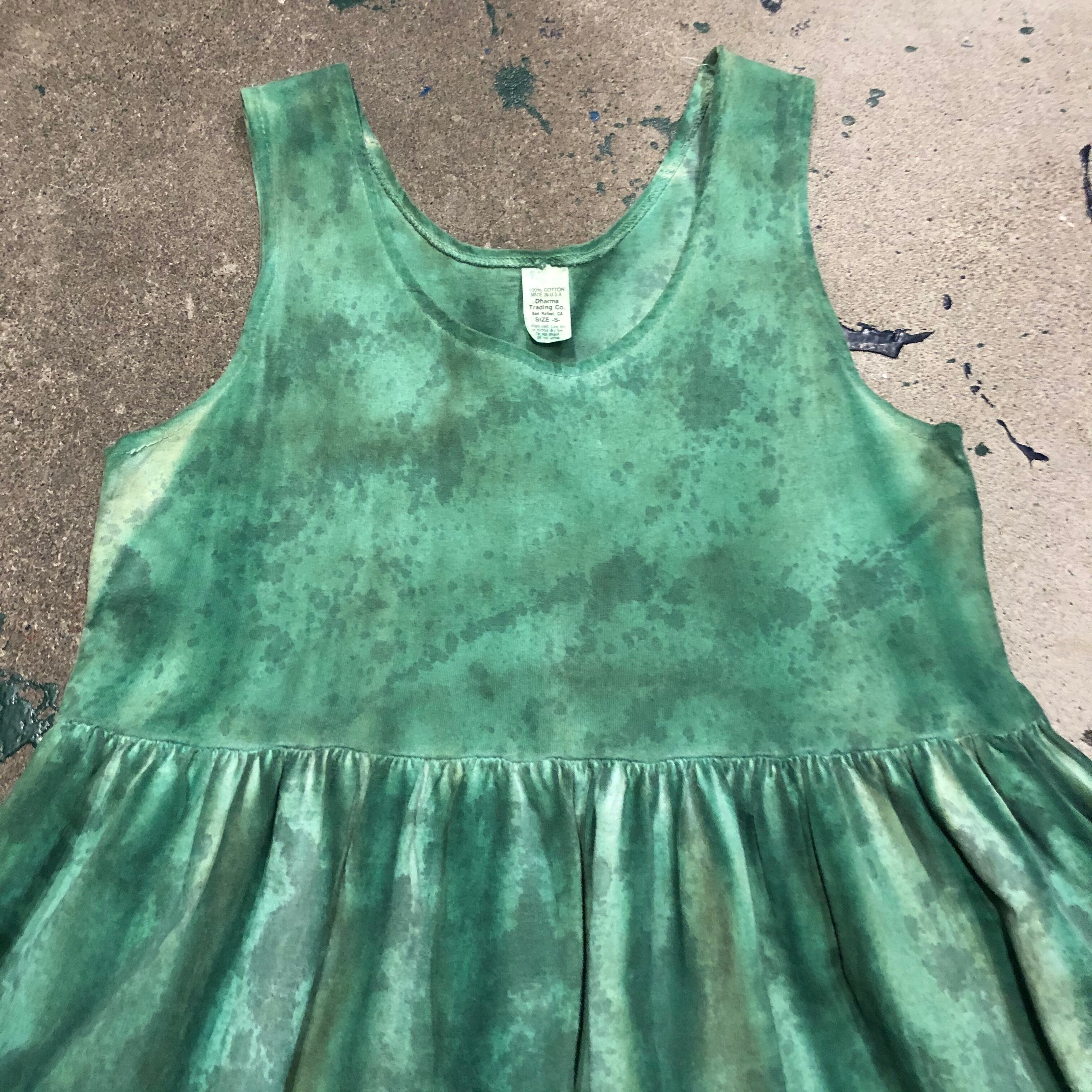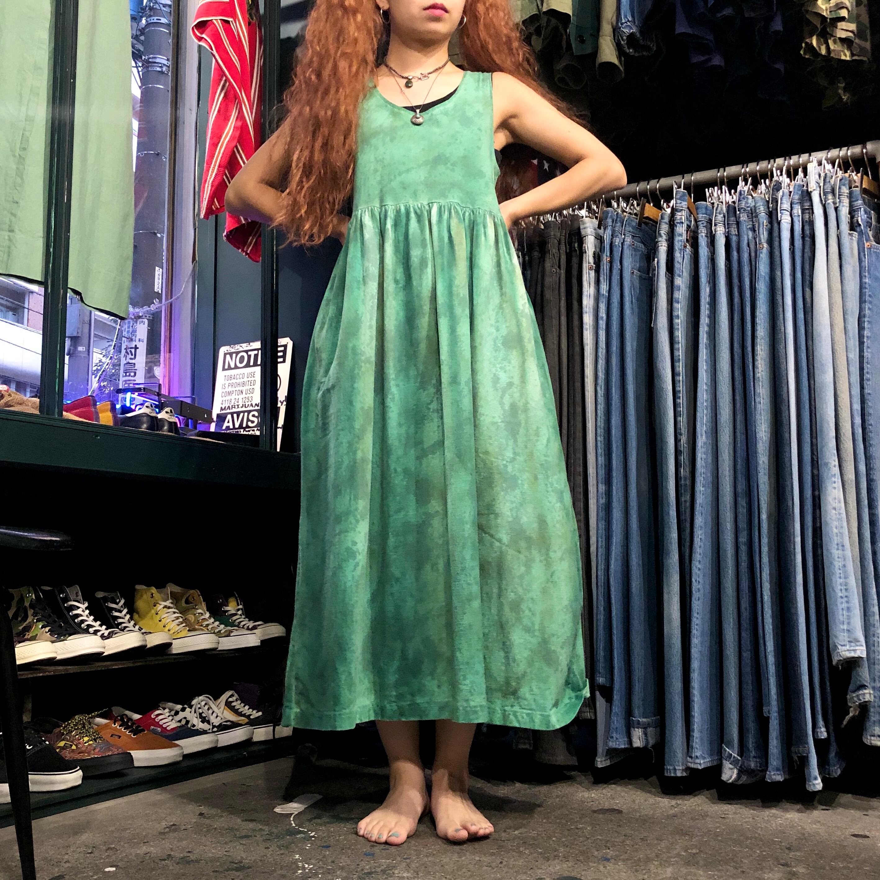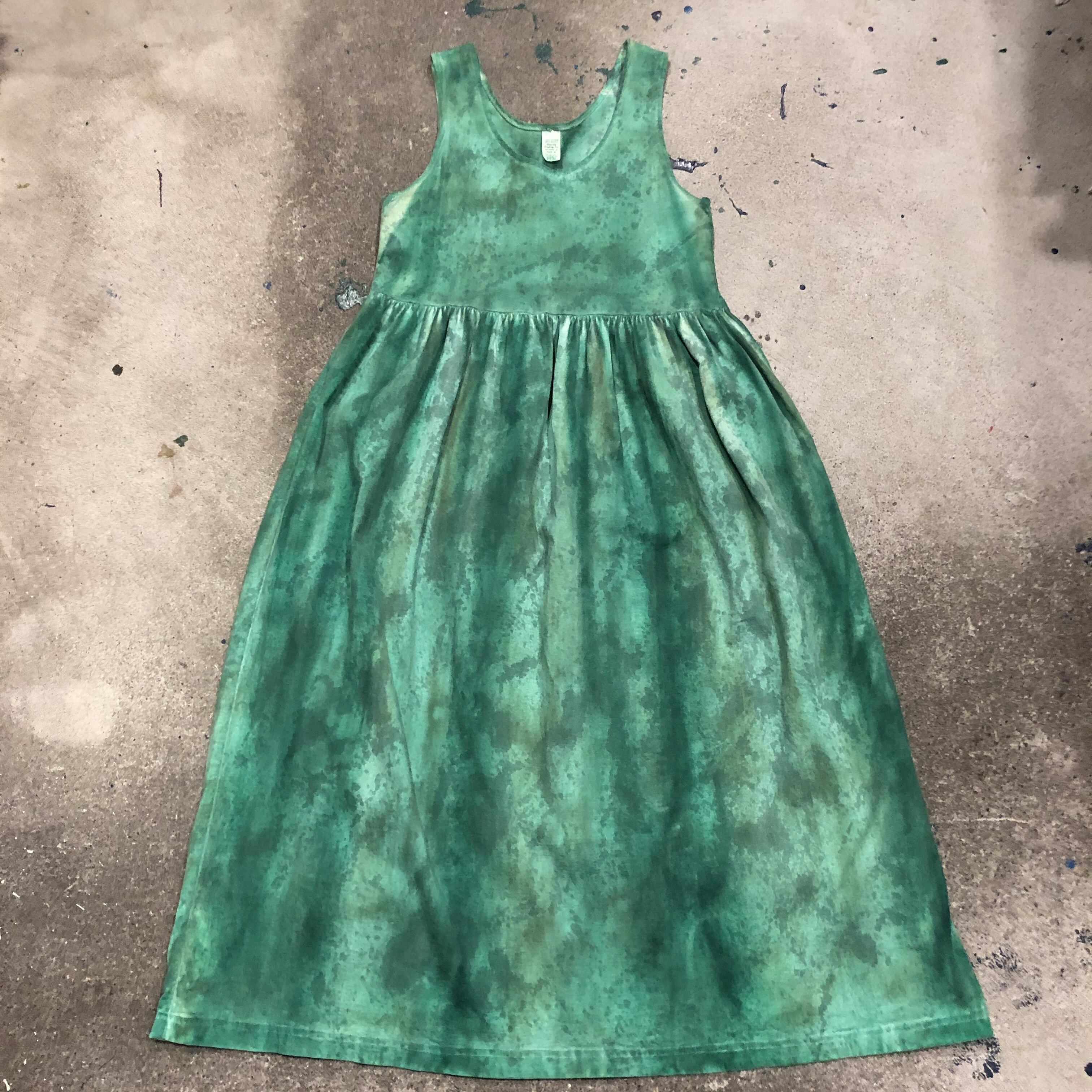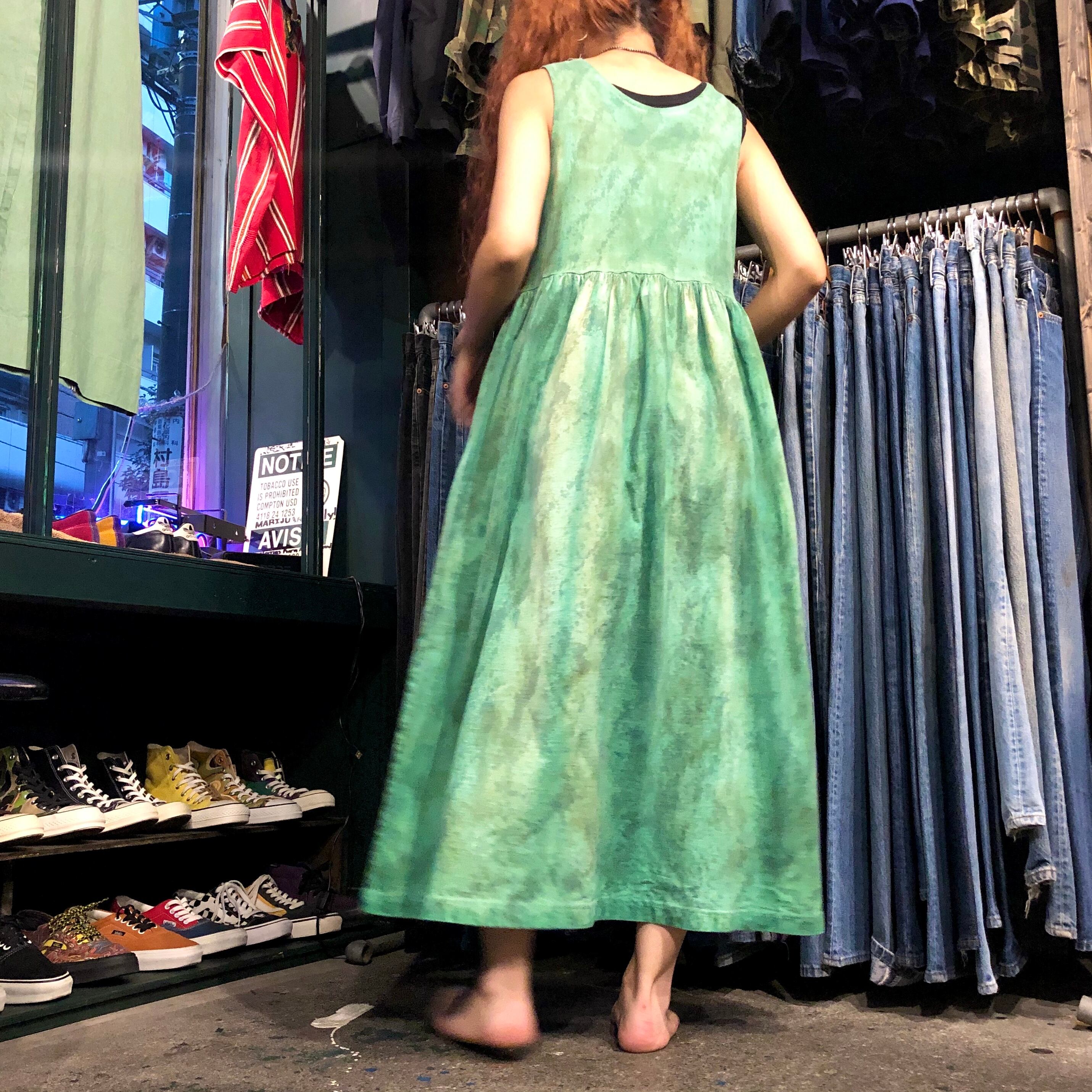 厚手のコットンに緑のタイダイがかわいいワンピースです。