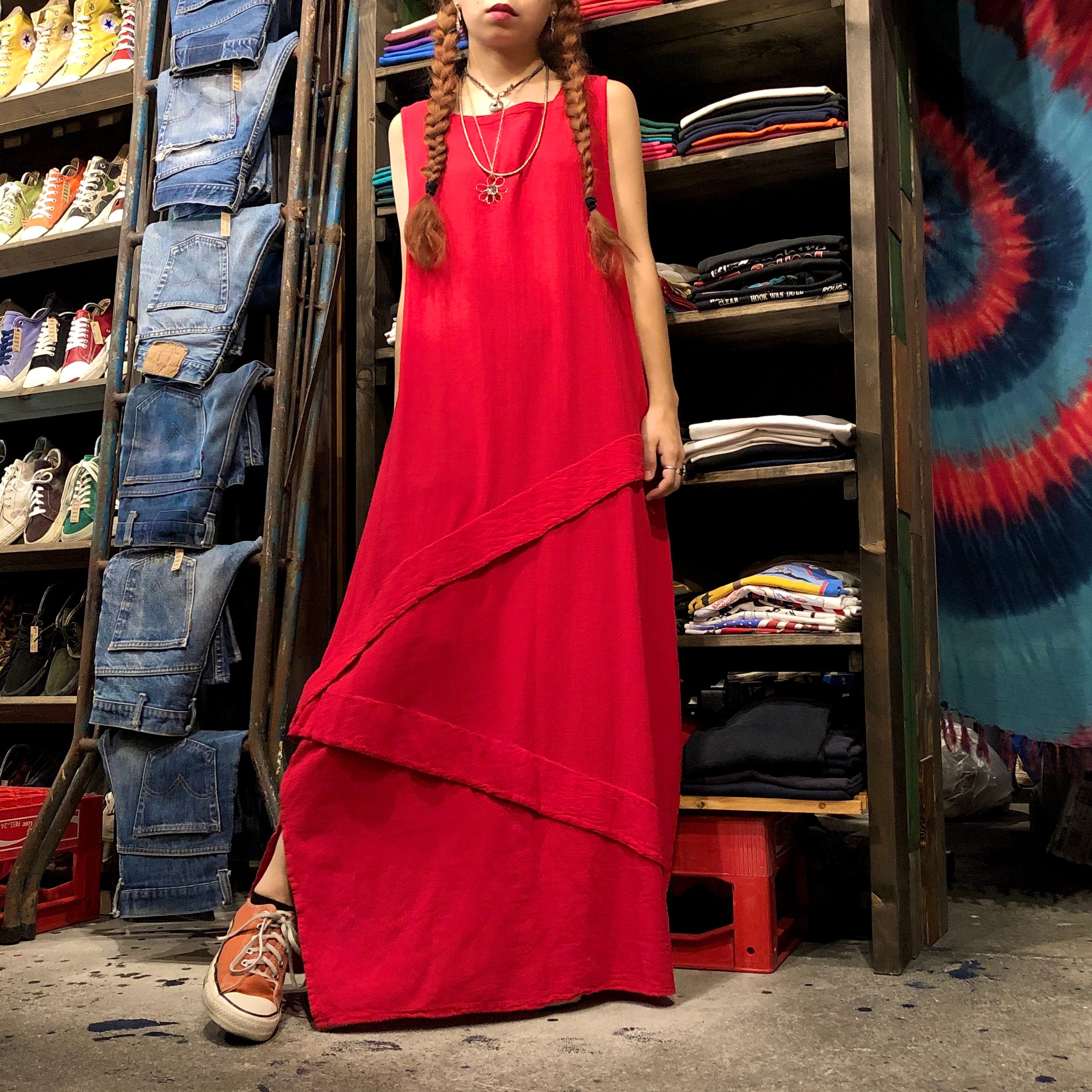 赤一色が潔いワンピースです。