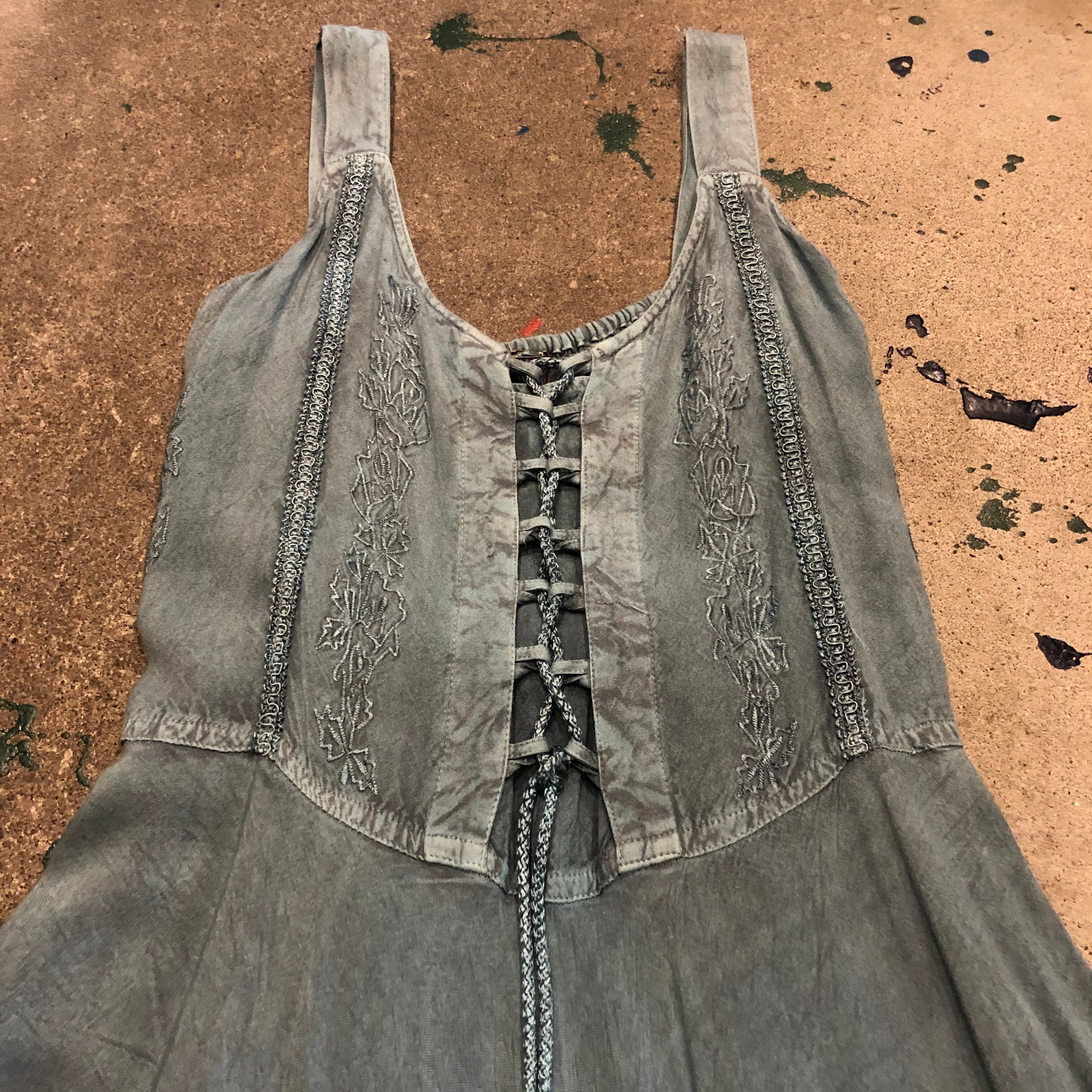 レースアップでビスチェのようなデザインのトップ部分も女性らしくて素敵です。