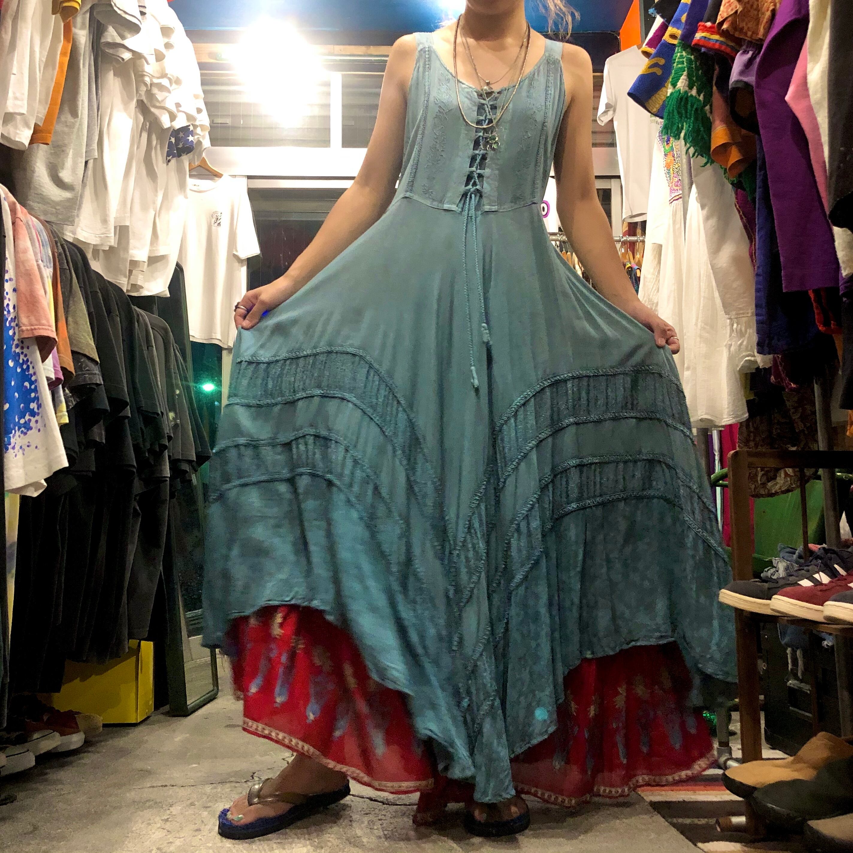 裾がアシンメトリーになっていてボリュームがかわいいレーヨン素材のワンピースです。