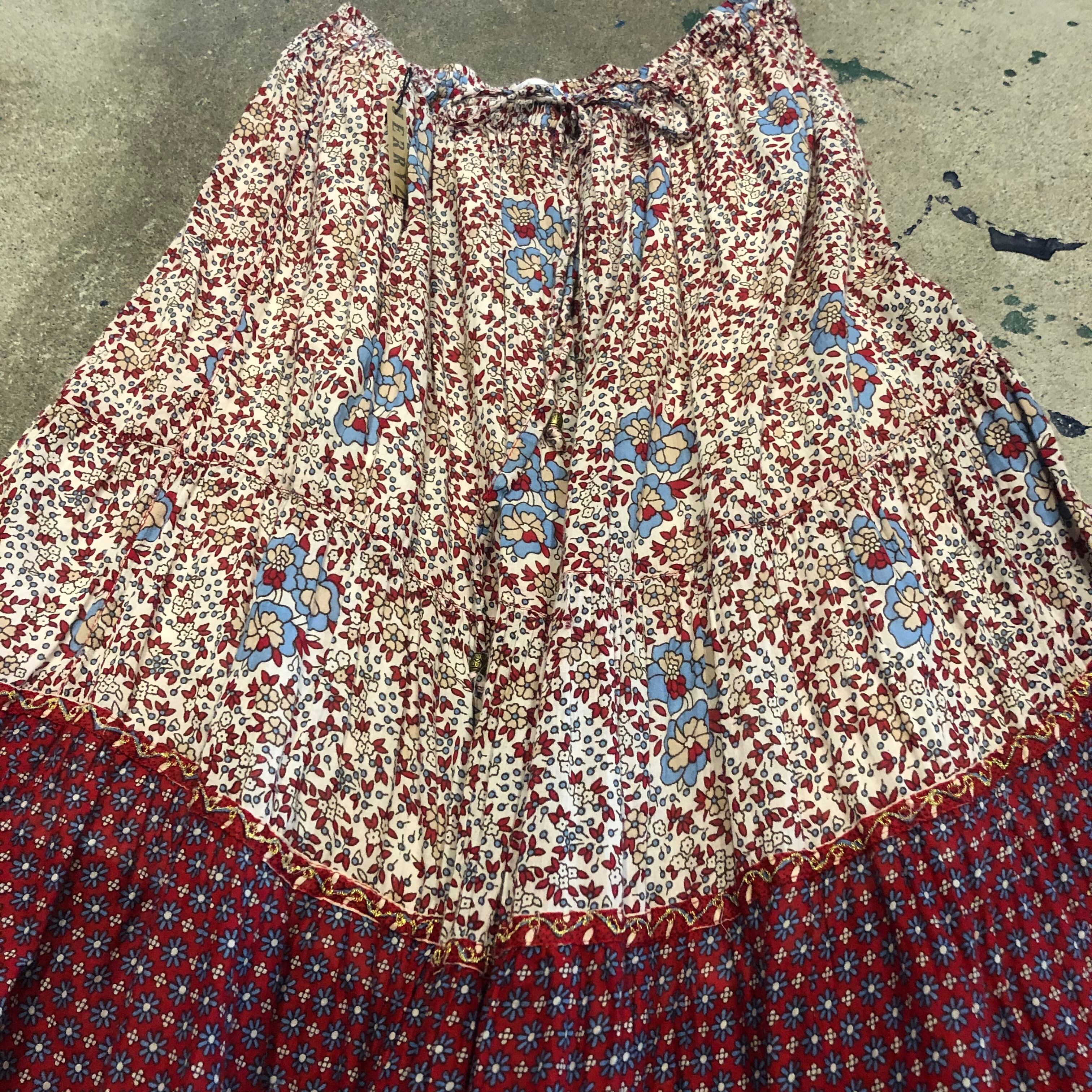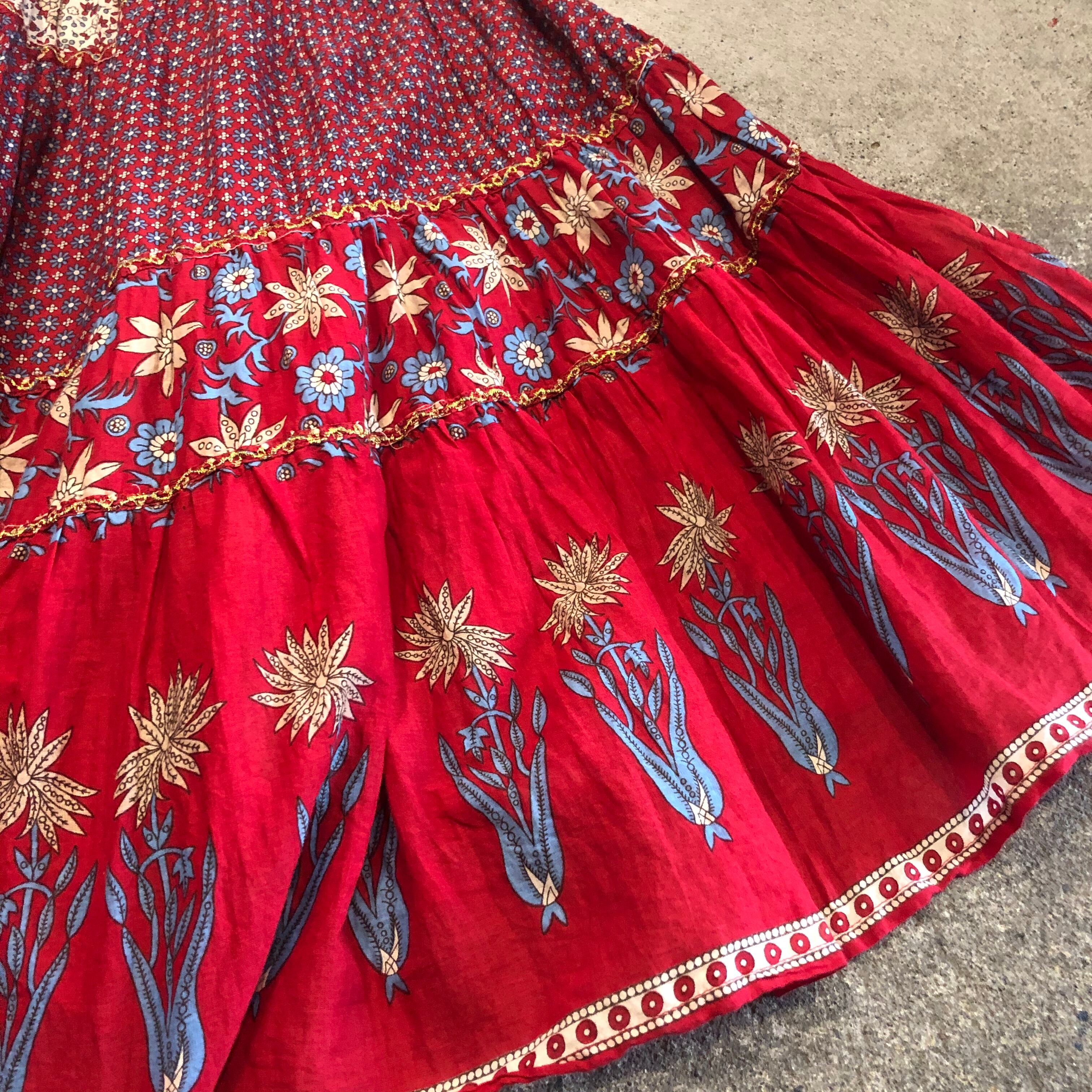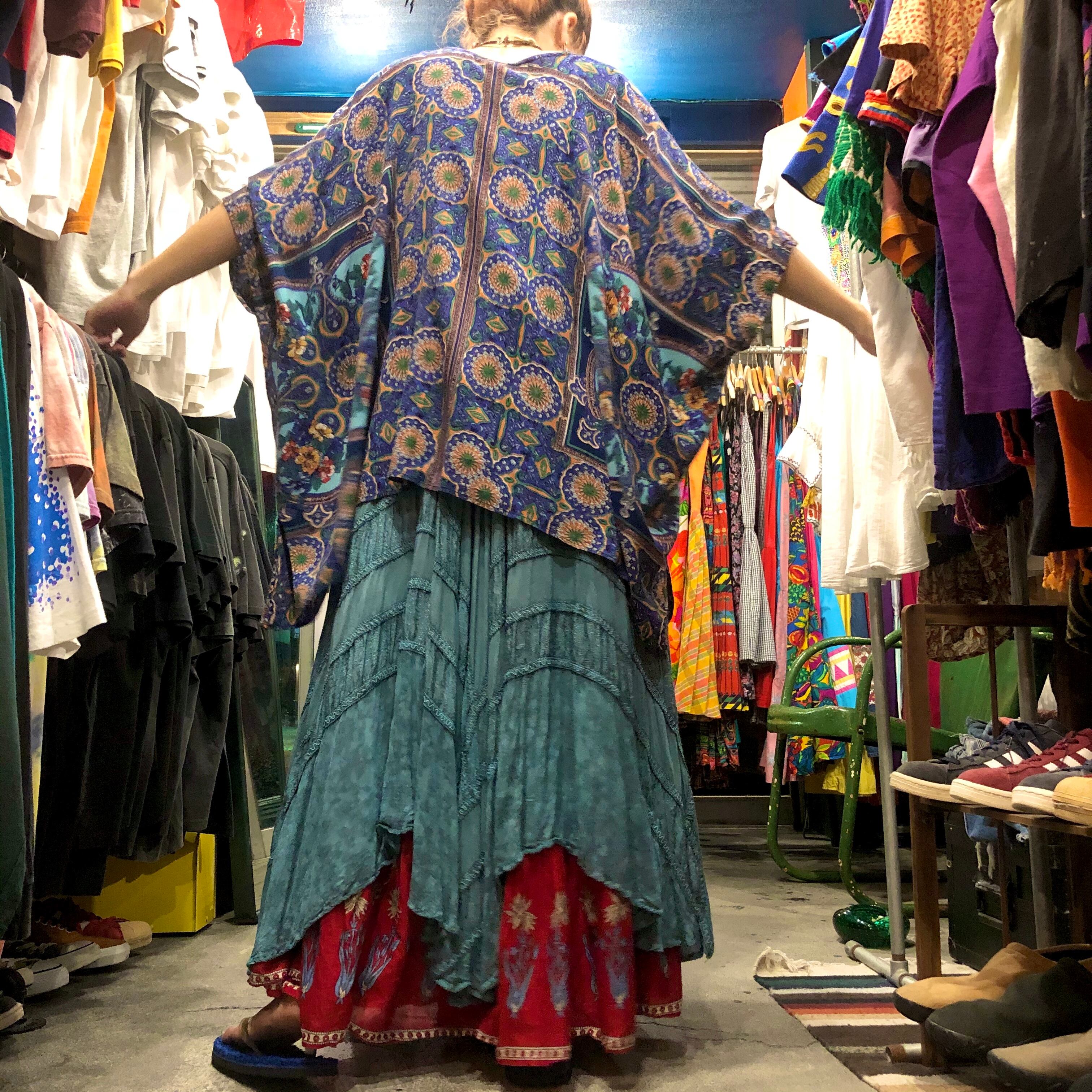 エスニックな雰囲気は少なめな花柄が、合わせやすそうです。膝上まで裏地がついており一枚で着ても安心でとても涼しくて楽ちんです。