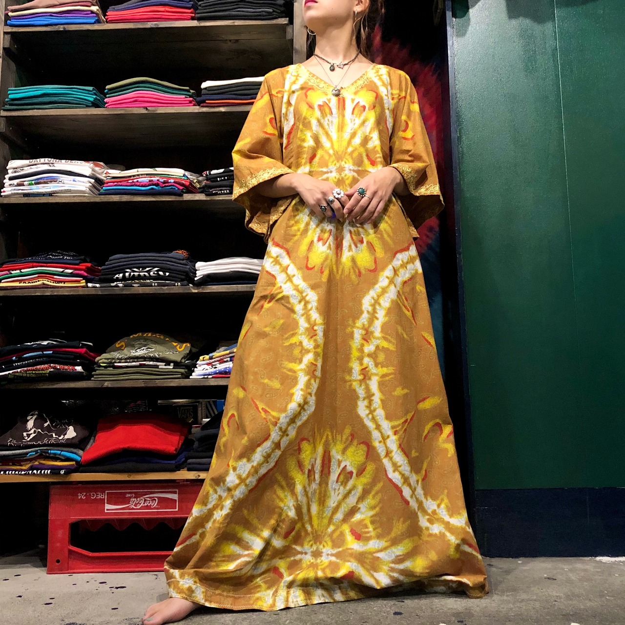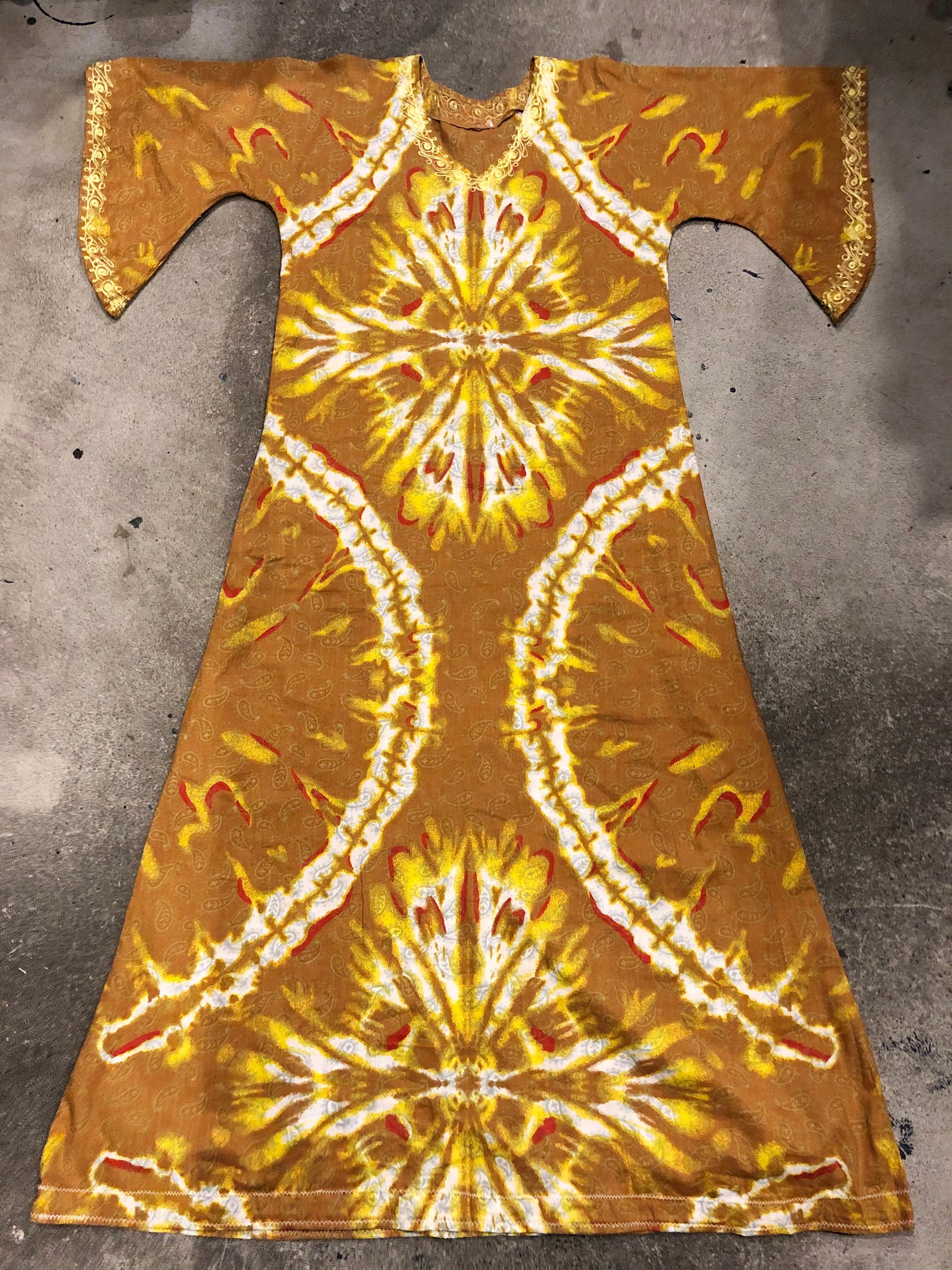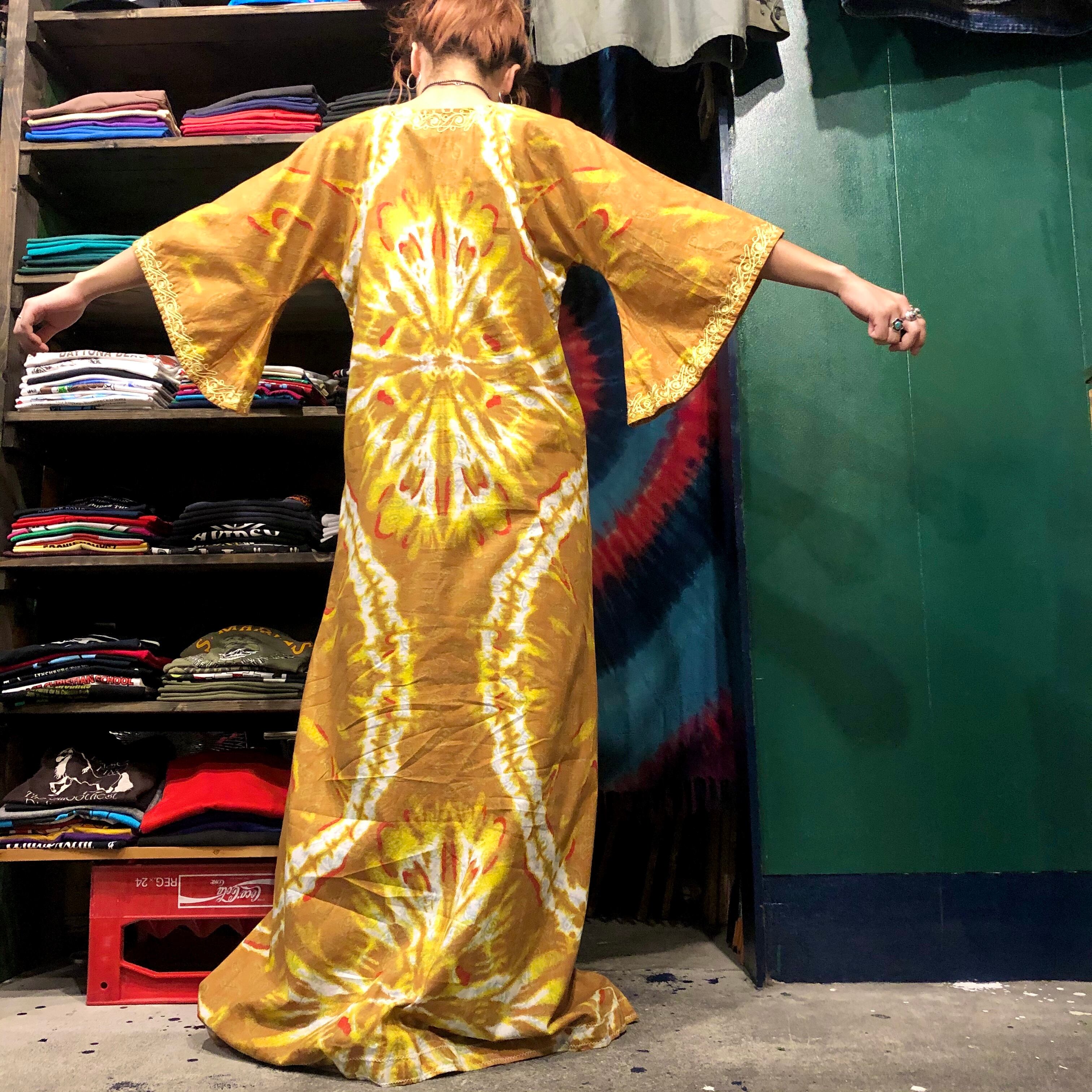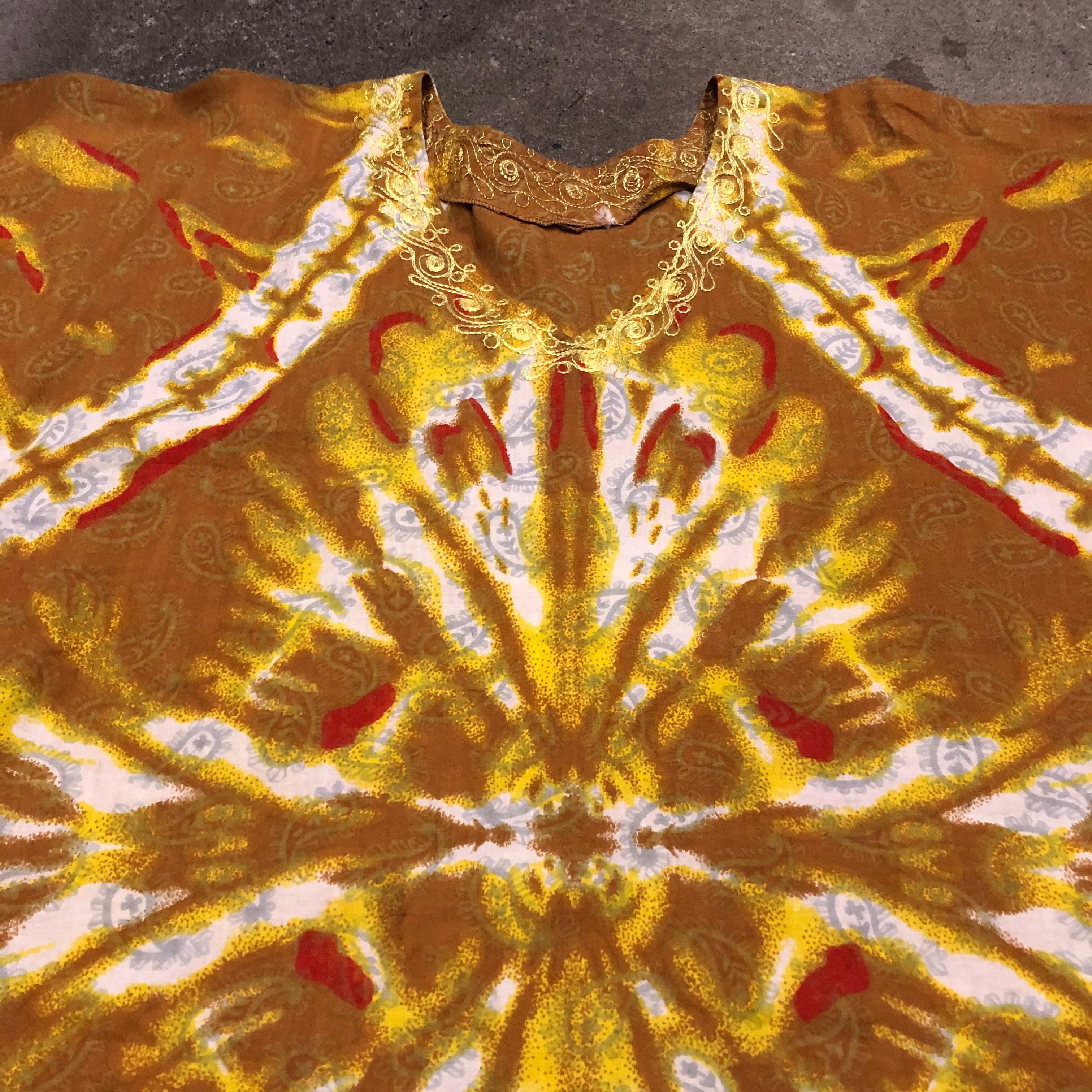 うっすらペイズリーにタイダイ風な模様がインパクトがあってかわいいワンピースです。