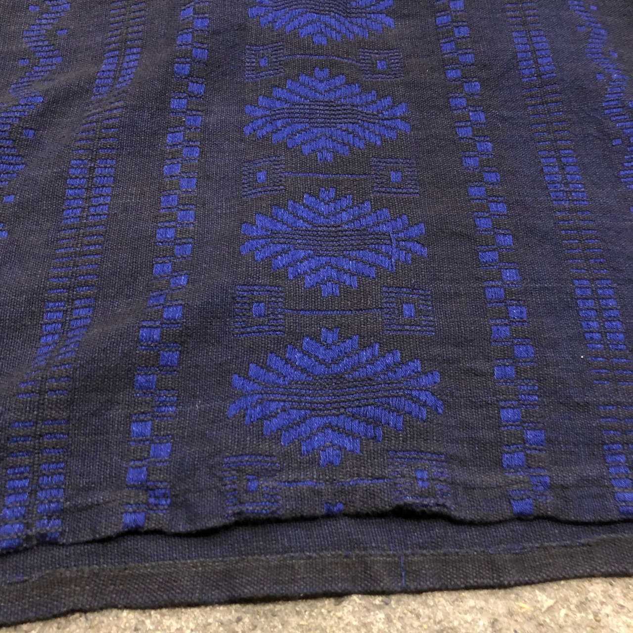 濃いネイビー地に青の刺繍が大人っぽいトップスです。ゆったりめのサイズと五分丈の袖が秋にちょうど良い雰囲気です。