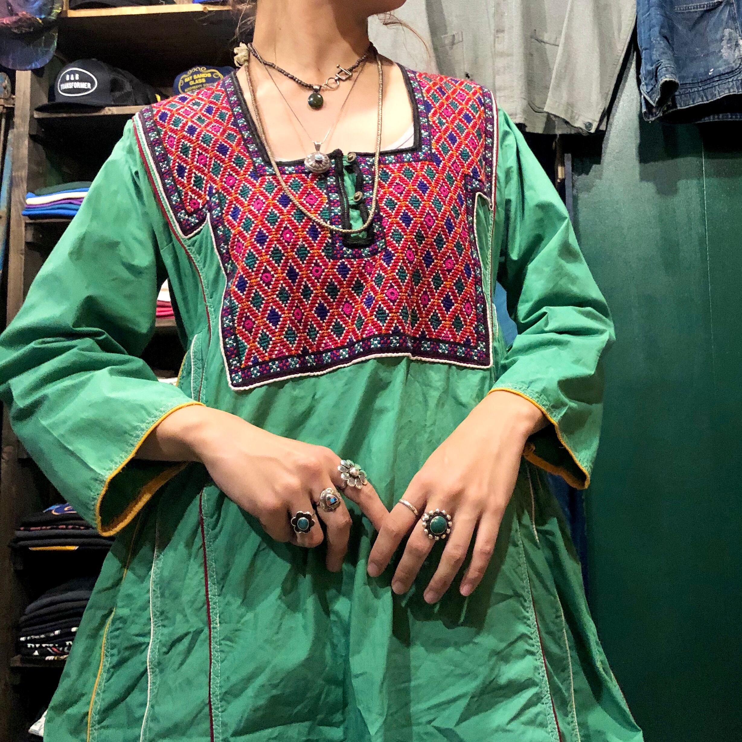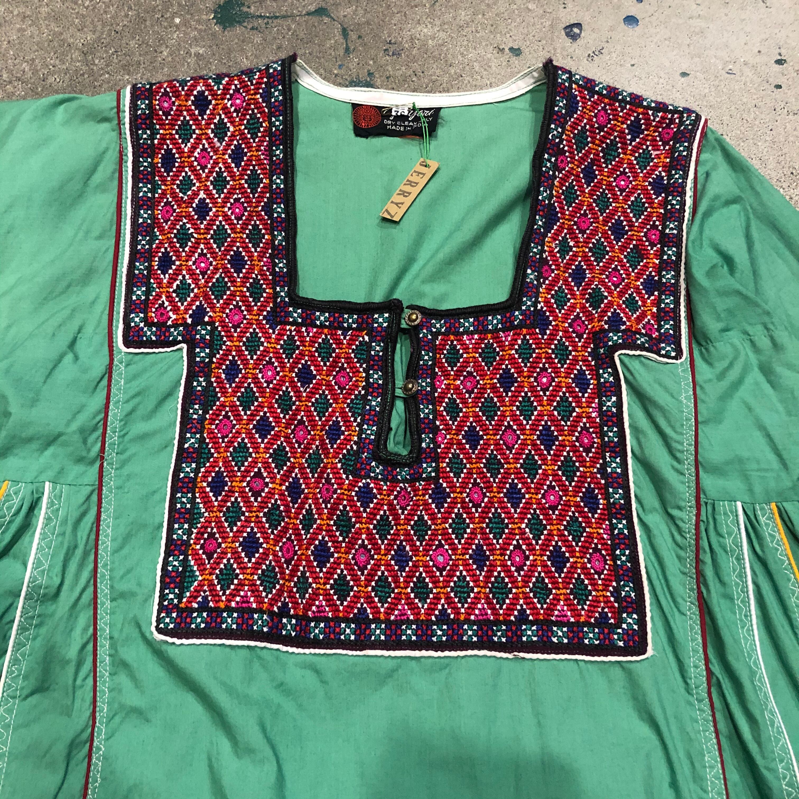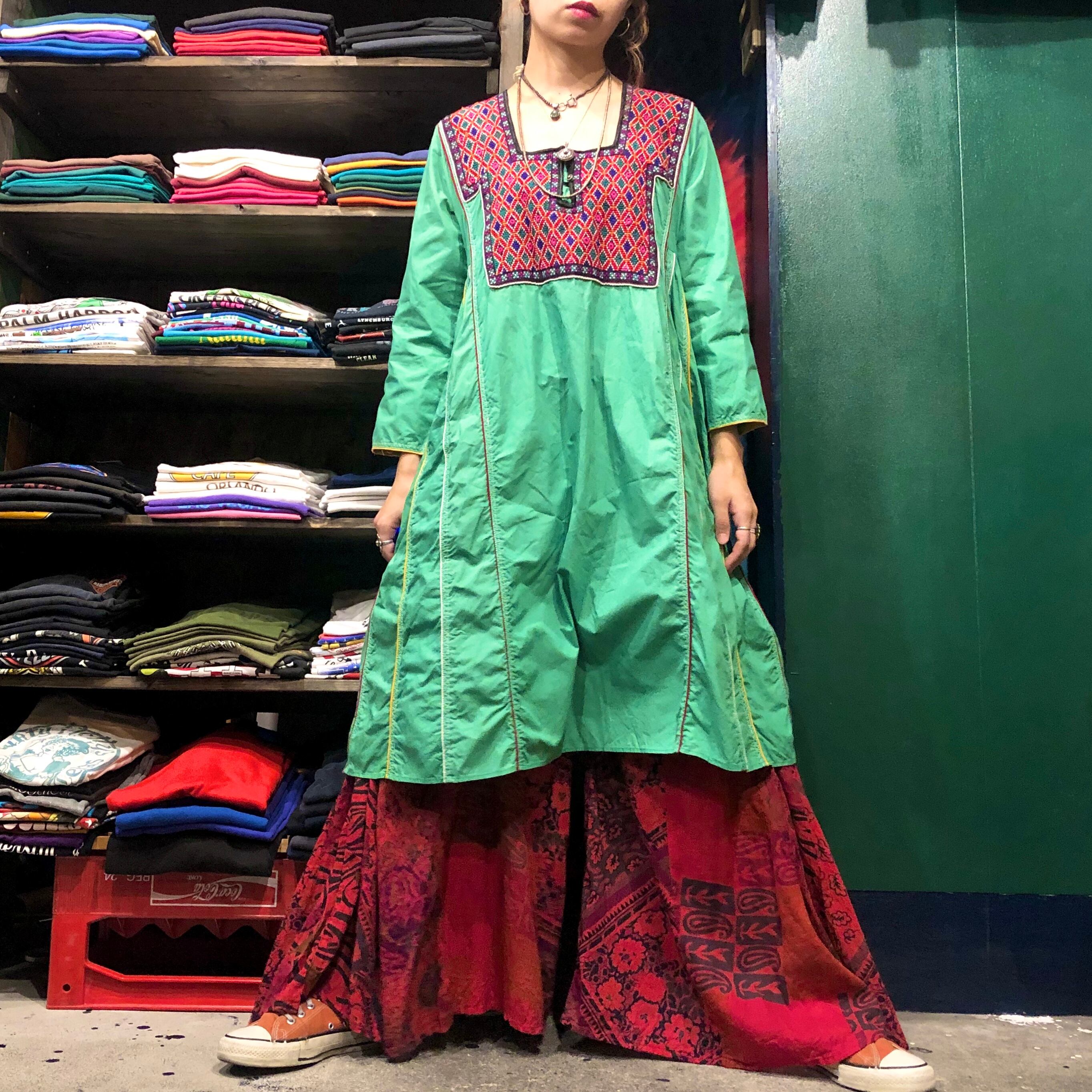 胸元の手刺繍とミラーワークが素敵なインド製ワンピースです。