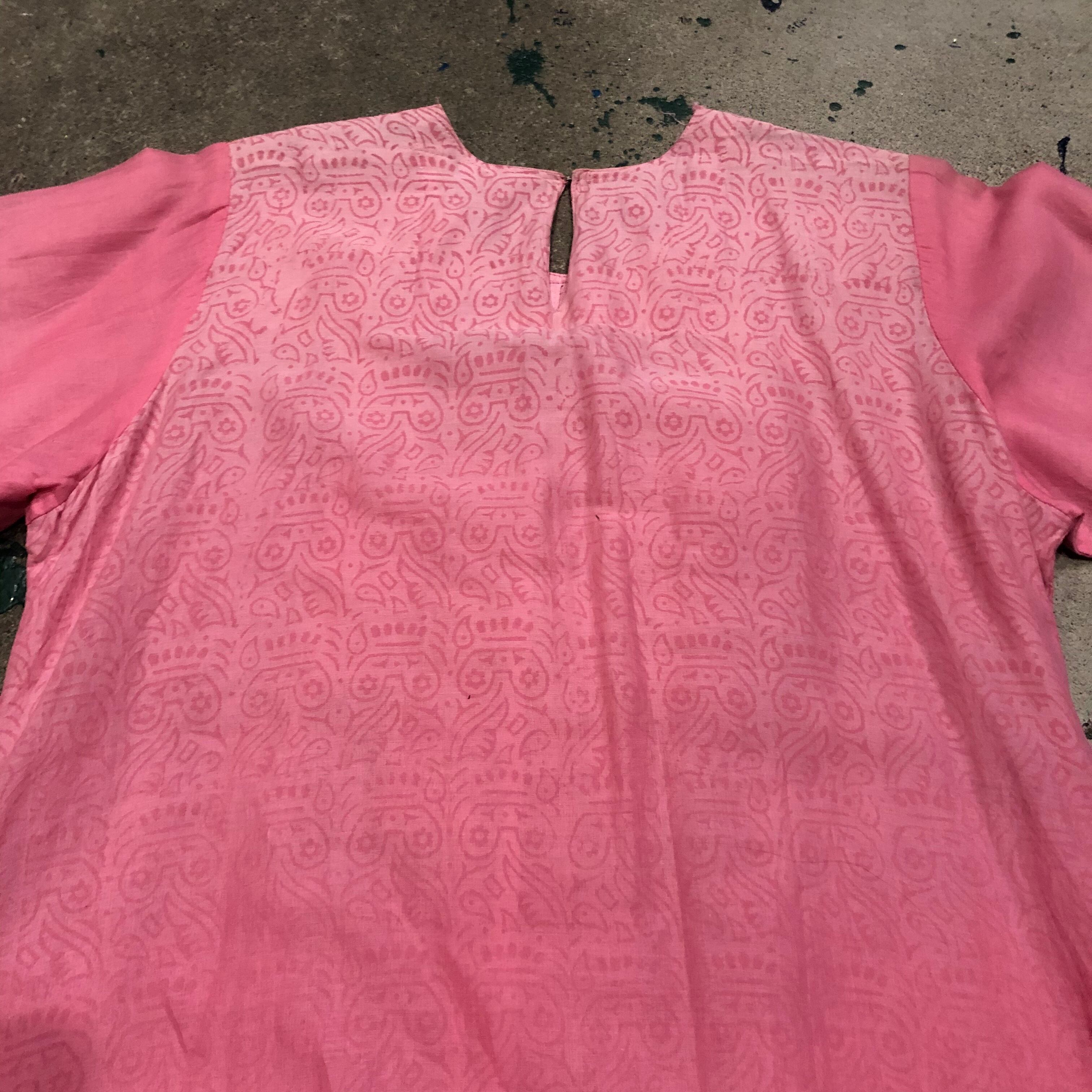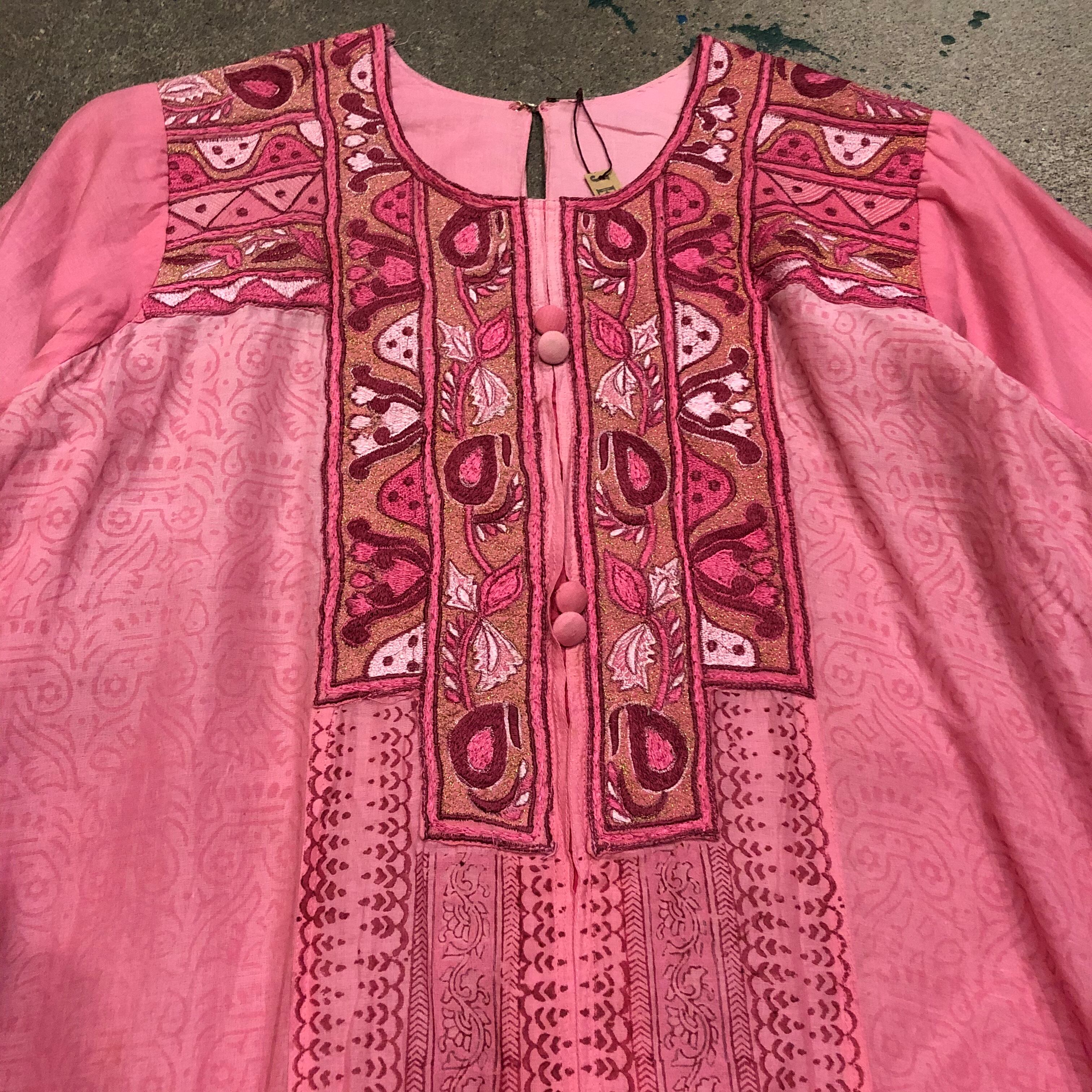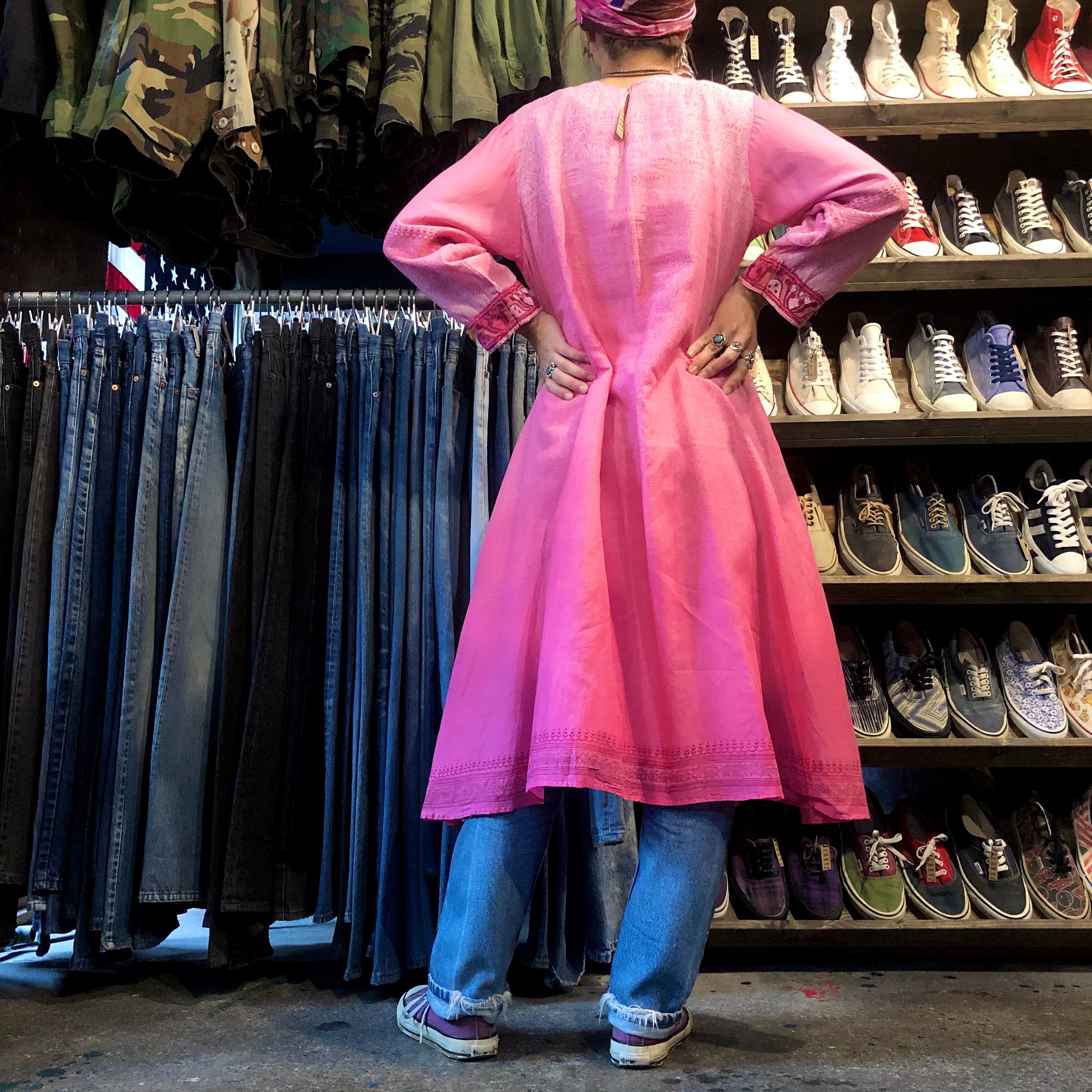 ピンクのグラデーションと刺繍がかわいいワンピースです。エスニックな雰囲気でこんなにピンクづくしなものは珍しいかと思われます。