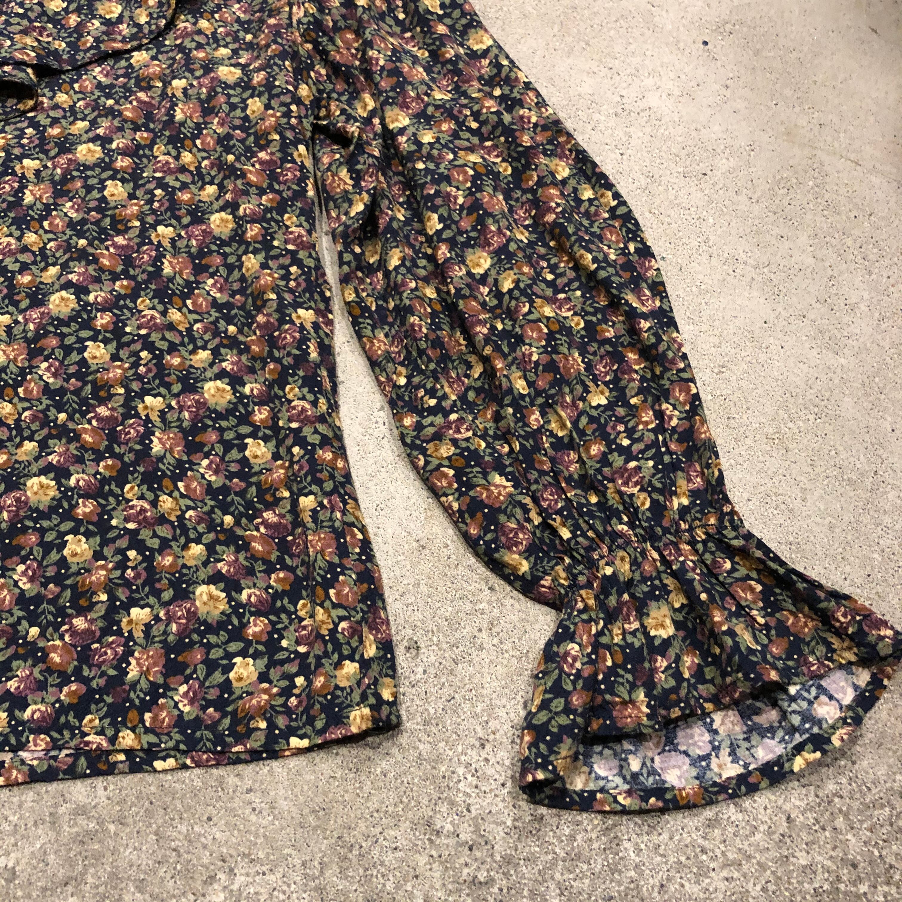 襟がフリフリしていて袖口もフレアギャザーになっていたり女の子らしいシルエットでとてもかわいいです。オーバーオールと合わせたり、上にニットやスウェットを合わせて襟だけ出すのもかわいいですね!