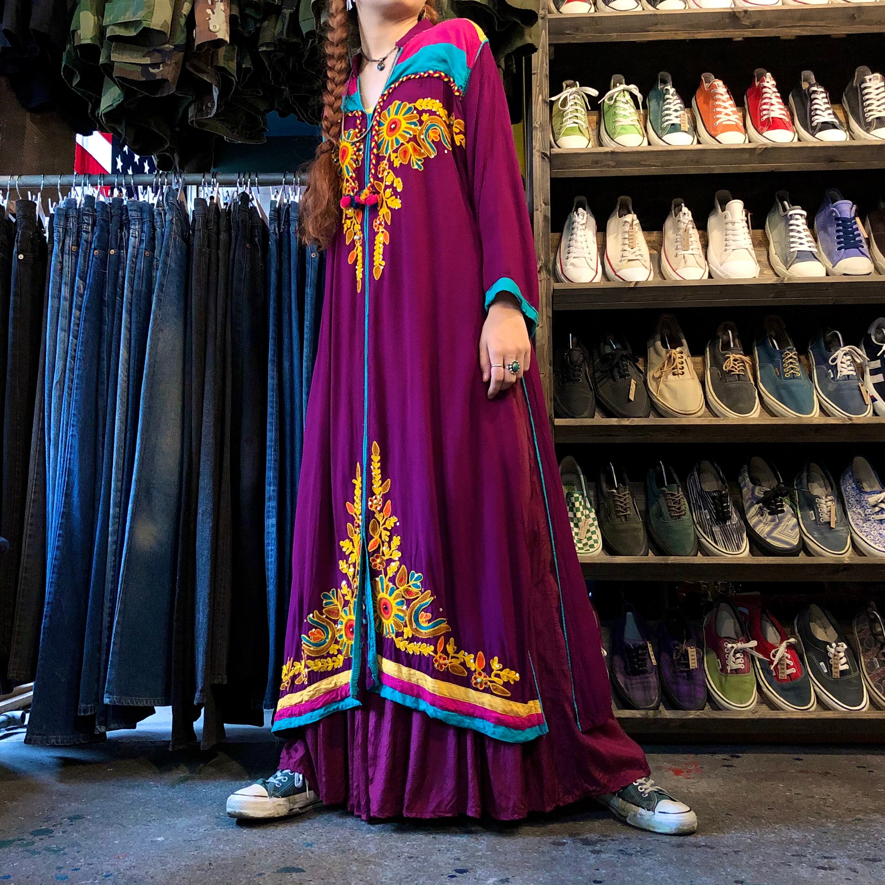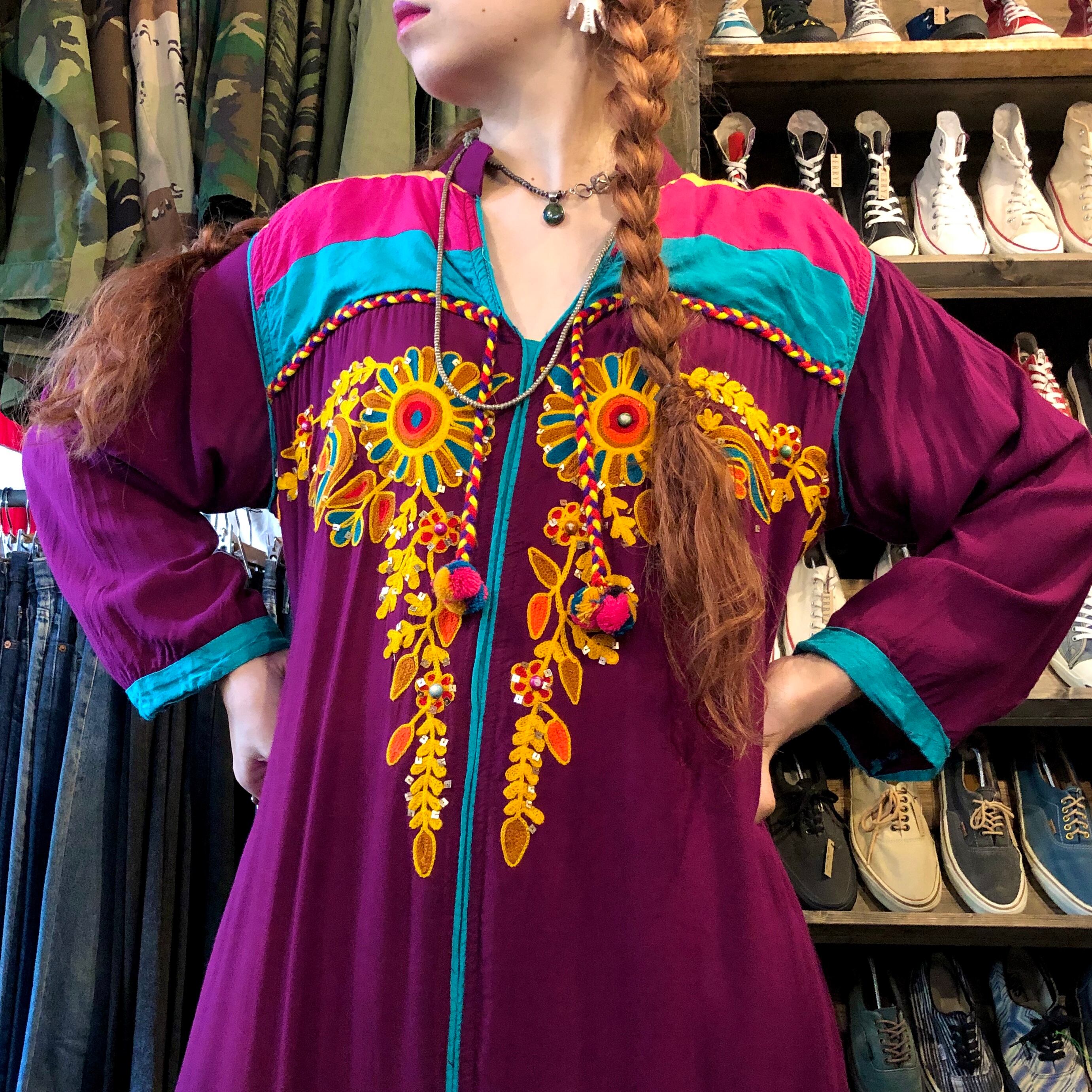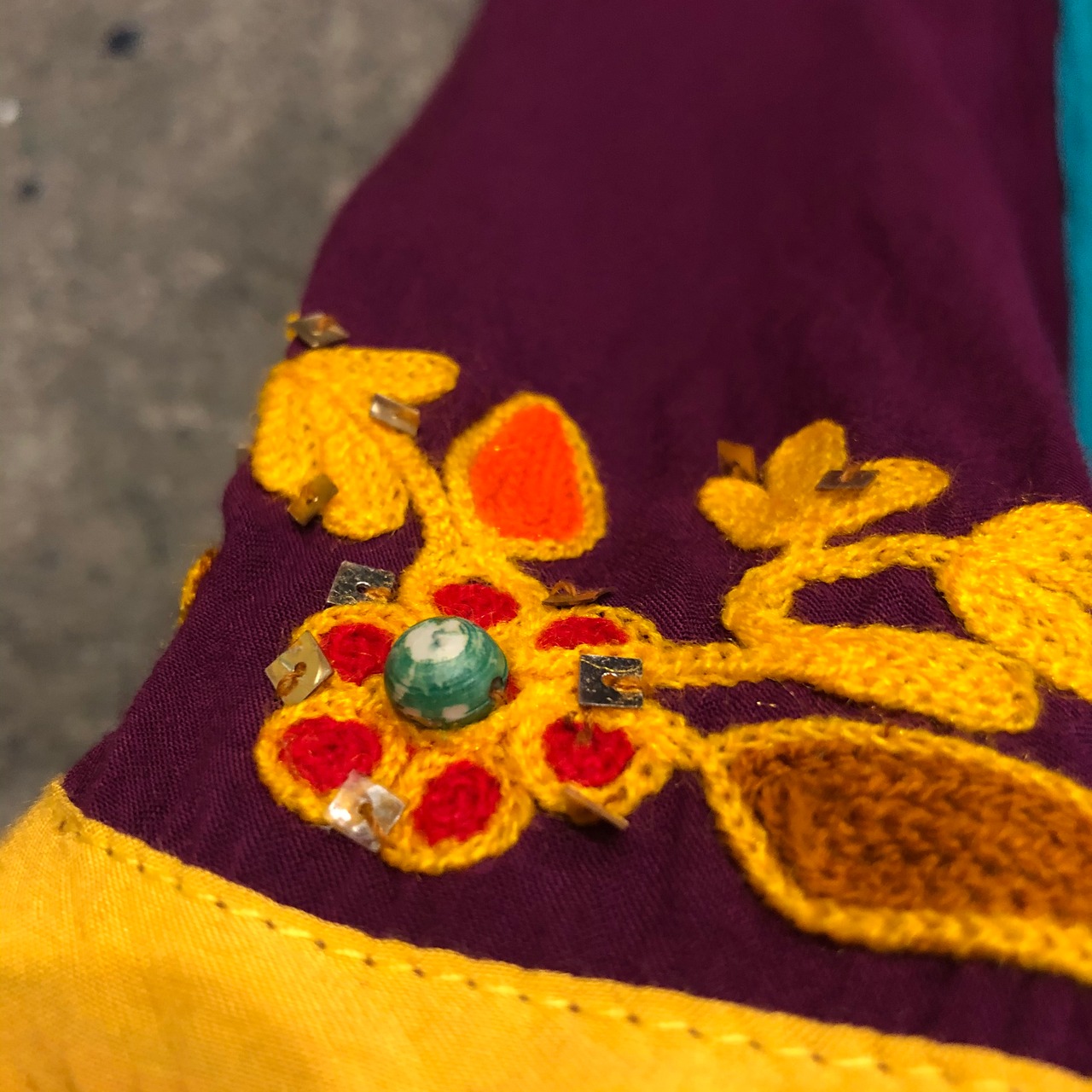 刺繍自体は機械で施されており、ほつれなどはありませんがスパンコールやビーズが手縫いで付けられておりこちらは取れている箇所があったり大雑把につけられているので取れていく可能性があります。