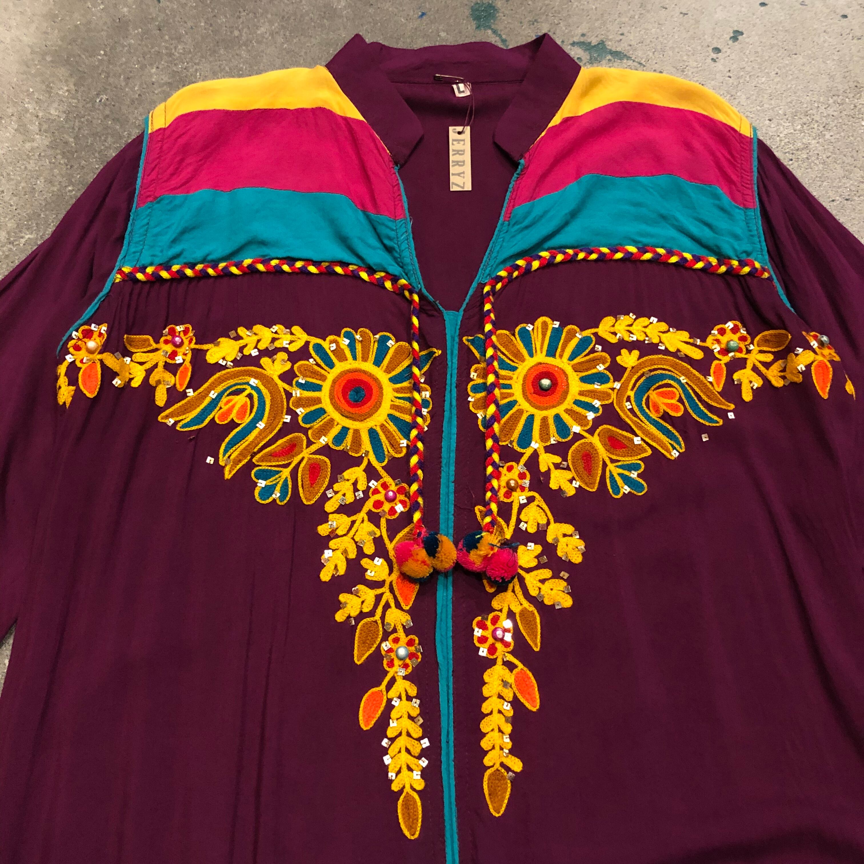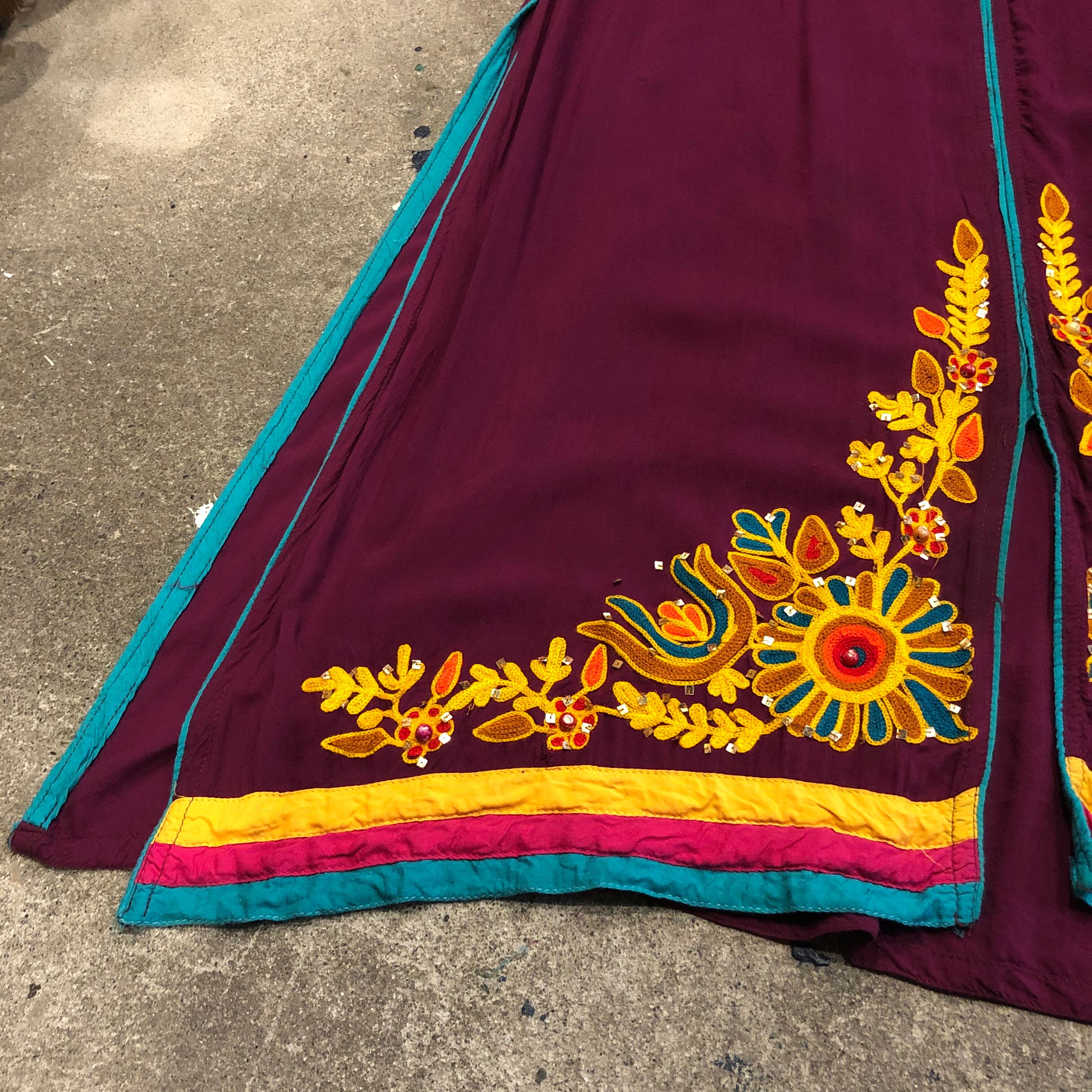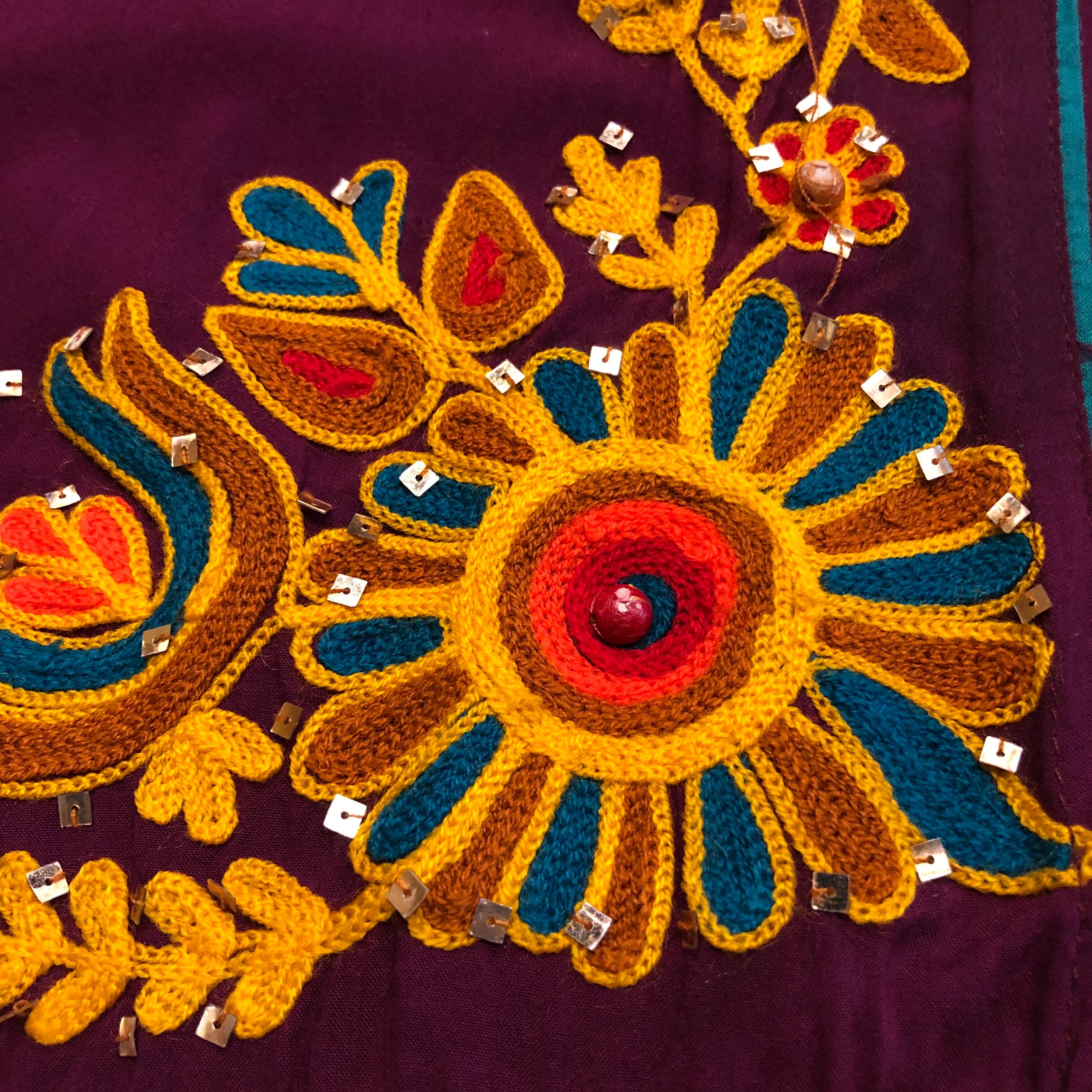 刺繍自体は機械で施されており、ほつれなどはありませんがスパンコールやビーズが手縫いで付けられておりこちらは取れている箇所があったり大雑把につけられているので取れていく可能性があります。