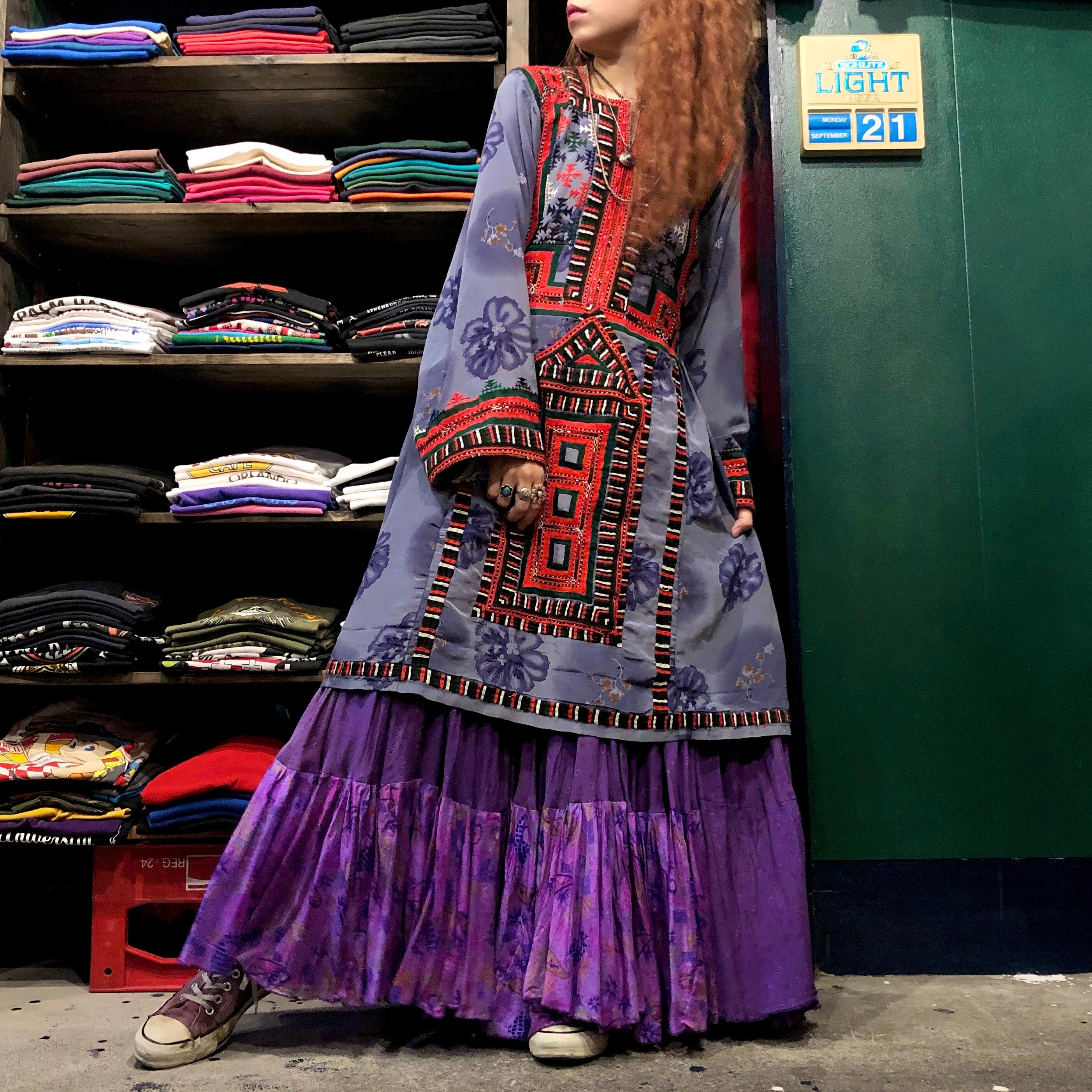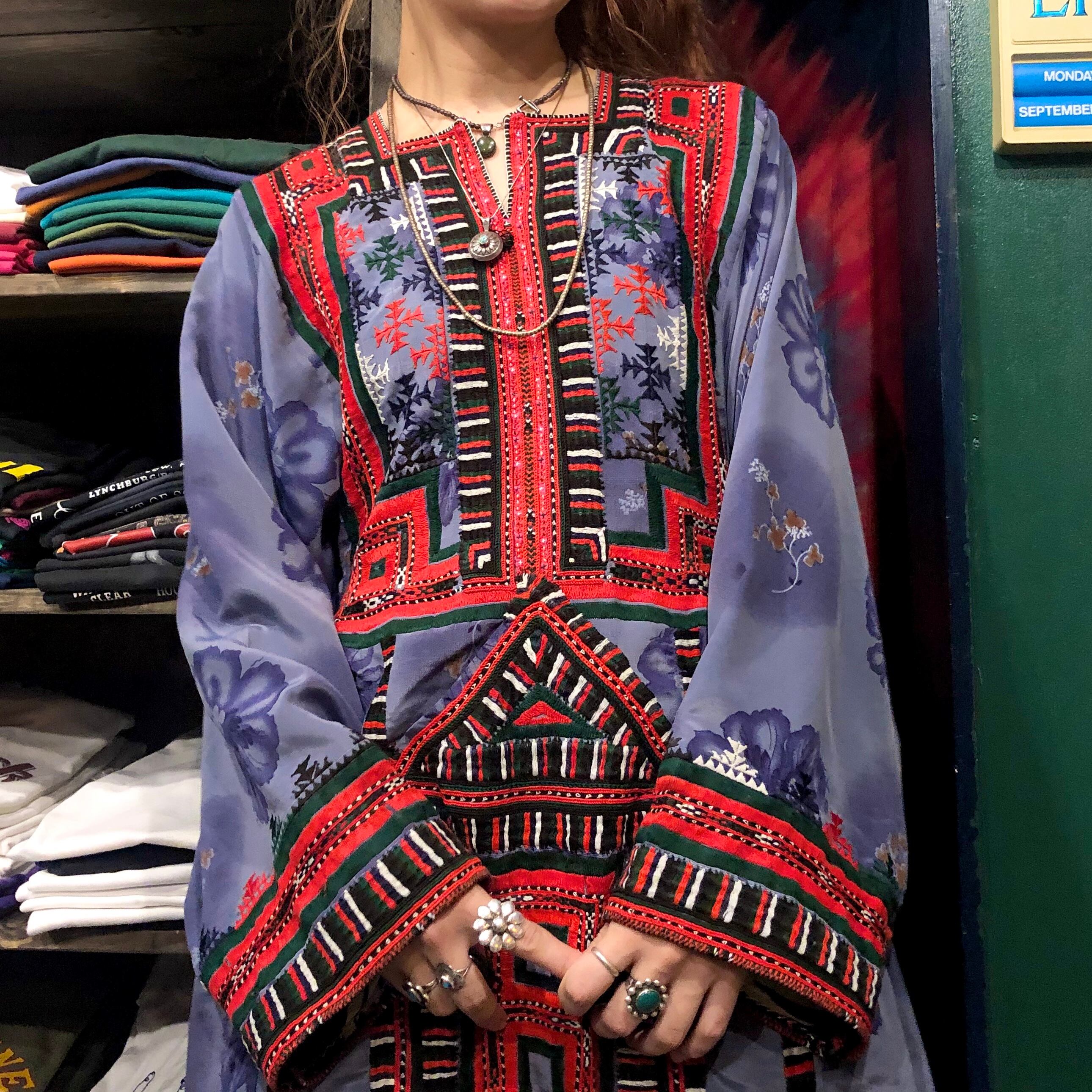つるっとした素材にびっしり手刺繍が施されたバロチドレスです。