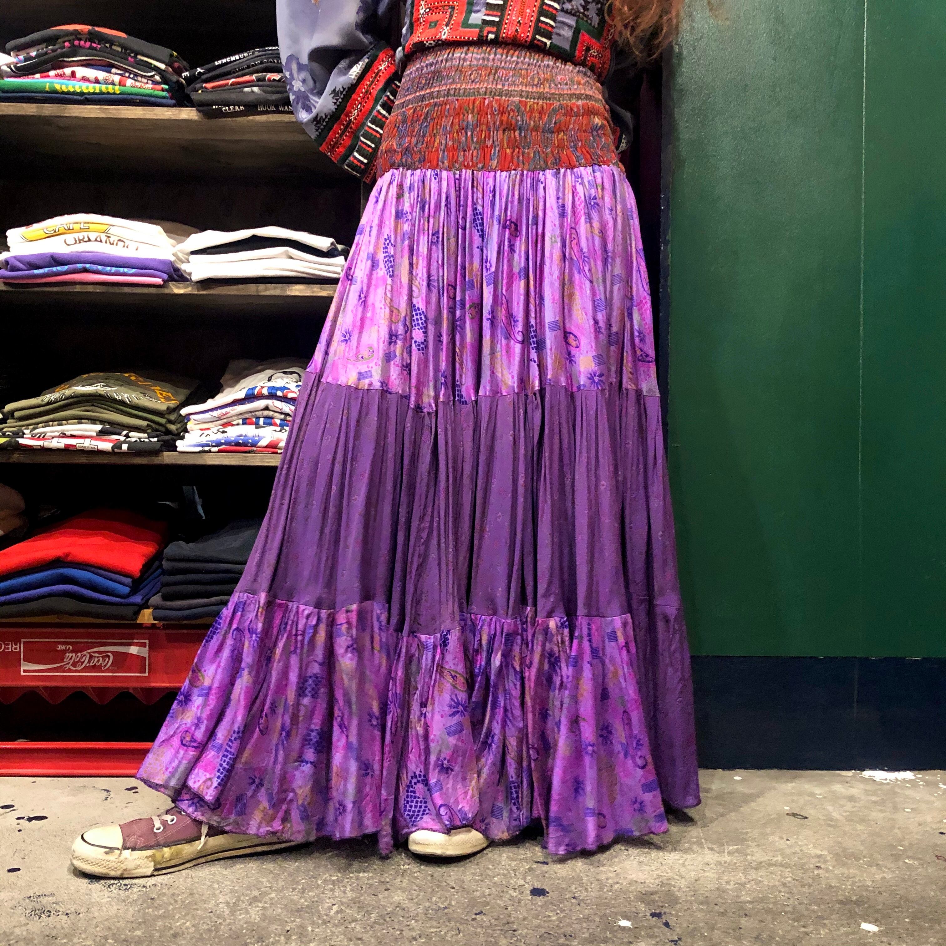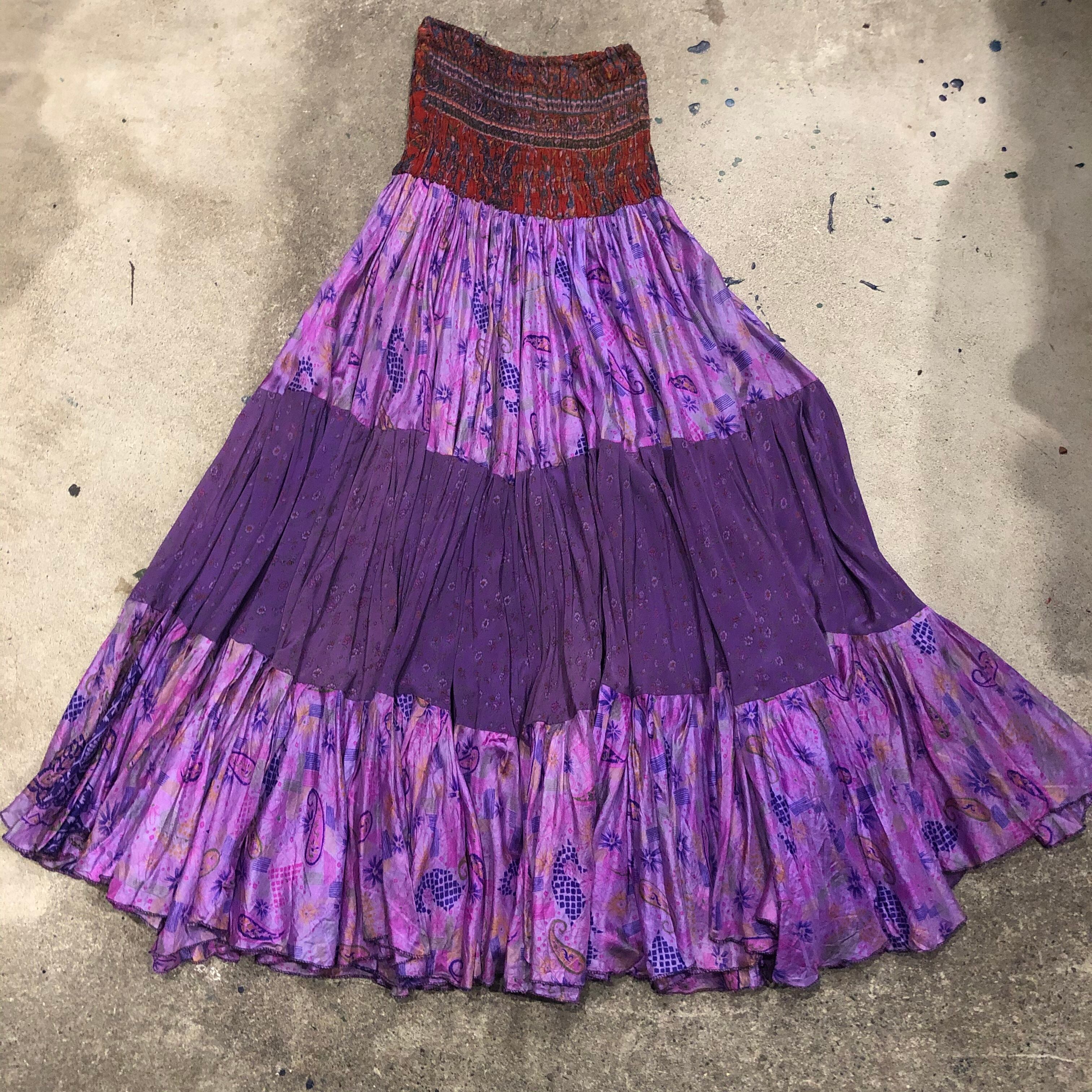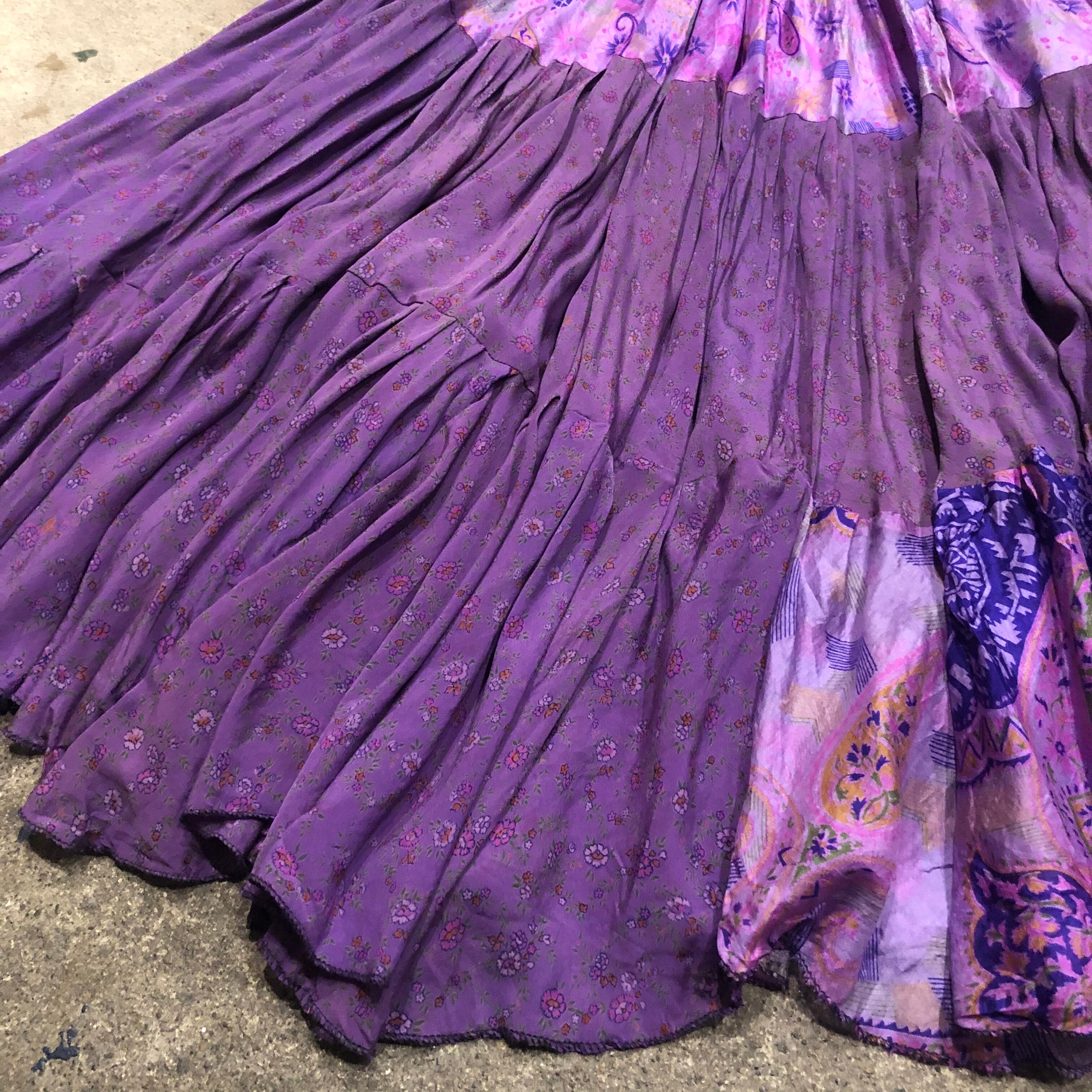 薄手でさらさらの気持ち良いシルクをたっぷり使用してあるスカートです。かなりボリュームがあり、歩くとしゃらしゃら揺れる感じが素敵です。