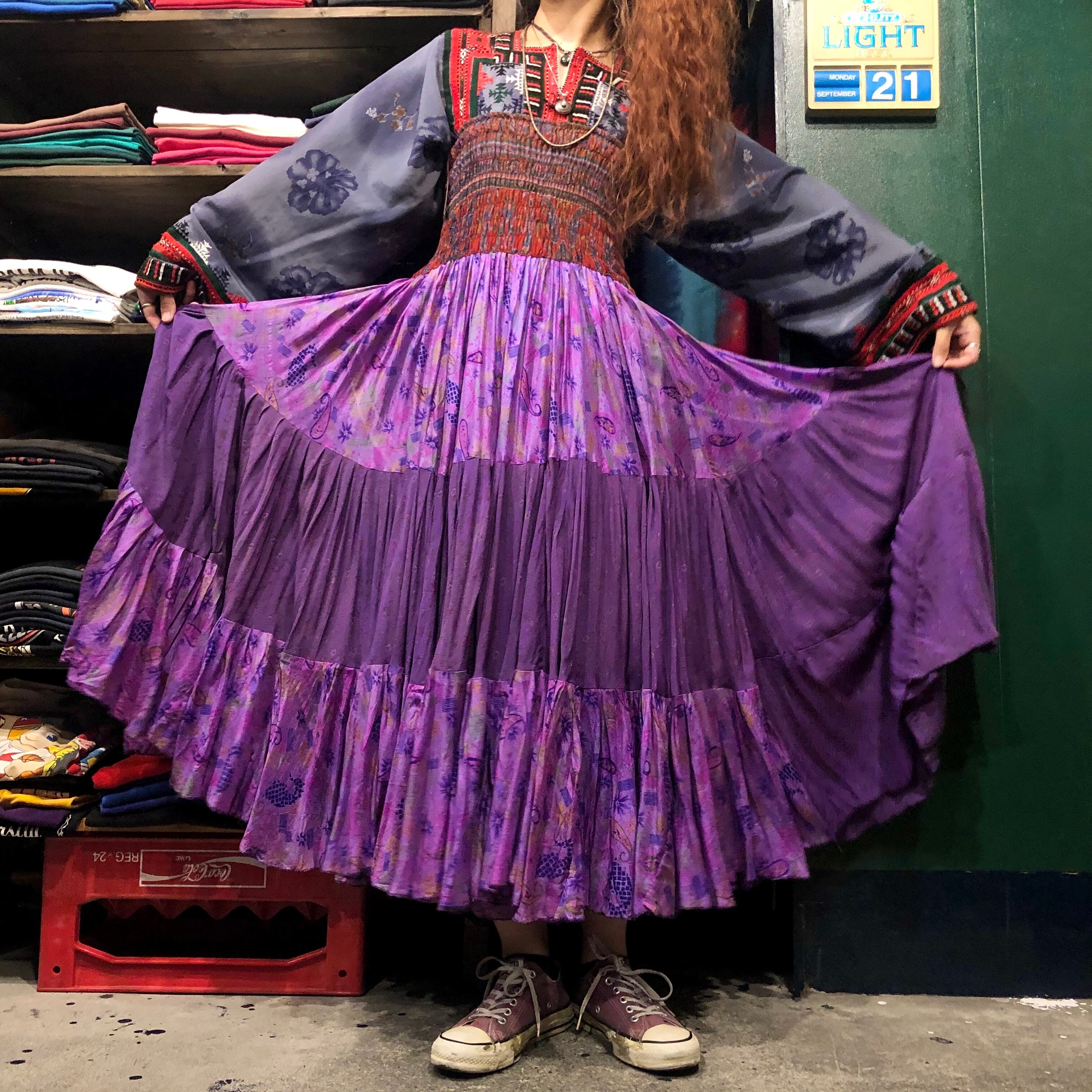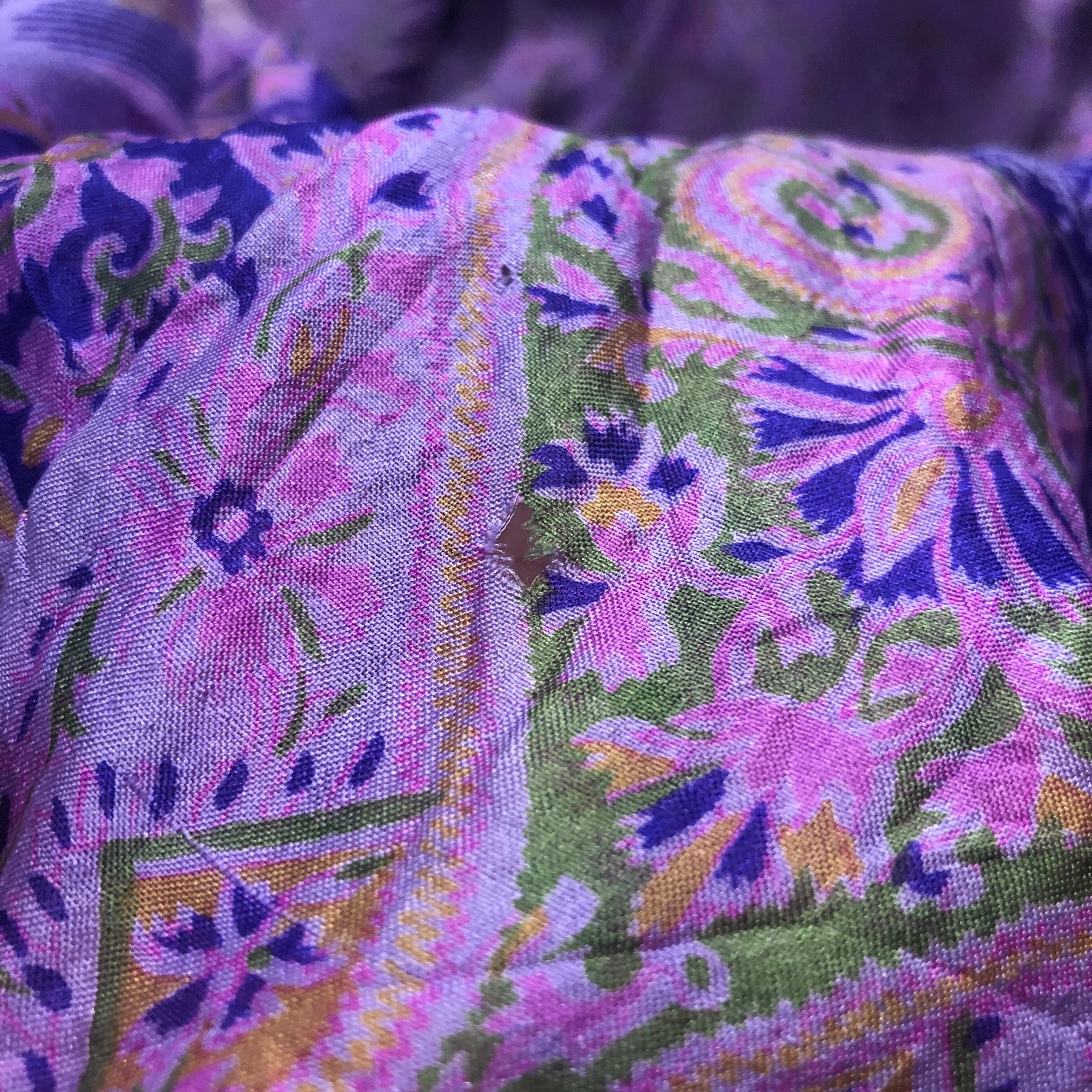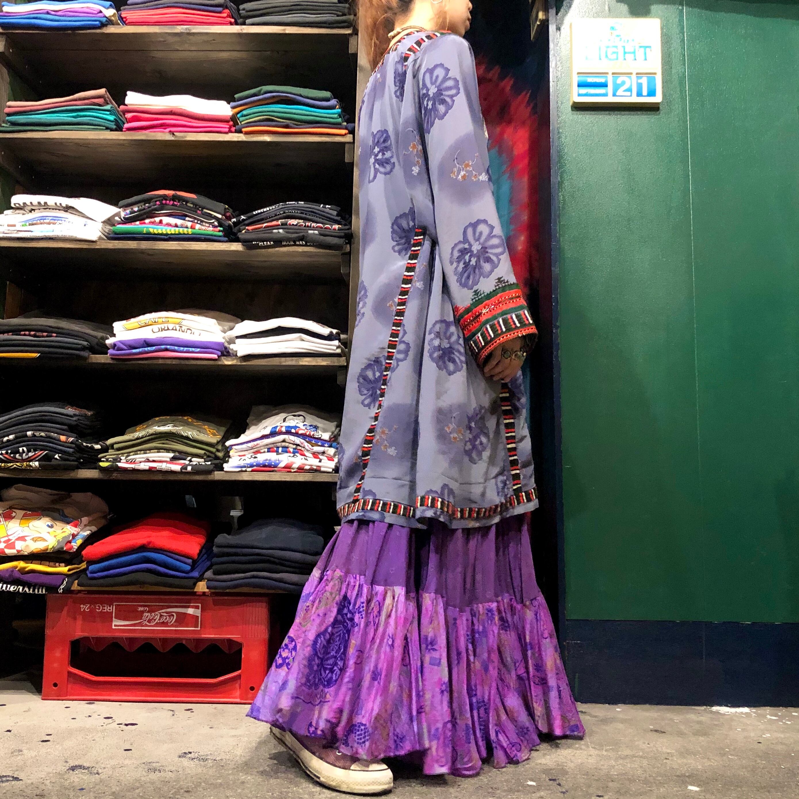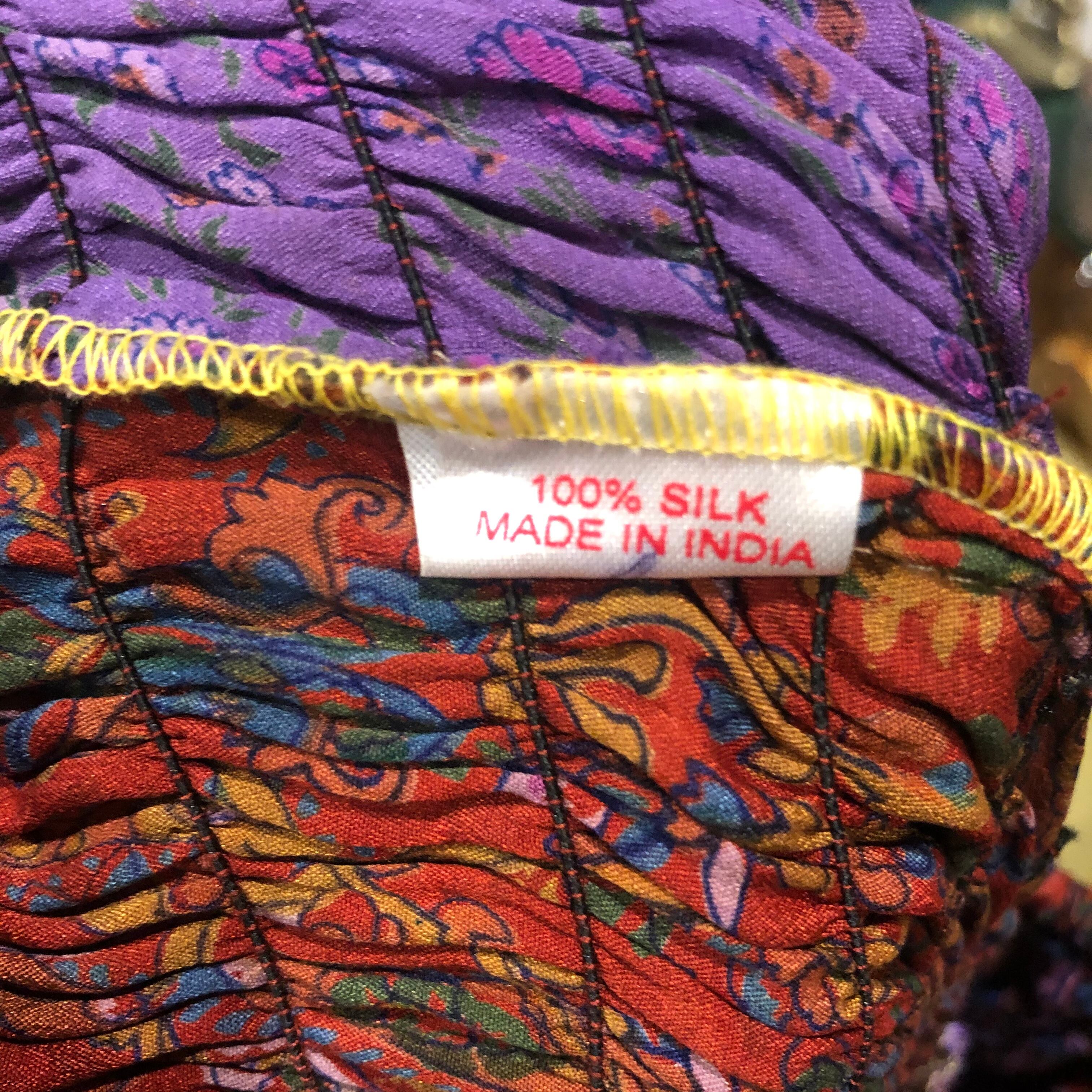 薄手でさらさらの気持ち良いシルクをたっぷり使用してあるスカートです。かなりボリュームがあり、歩くとしゃらしゃら揺れる感じが素敵です。