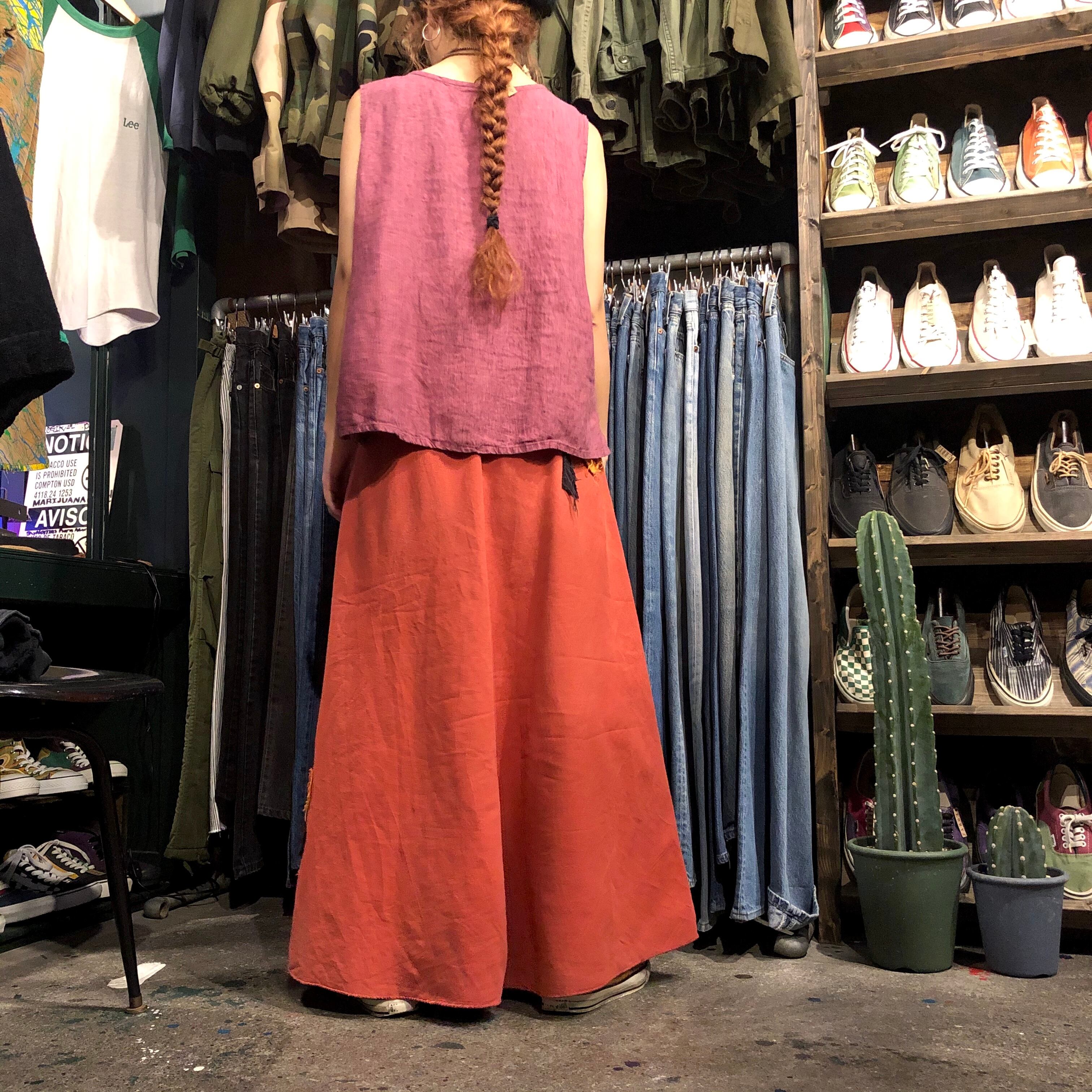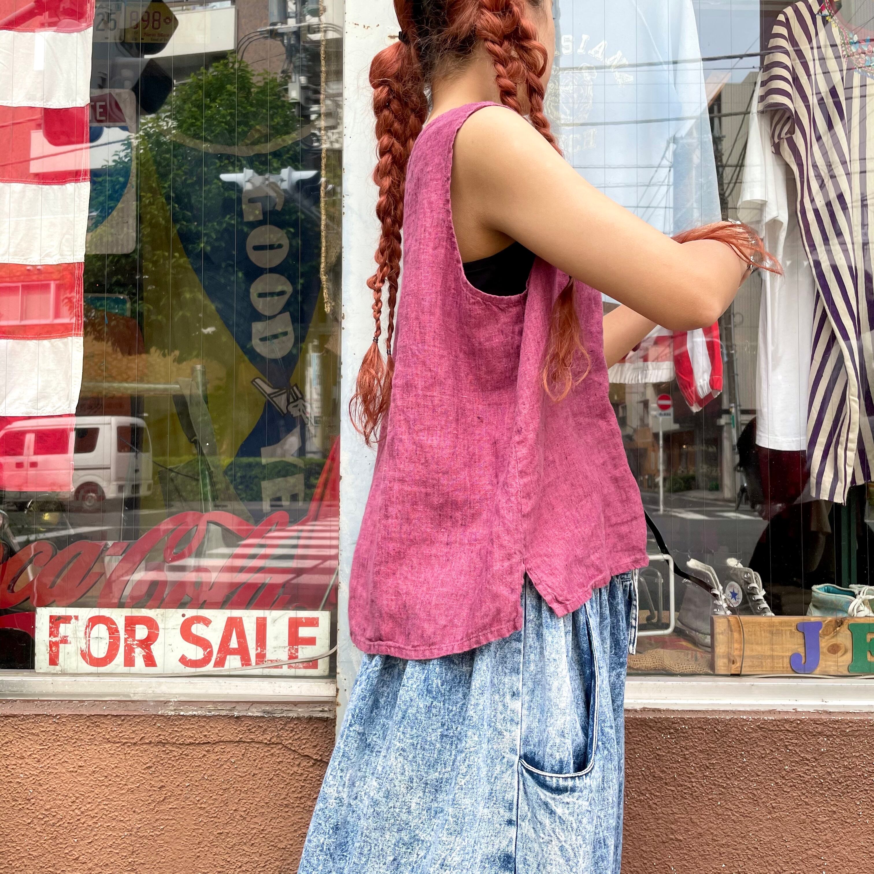 絶妙な色が素敵なリネン素材のタンクトップです。ゆったり大人なシルエットが良い感じです。