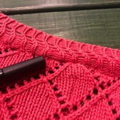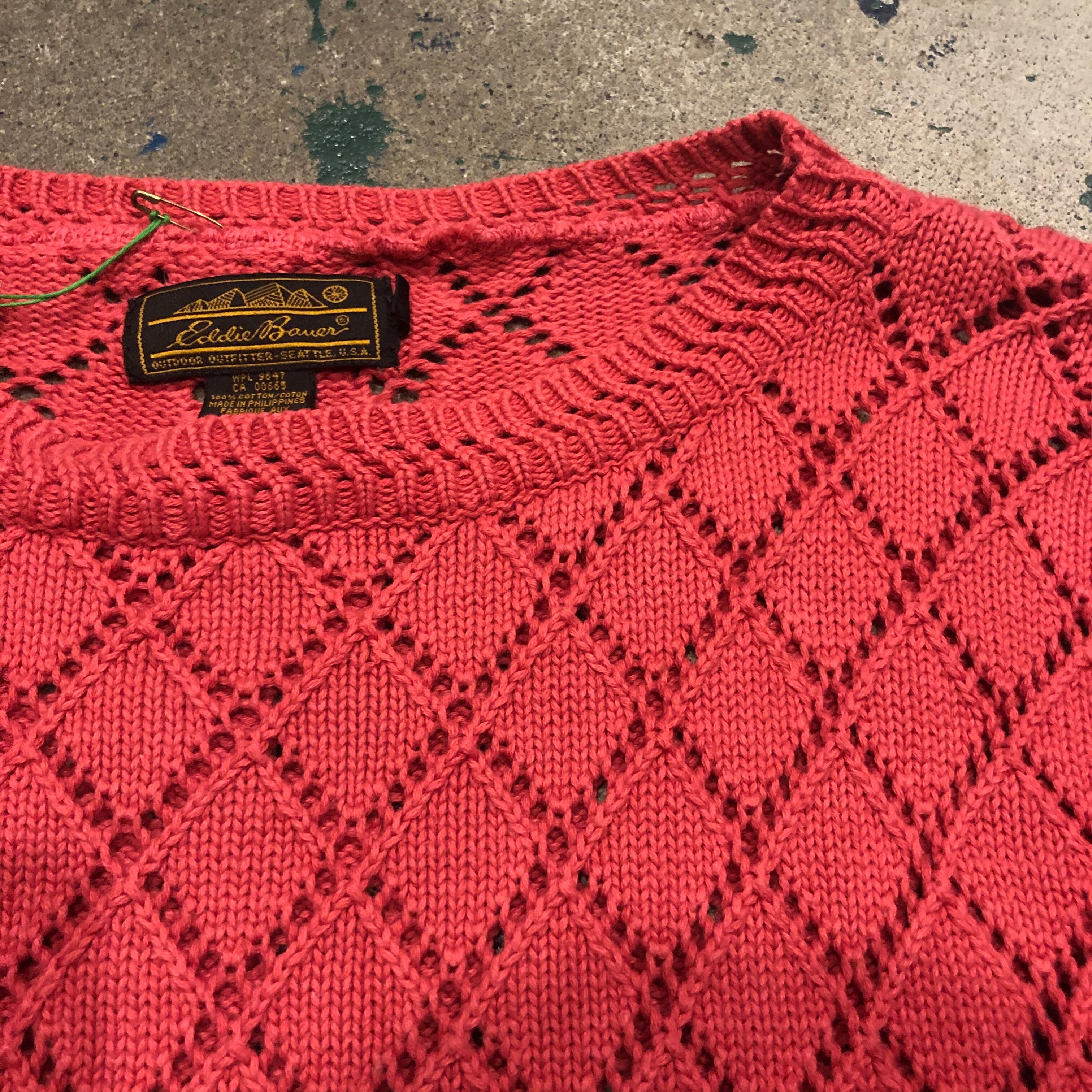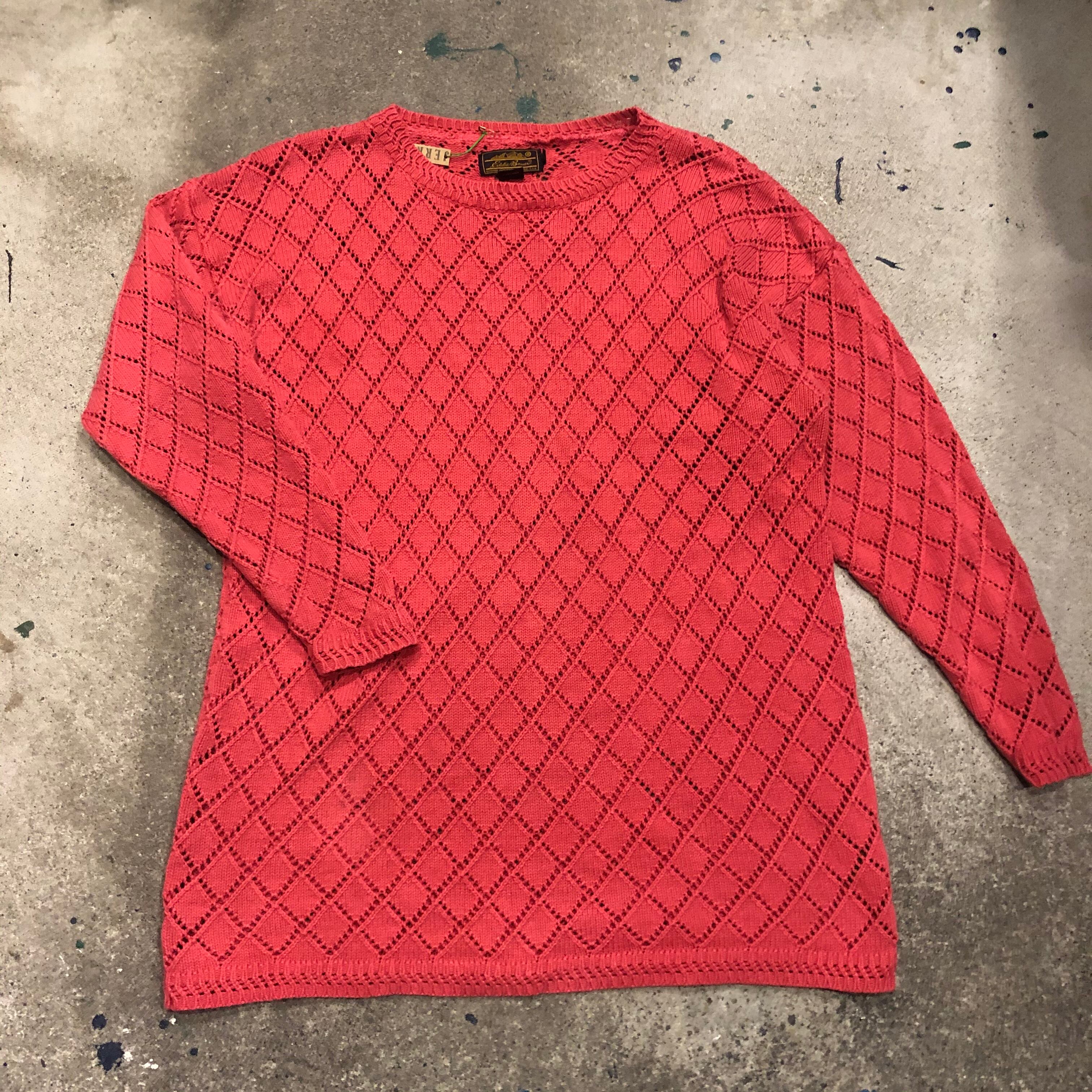 菱形の編み地がかわいいコットンニットです。